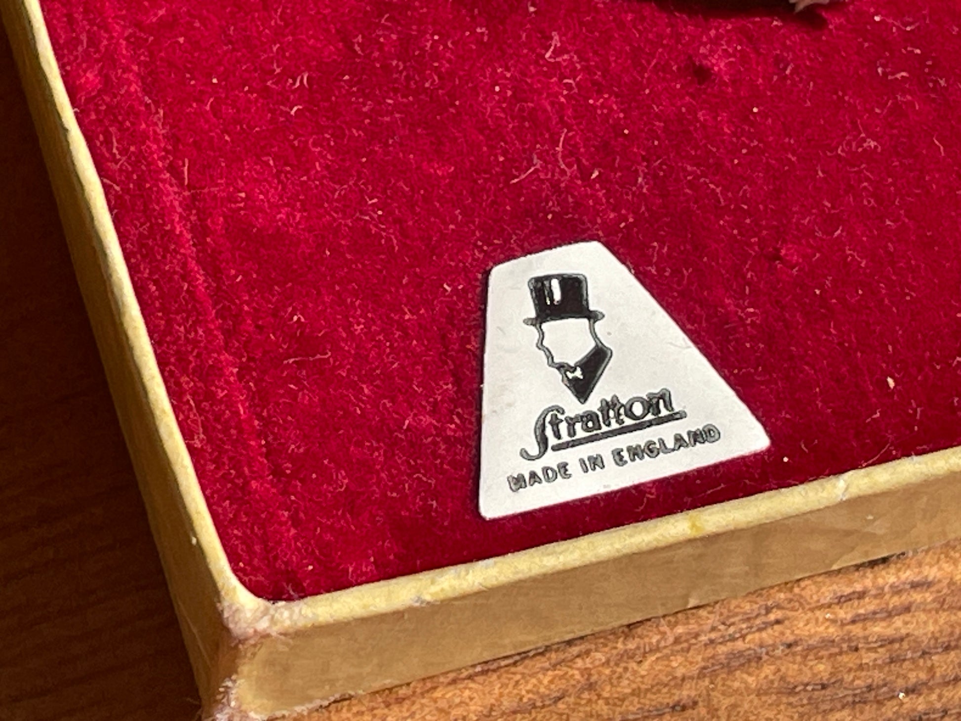 • Front marked "STRAT", reverse marked "Stratton IMITATION MADE IN ENGLAND"