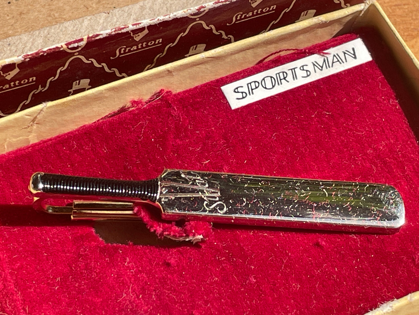 1950s Stratton Cricket Bat Tie Clip – Vintage Sportsman Gift in Box