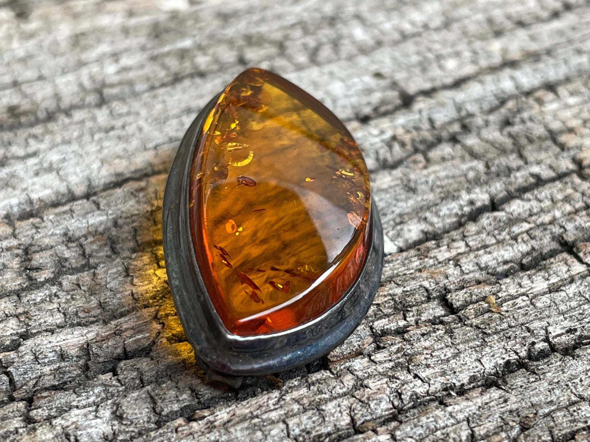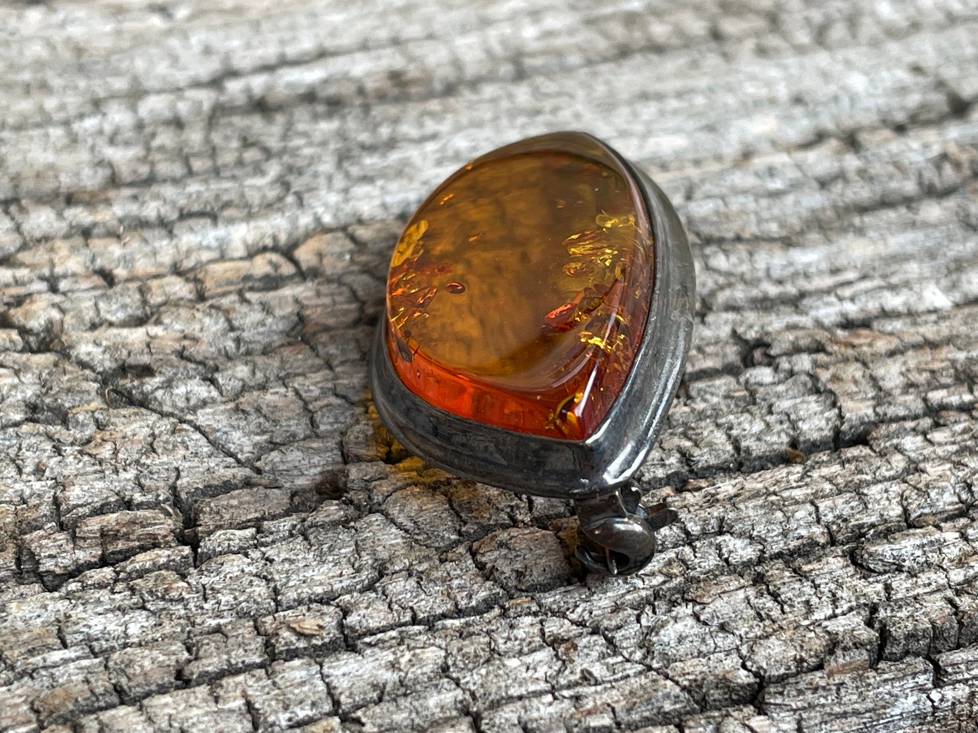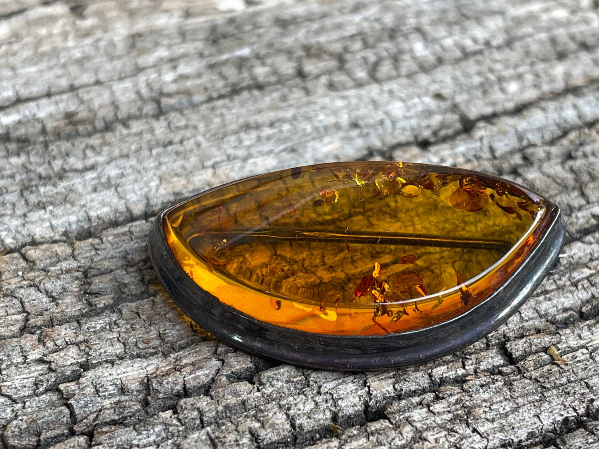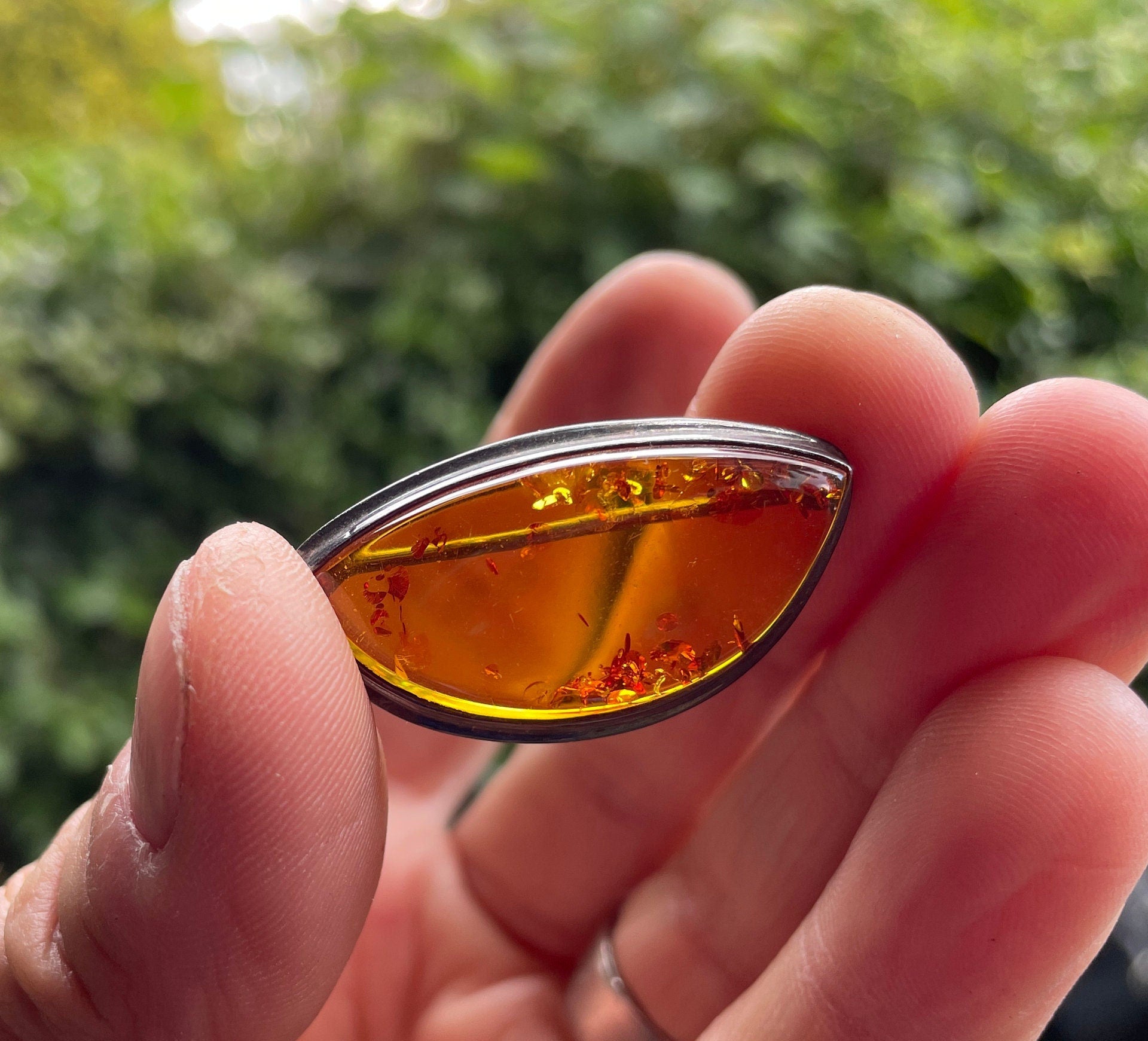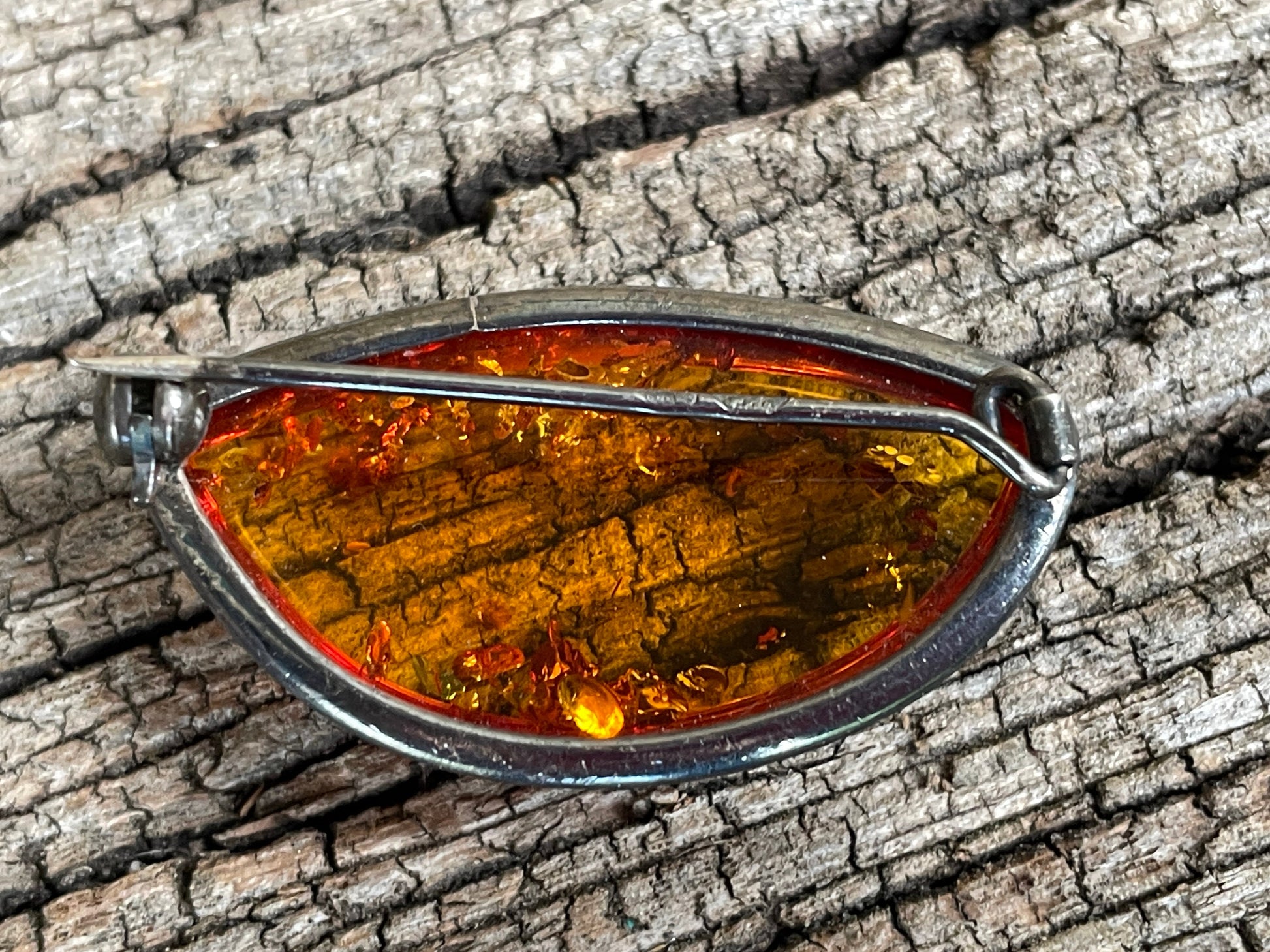 Great condition - stamped .925 on the pin - really not sure whether amber or not - doesn't react too well to the hot pin test but that doesn't mean it isn't