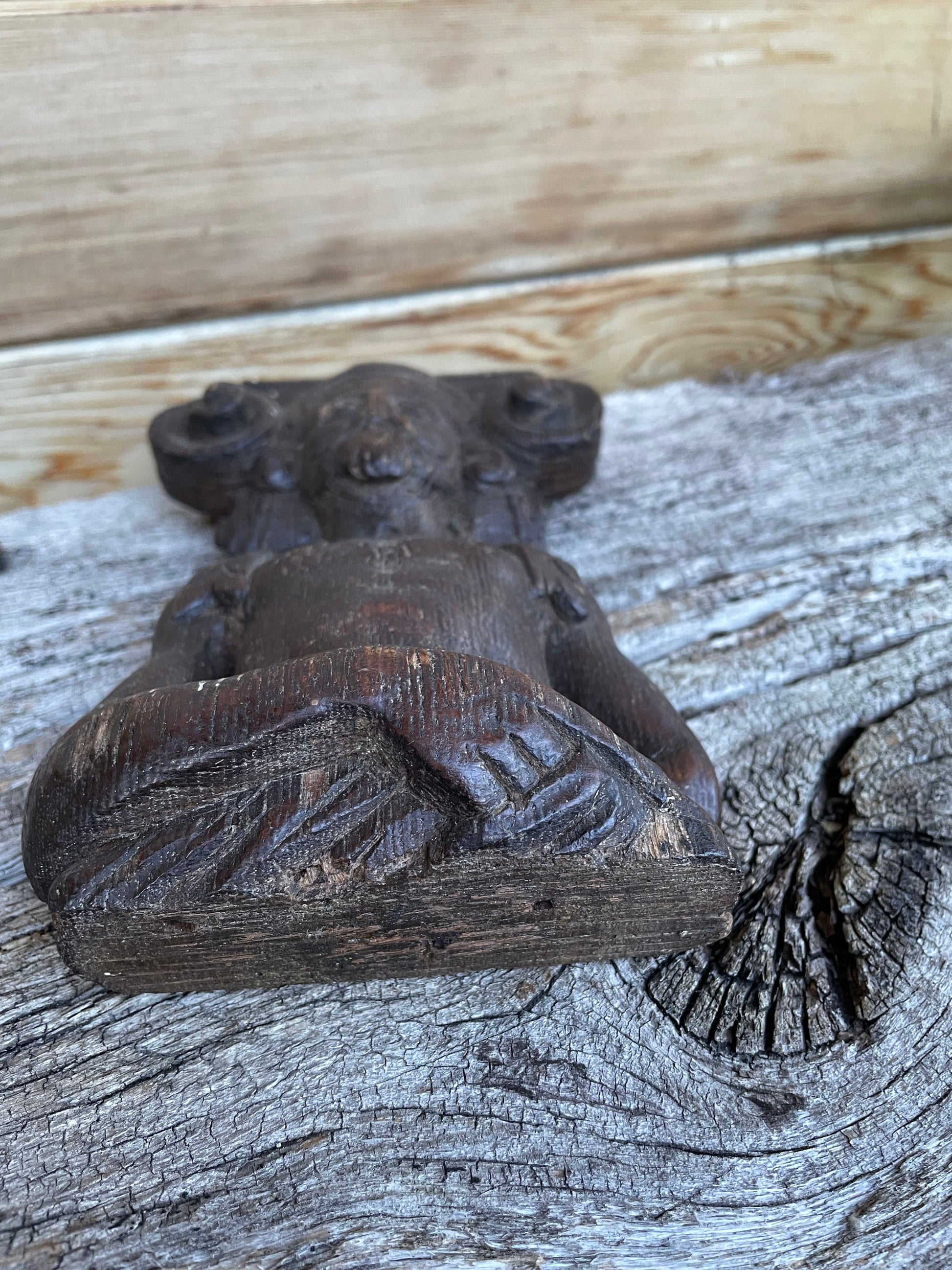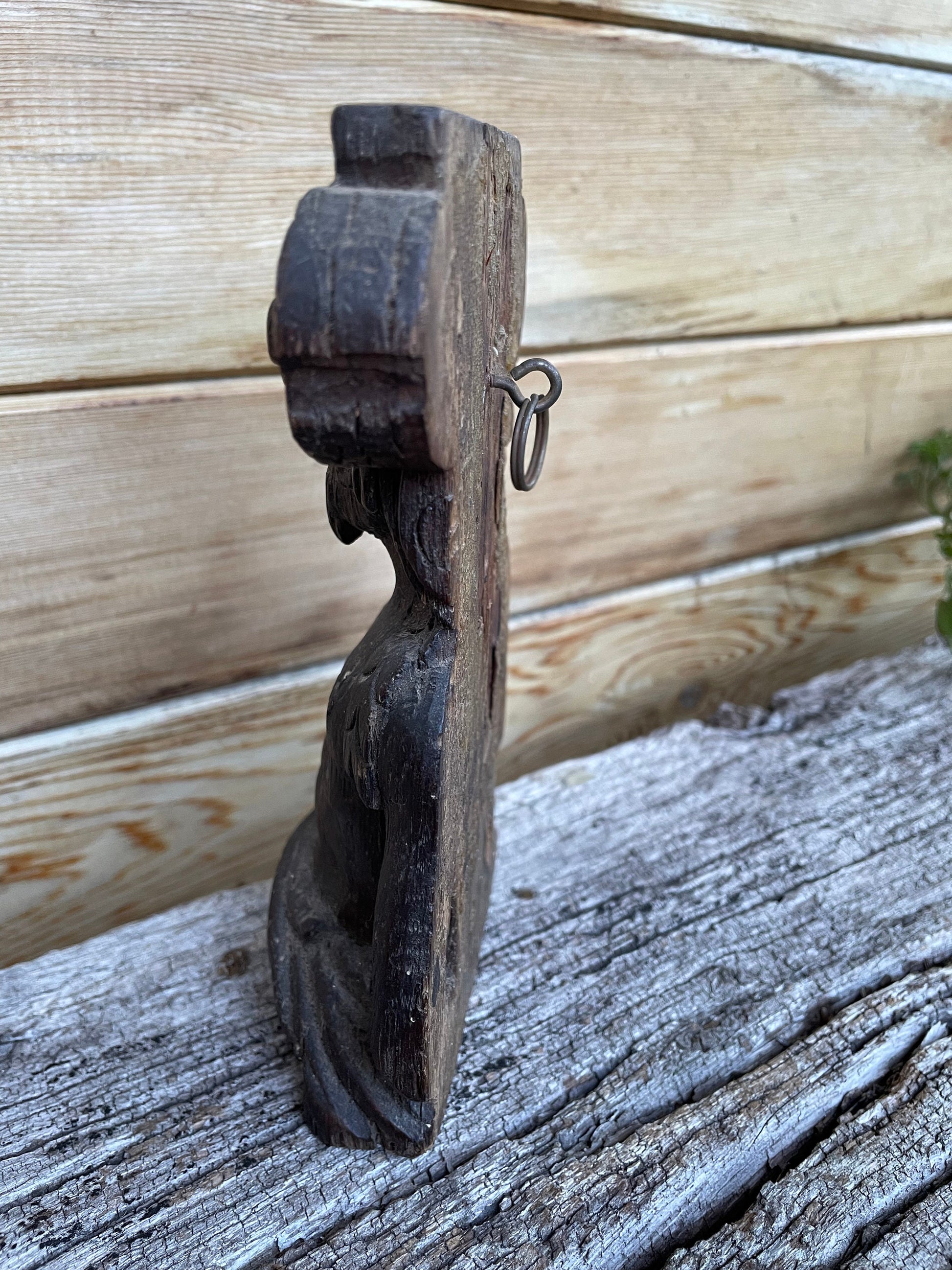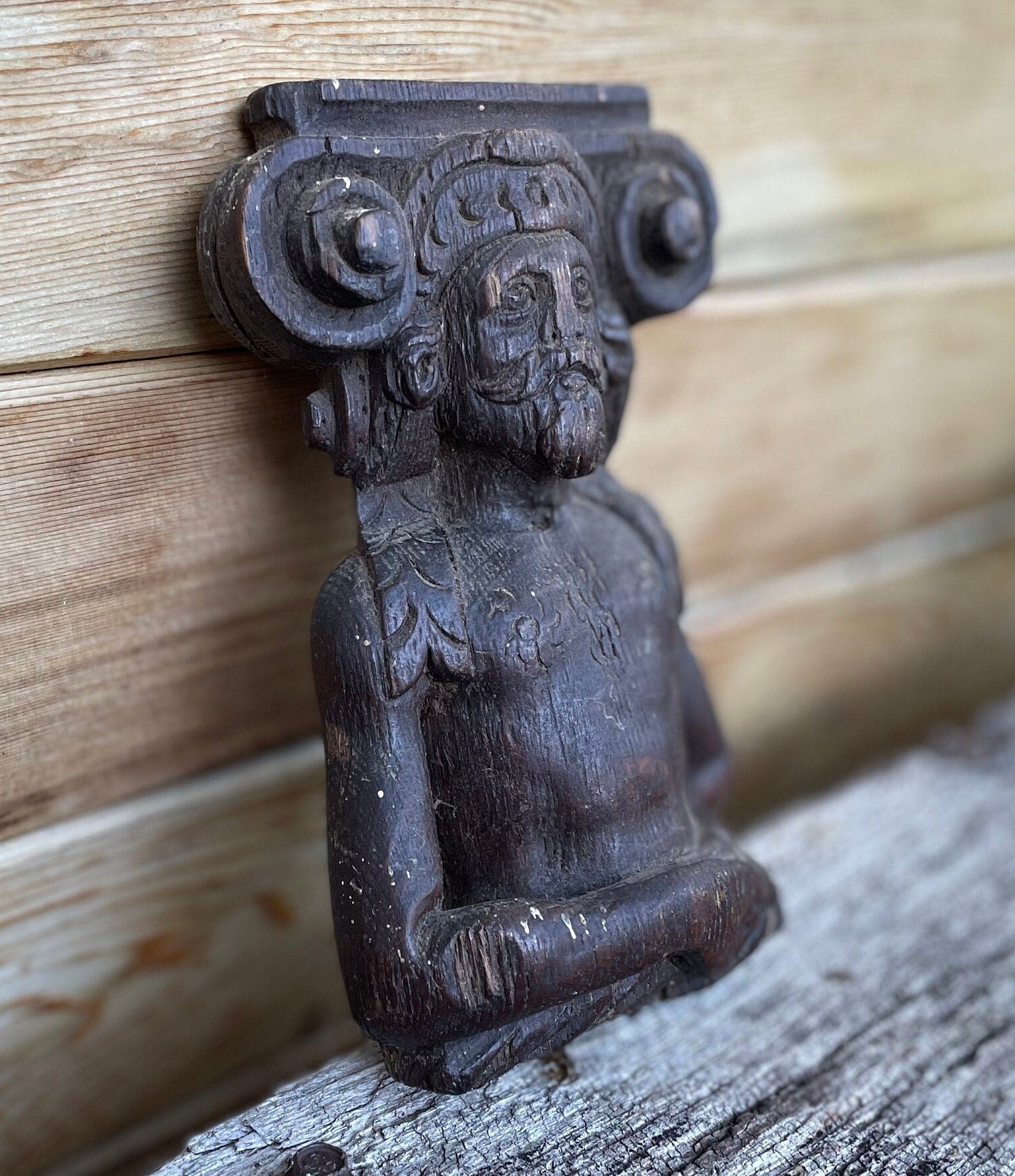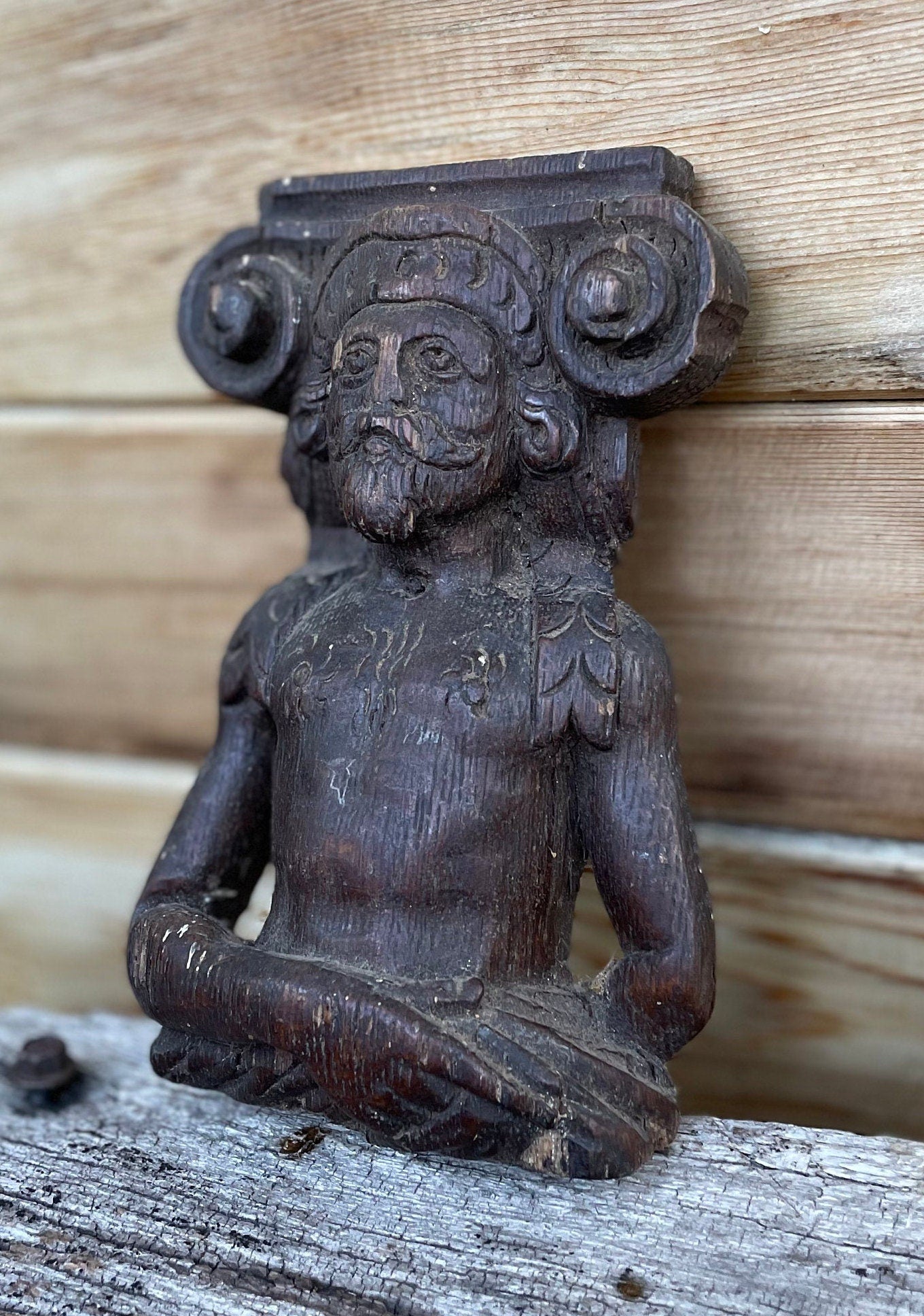 This piece is unique, a survivor and pretty special - The carver of this piece knew his craft and was very good at it - The origin of this piece is unknown but likely from a very old piece of furniture, wall panelling or simply a stand a lone carved figural decorative piece - this adds to the mystery