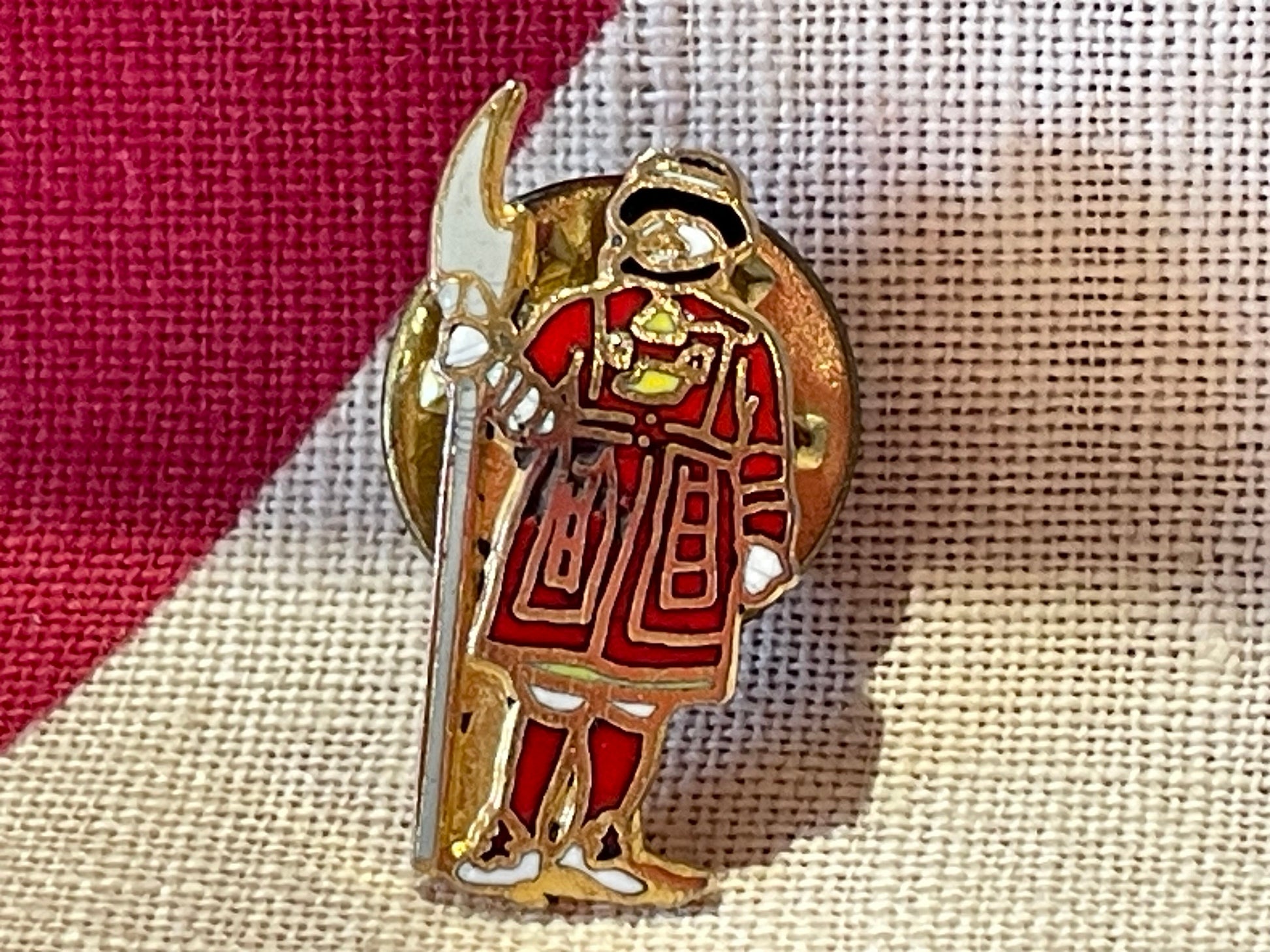 Here we have a Beefeater Tower of London Guard brass and enamel pin badge 2cm long