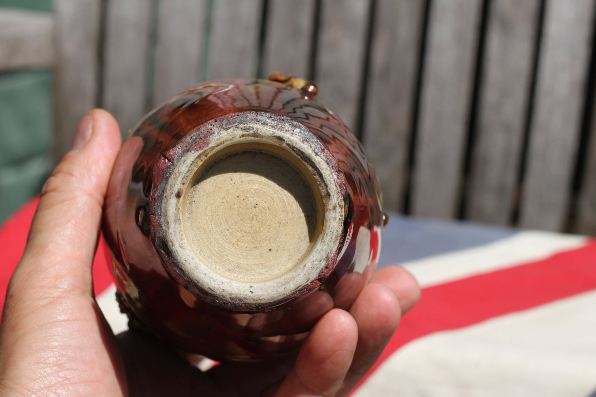A Chinese Flambe Vase Decorated With Small Creatures Climbing a Vine 22cm Tall