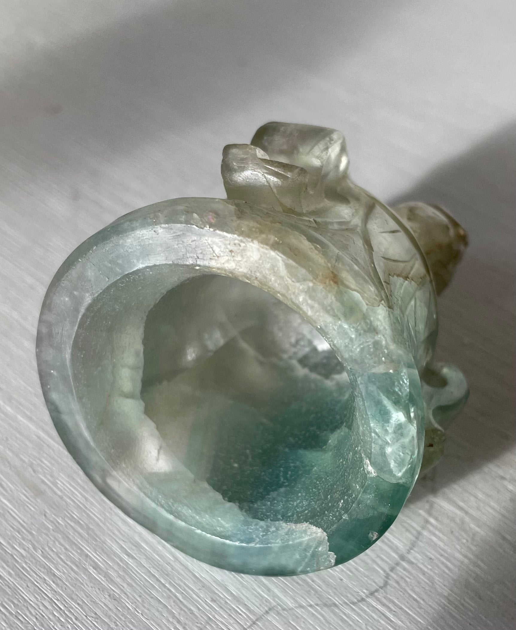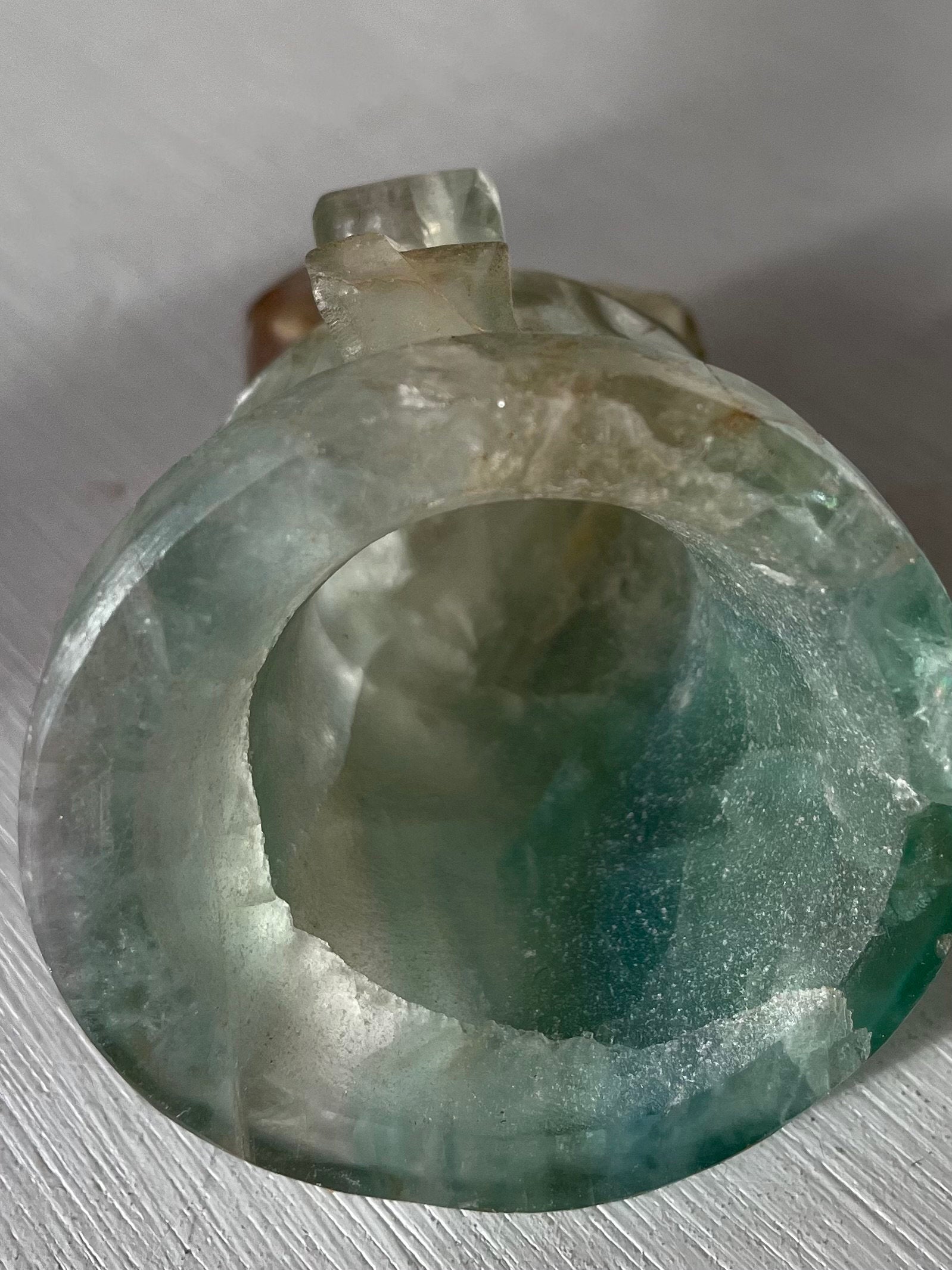 This piece is made from fluorite because it is believed that it can get rid of any electromagnetic fog that can attract or retain negative energies and make you feel psychically, emotionally, or mentally lethargic