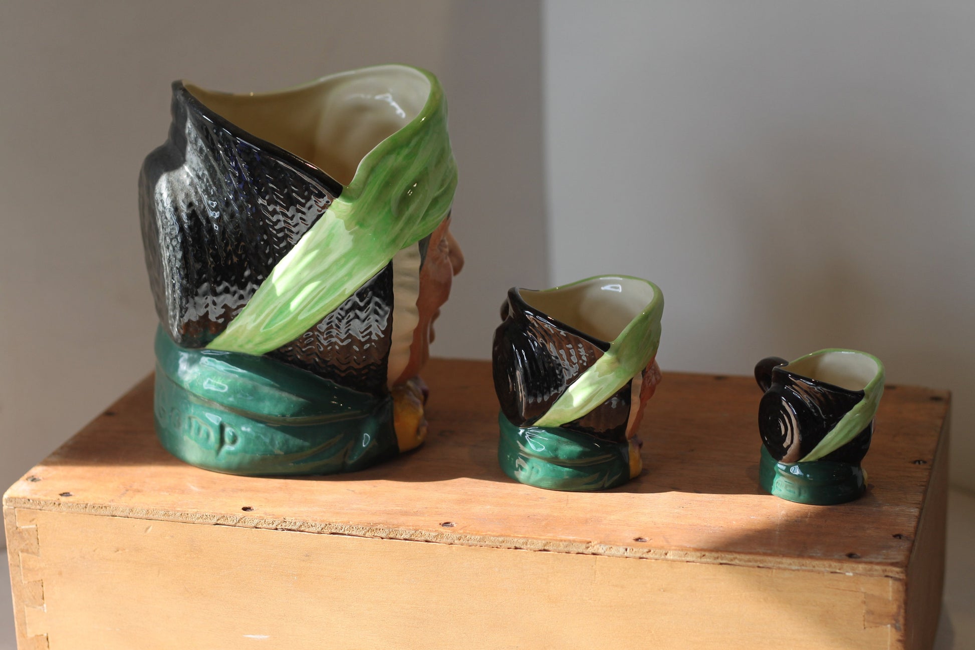 Here we have a complete graduated set of Royal Doulton Sairey Gamp Toby Jugs in very good condition
