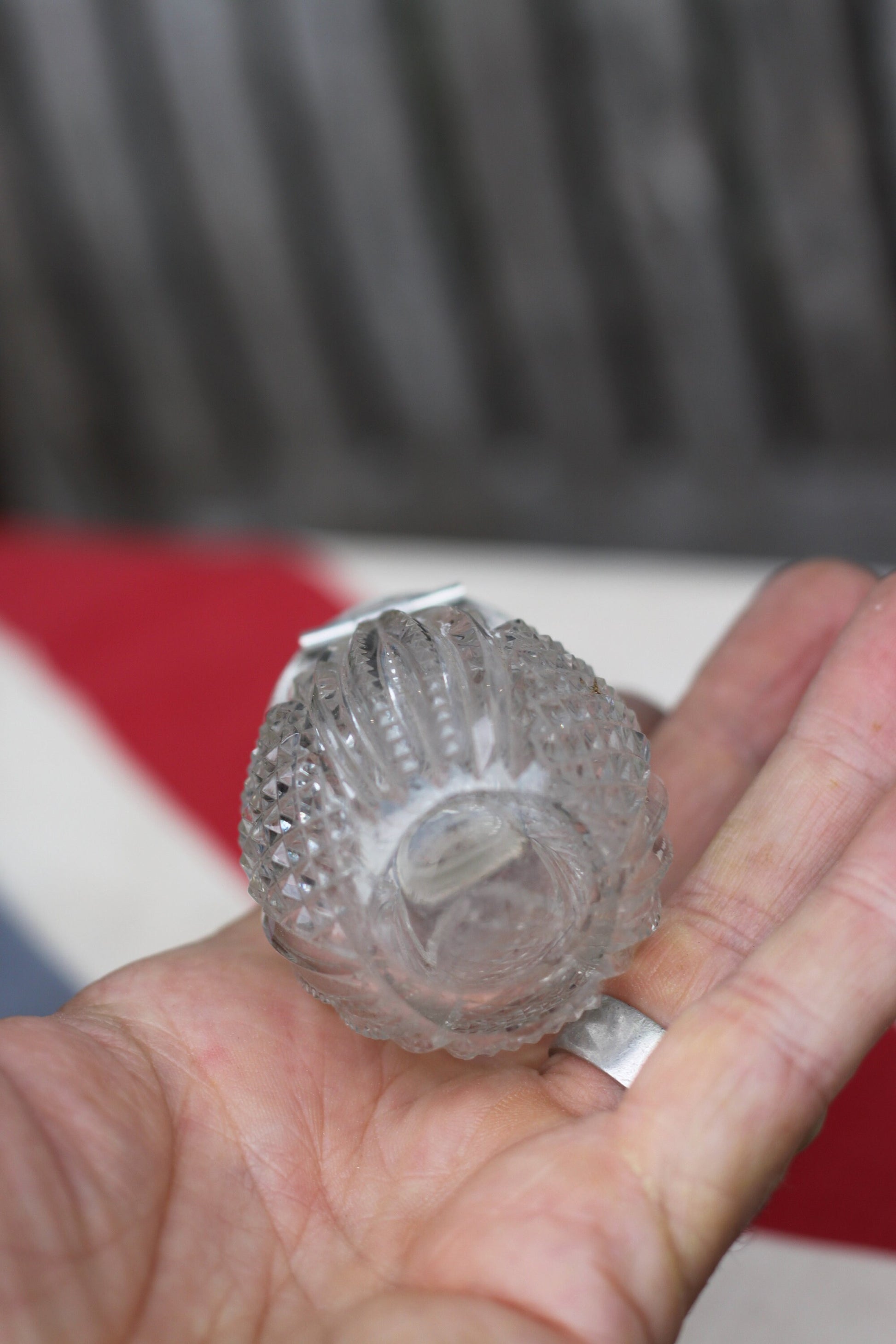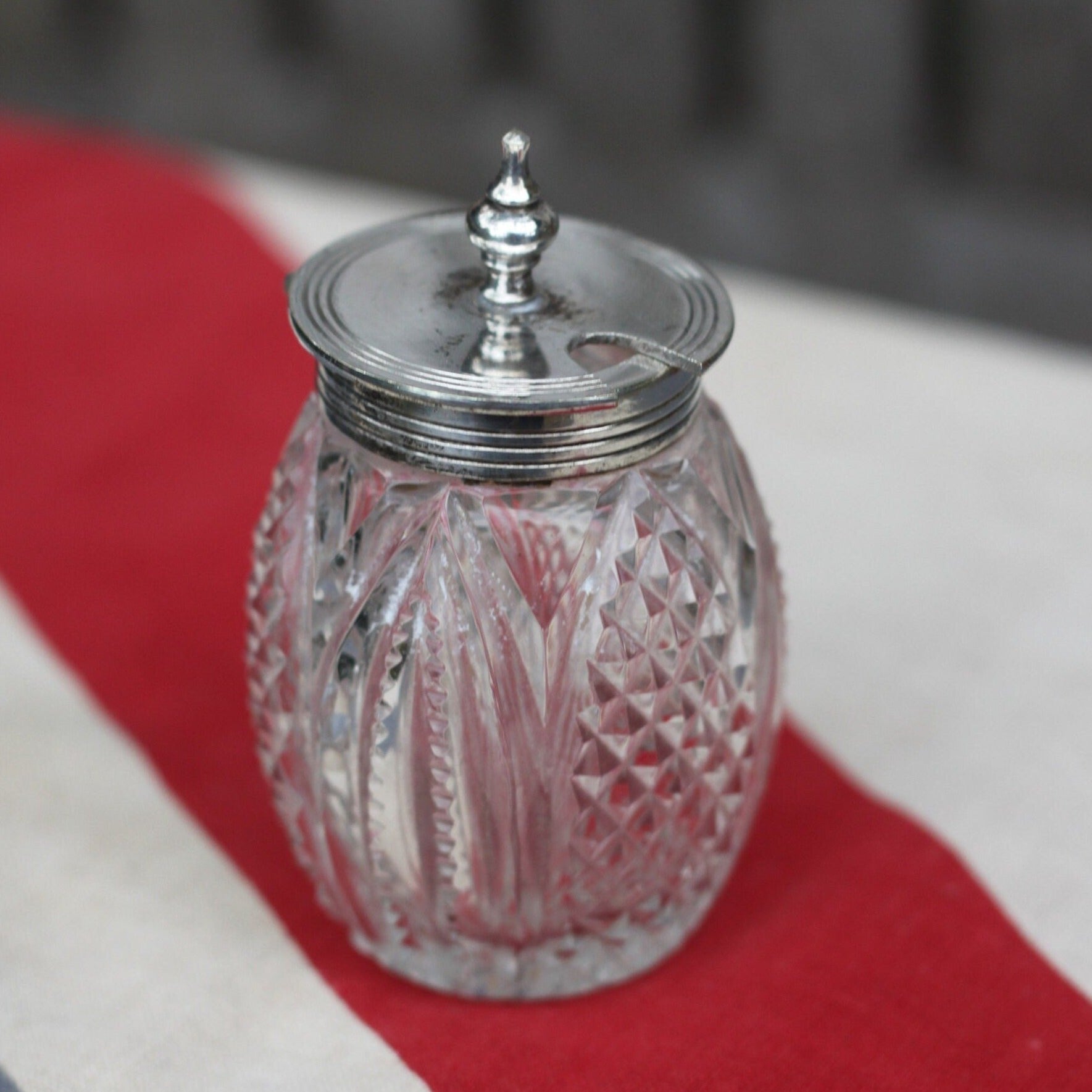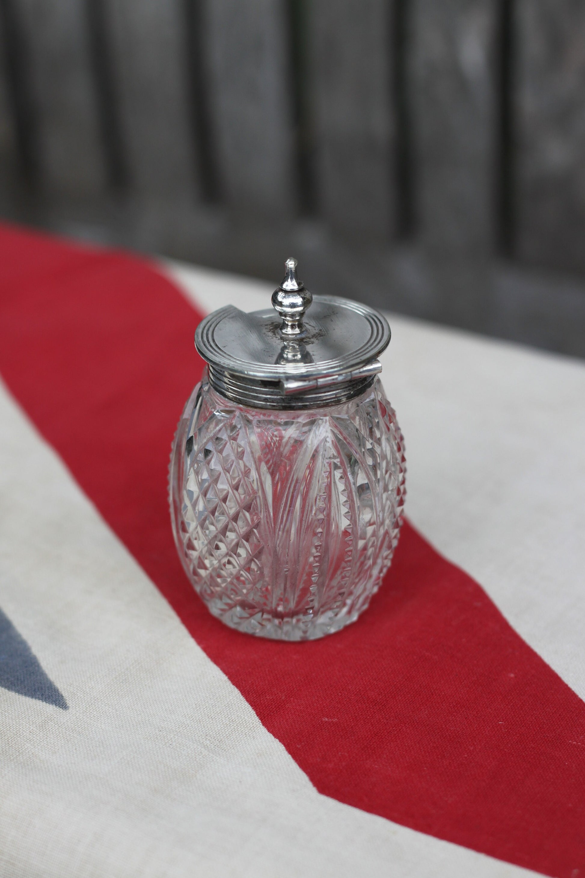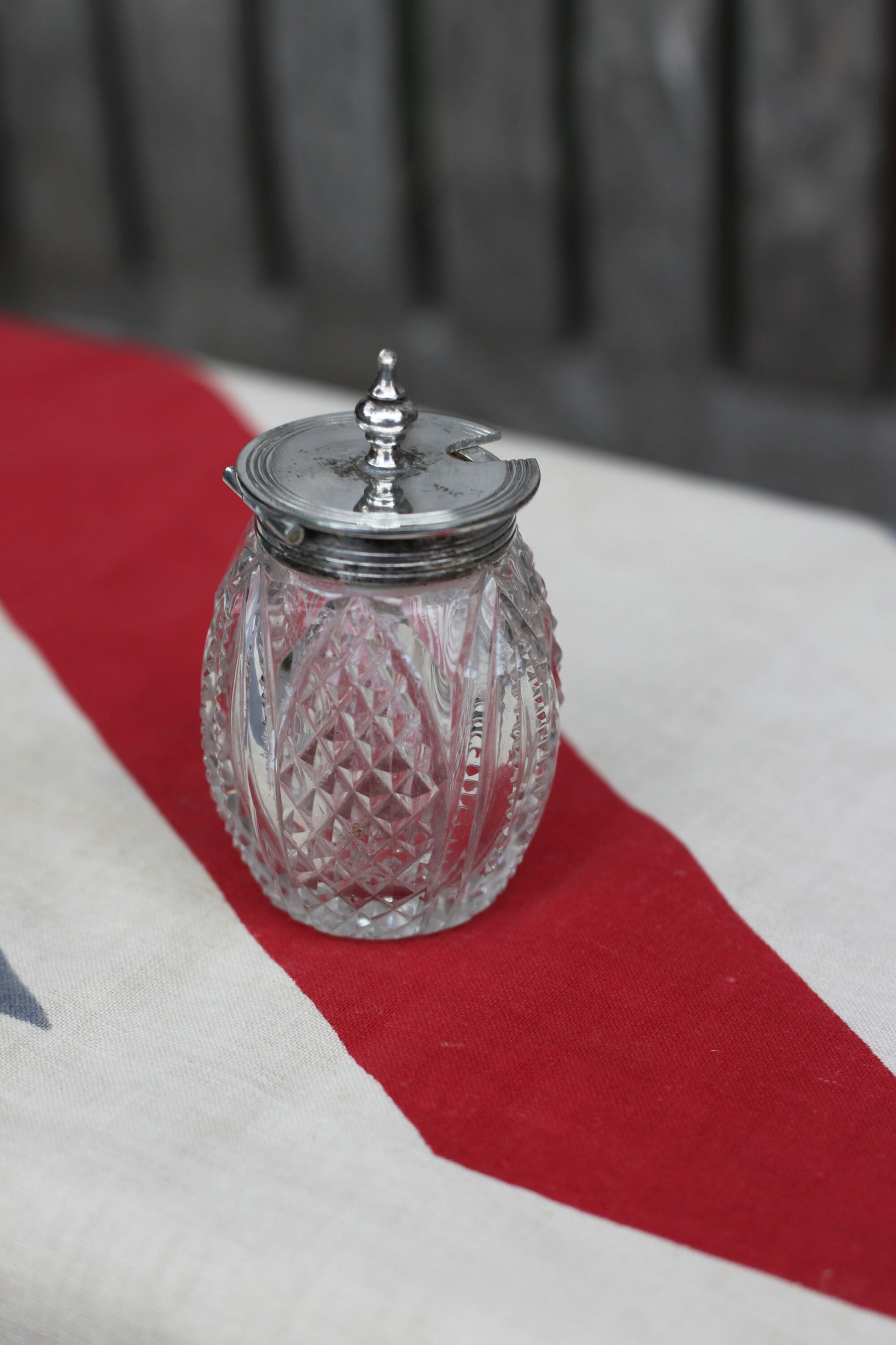 Here we have a cut glass silver plated preserve cruet 7cm tall