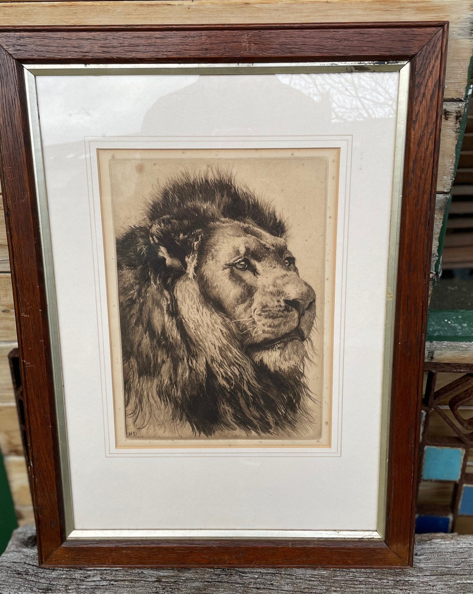 Here we have a framed and signed Herbert Dicksee etching called Head Of Lion 29x21cm c1891