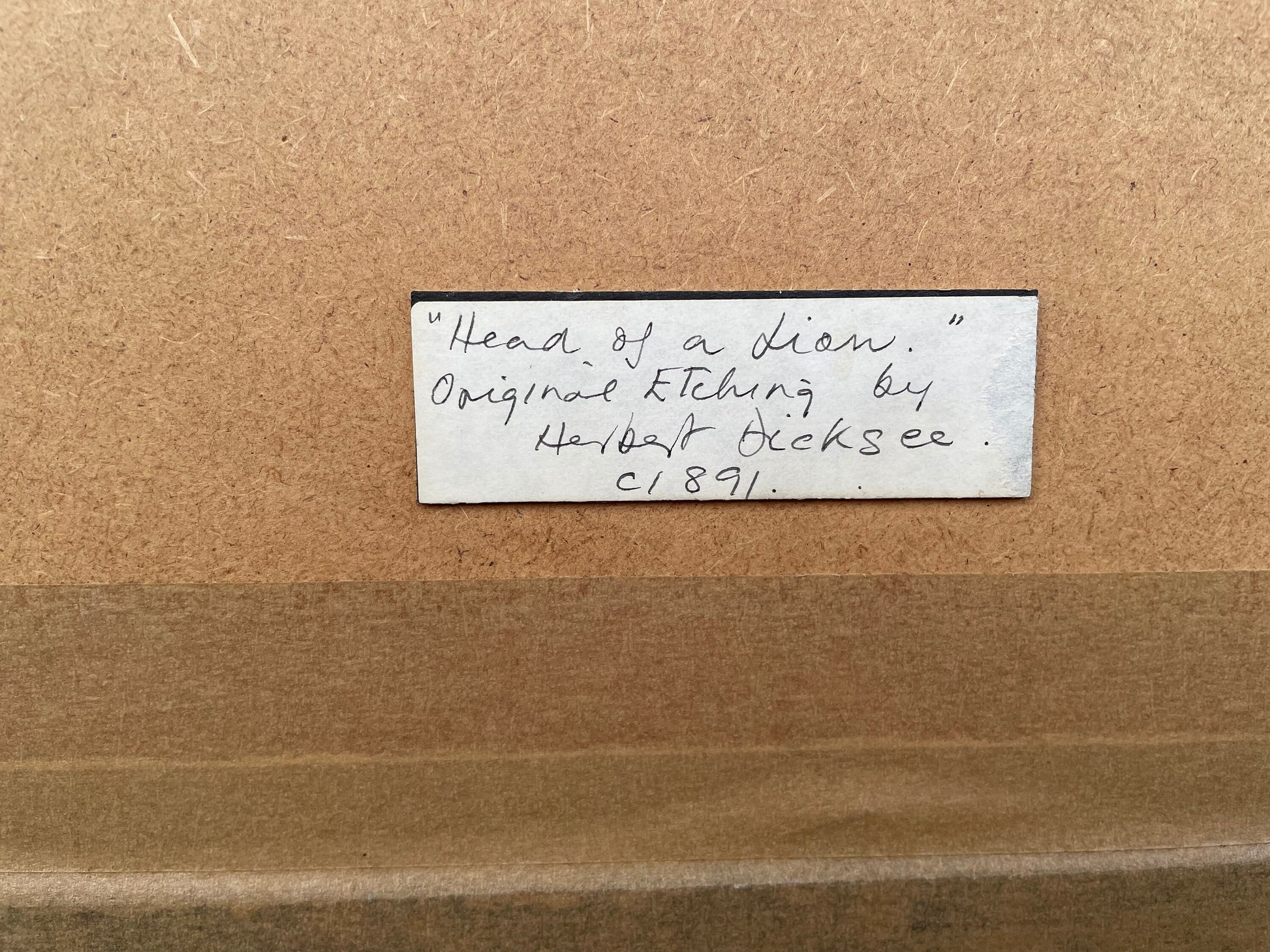 Described as follows -Head of Lion - original HERBERT DICKSEE etching , signed artist proof c.1890, as exhibited Royal Academy 1891 -framed size 52x39cm