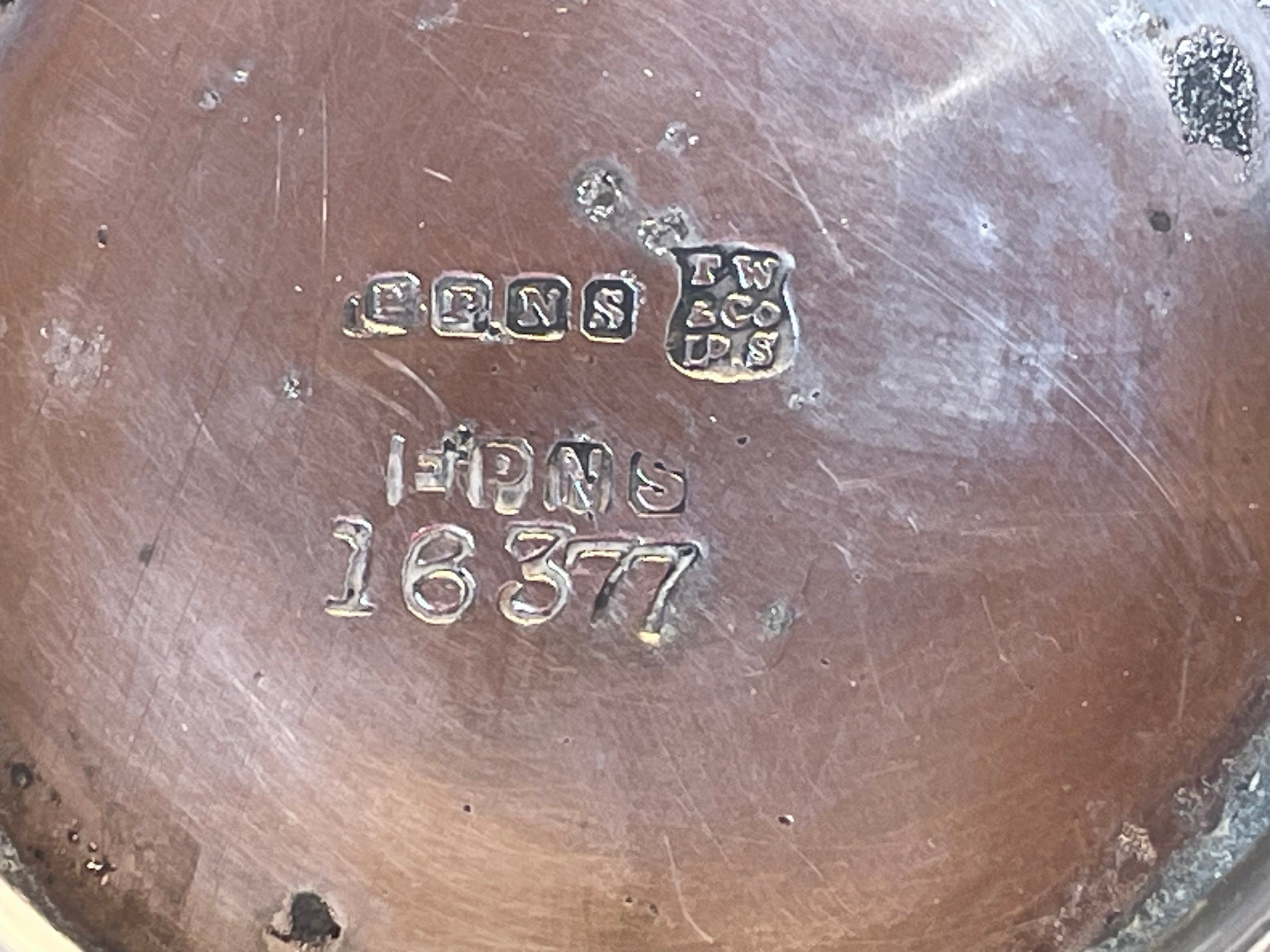 It's not often you see such a large blue liner either, this would be costly to replace. To the base there is the EPNS symbol as expected product number possibly of 16377 and it tell us that TW and Co Ltd S were the manufacturers which we think is likely to be T Willis and Co Birmingham