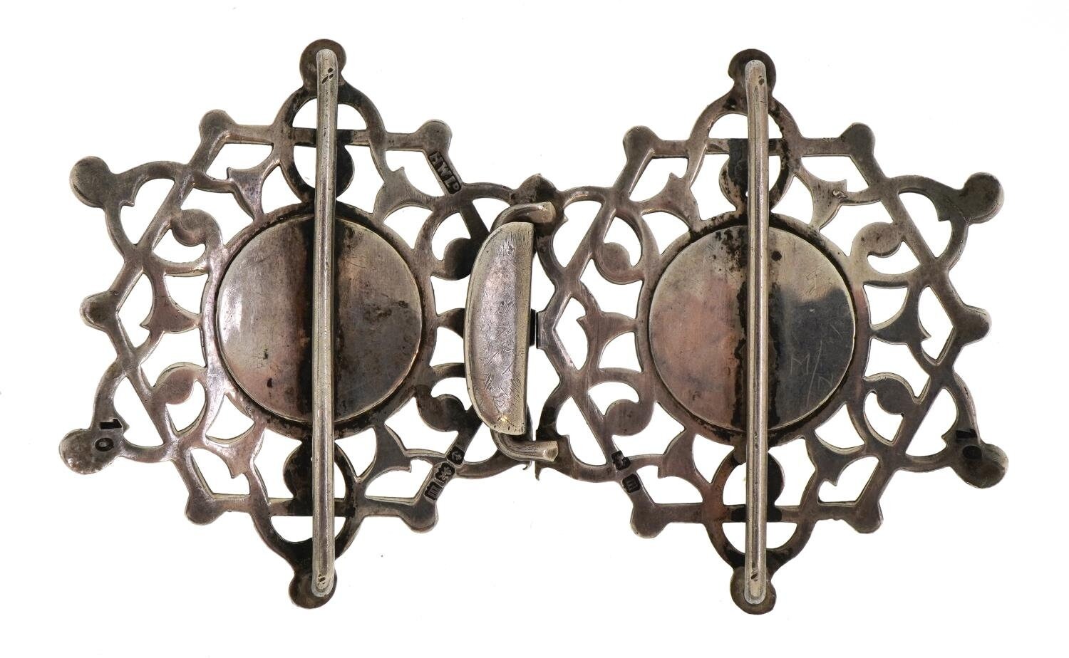 Lovely crisp Hall marks. The buckles themselves are slightly curved in profile to of allowed for a closer fit in use.