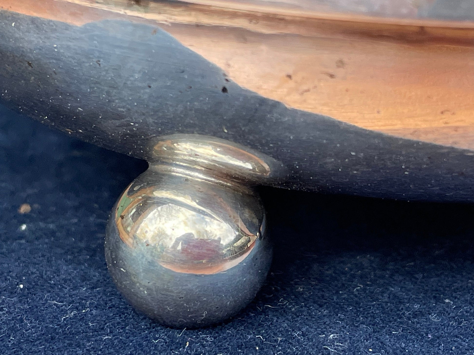 There is some pitting to the silver inside the bowl and across the surfaces and we are not 100% on our mark reading - it certainly looks like the London mark and a TW and possibly a let A on the end that now looks like a triangle -