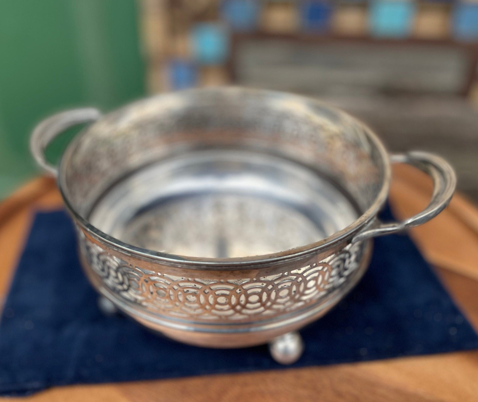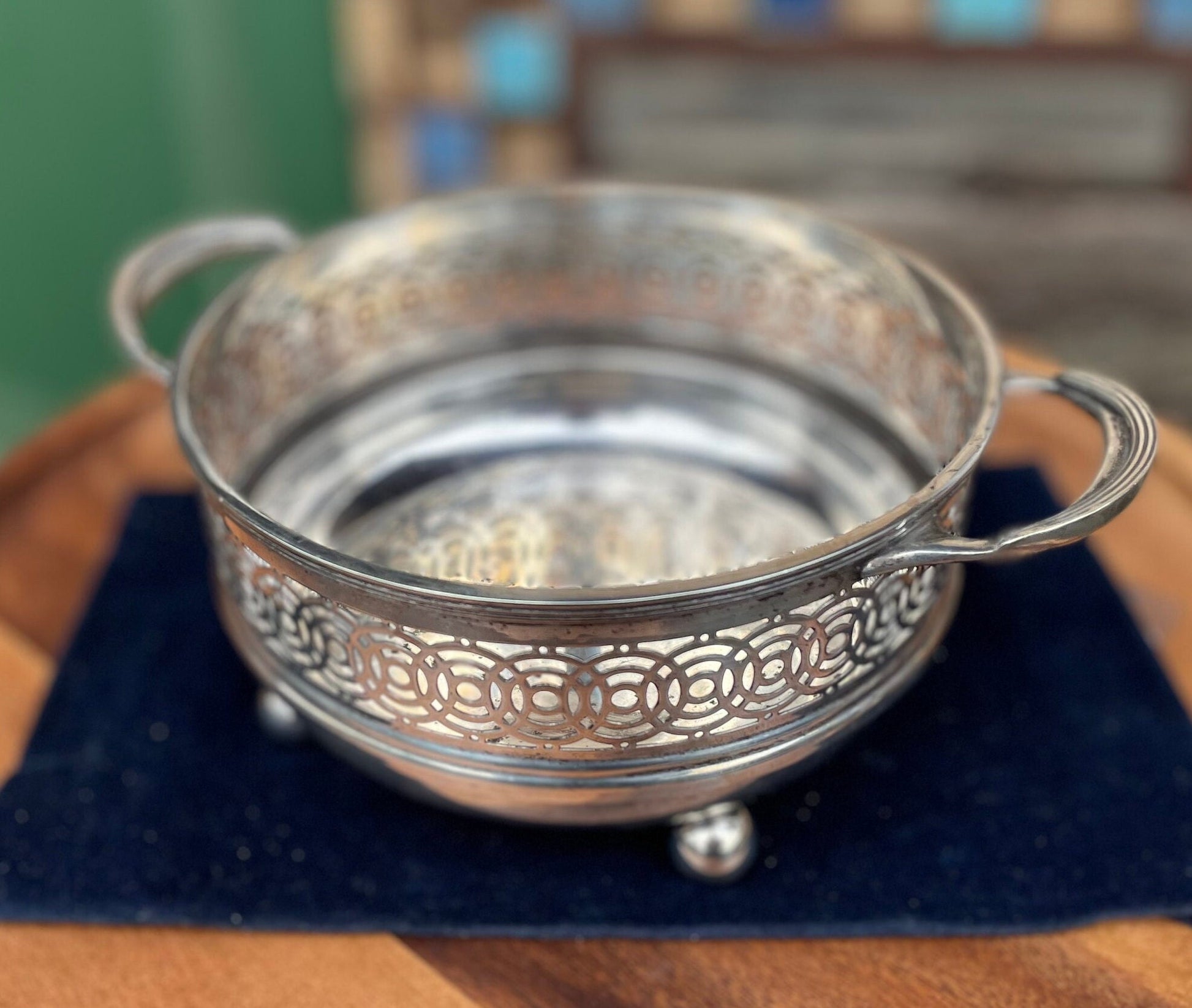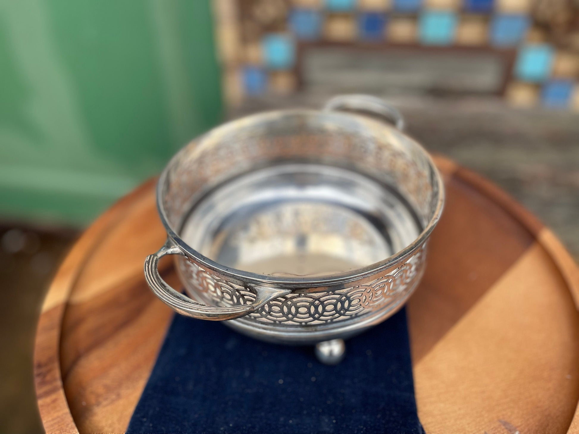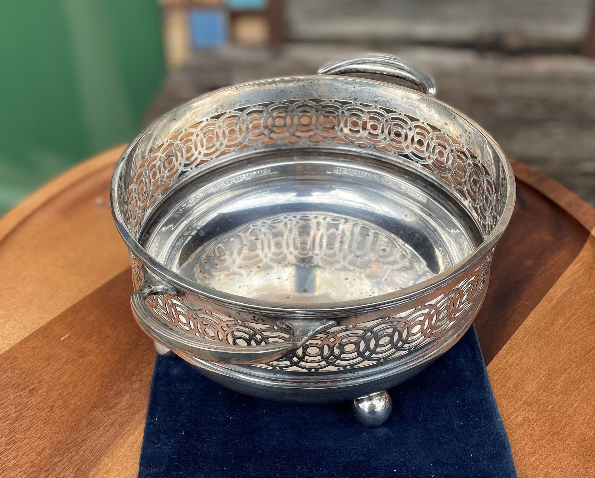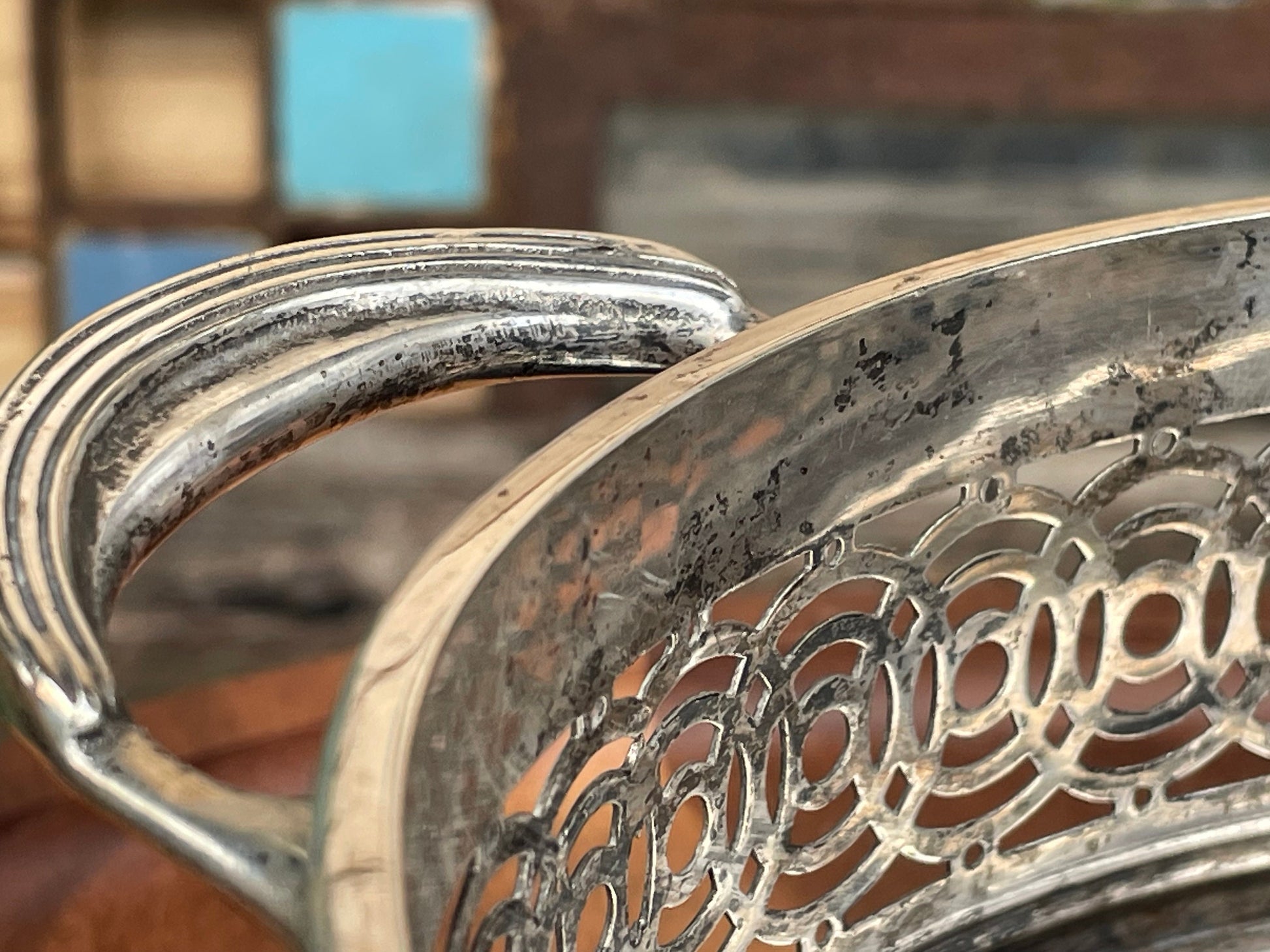 A Large Pierced Silver Plate Handled Bowl 18cm Diameter Bowl late 1700's possibly