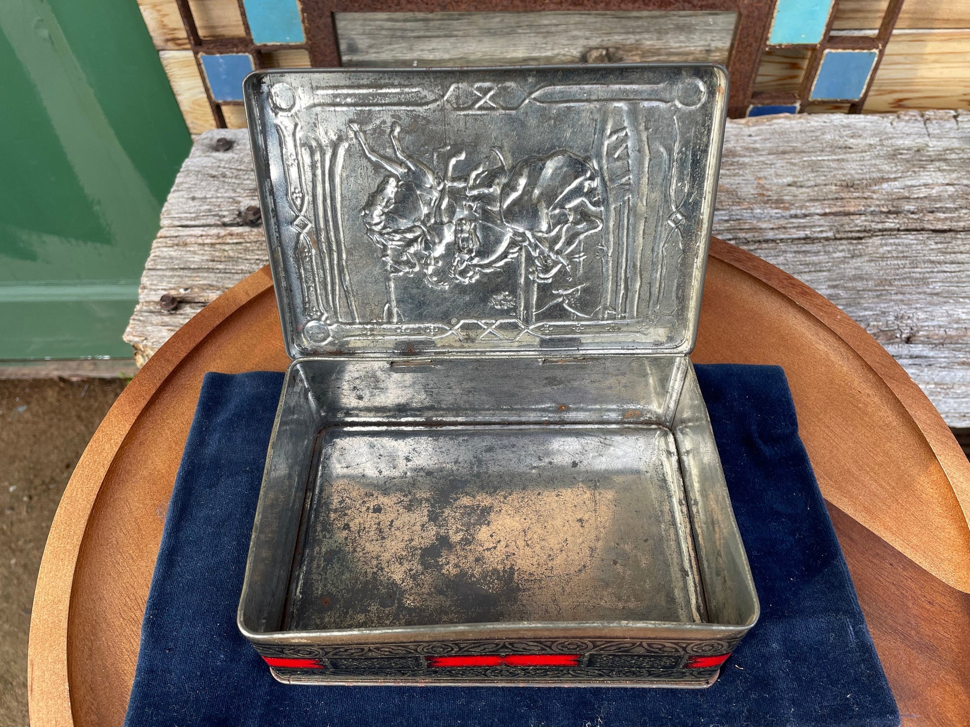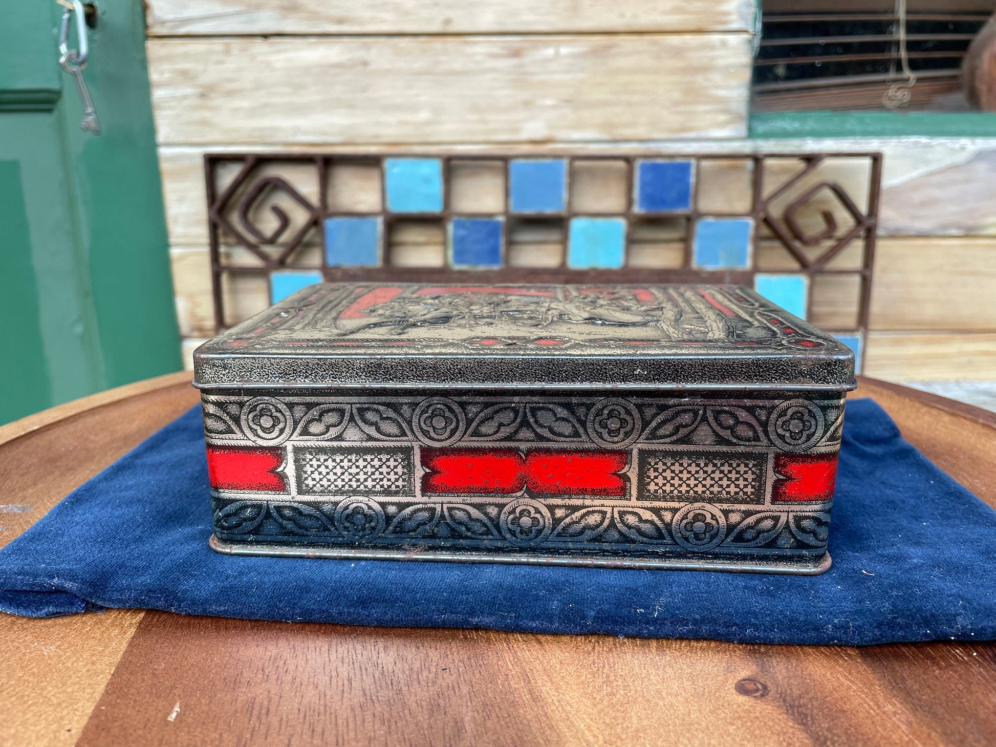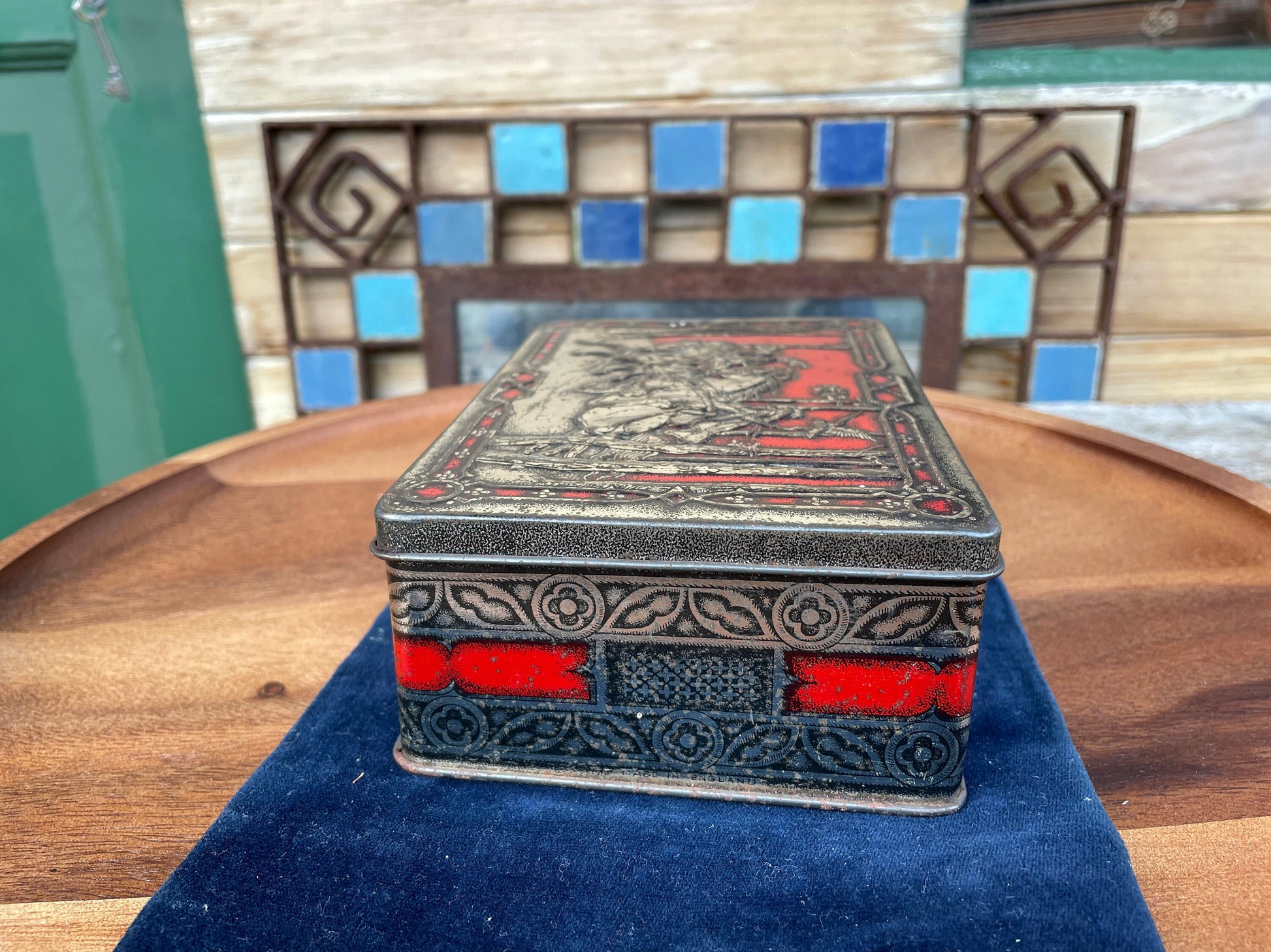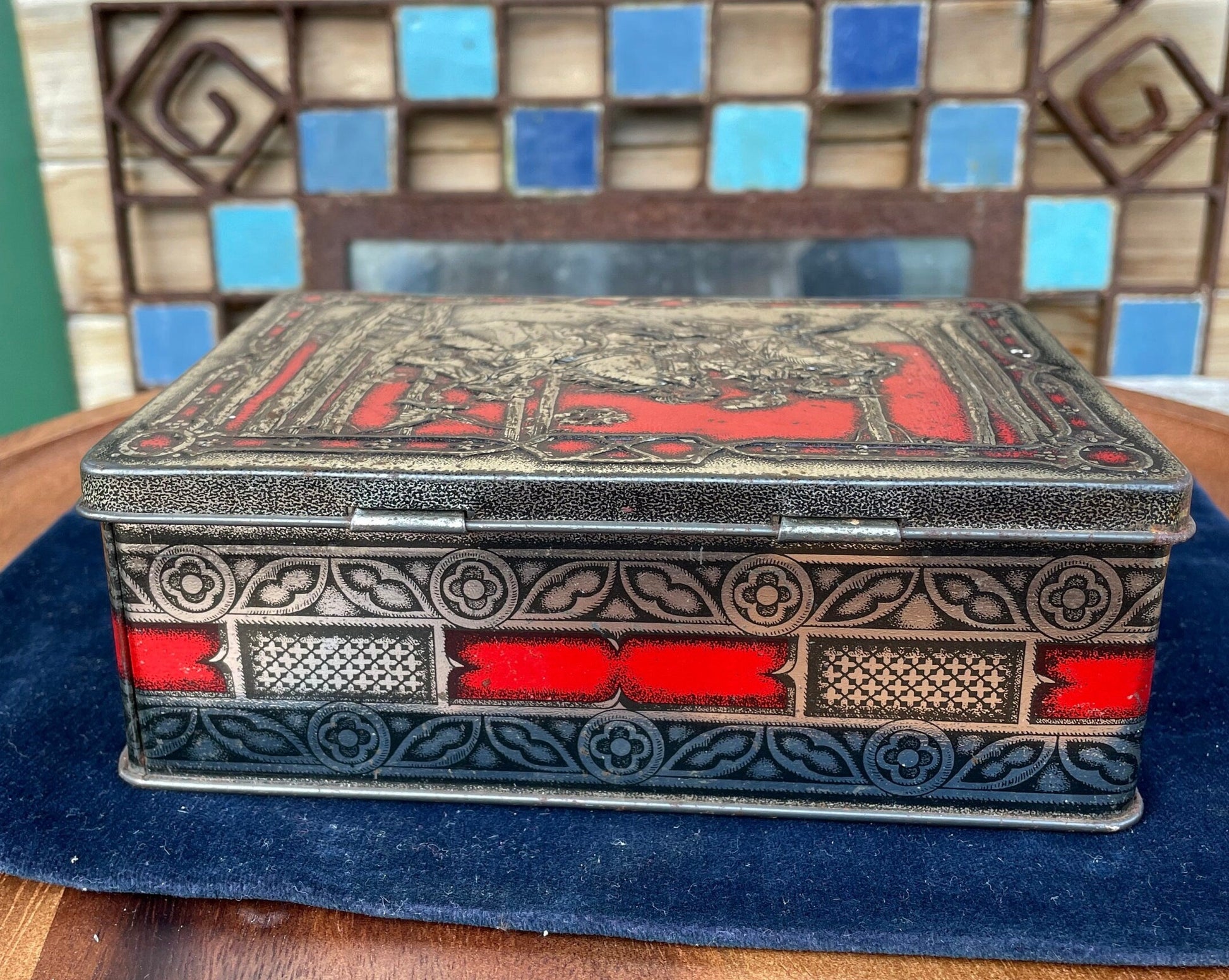 This is a lovely tin, different from the rest in that is has heavily embossed top detailing - The red and silver colouring works well to lift this tin above the rest and I guess at the time lifted the perceived quality of their toffees