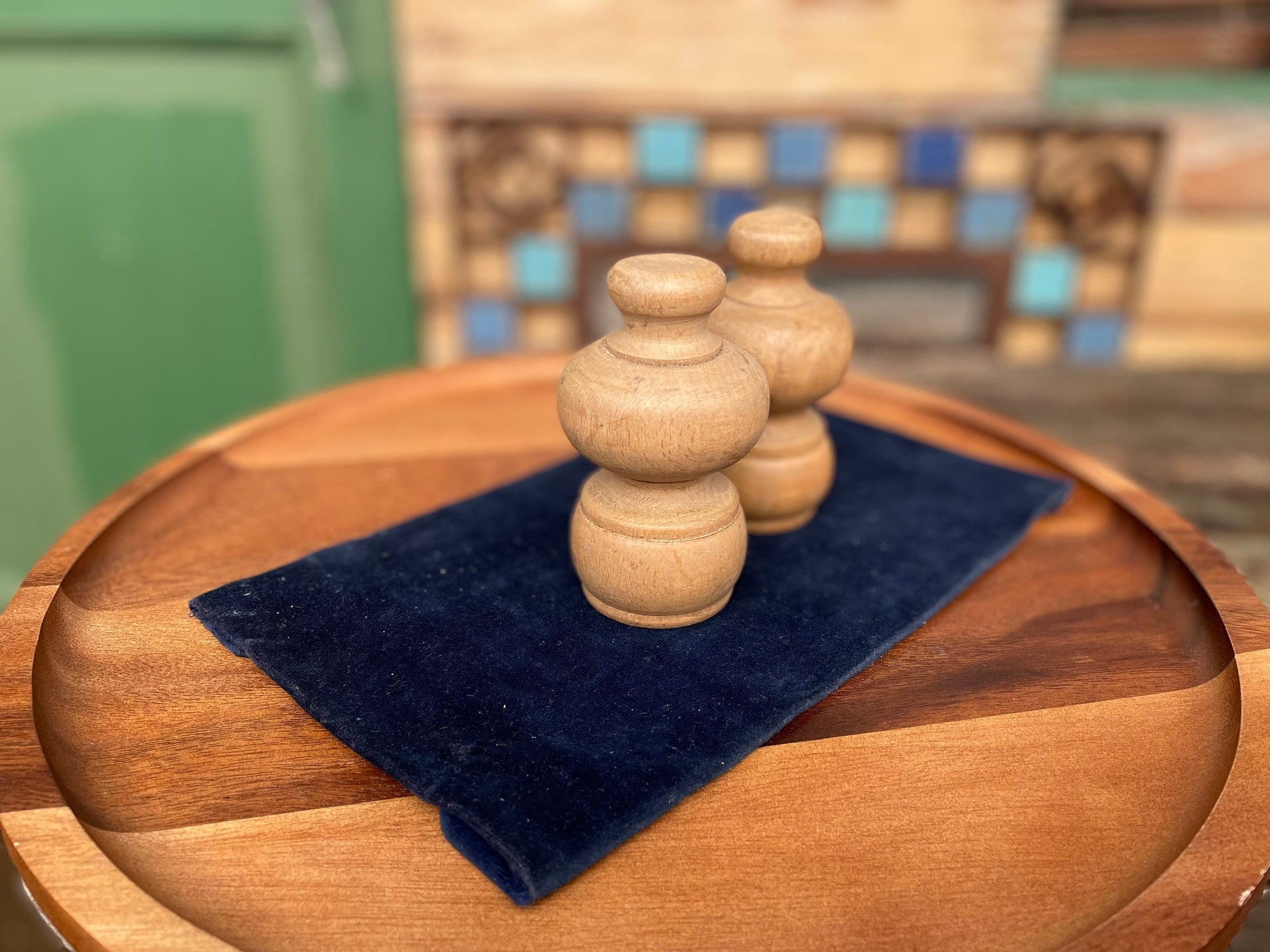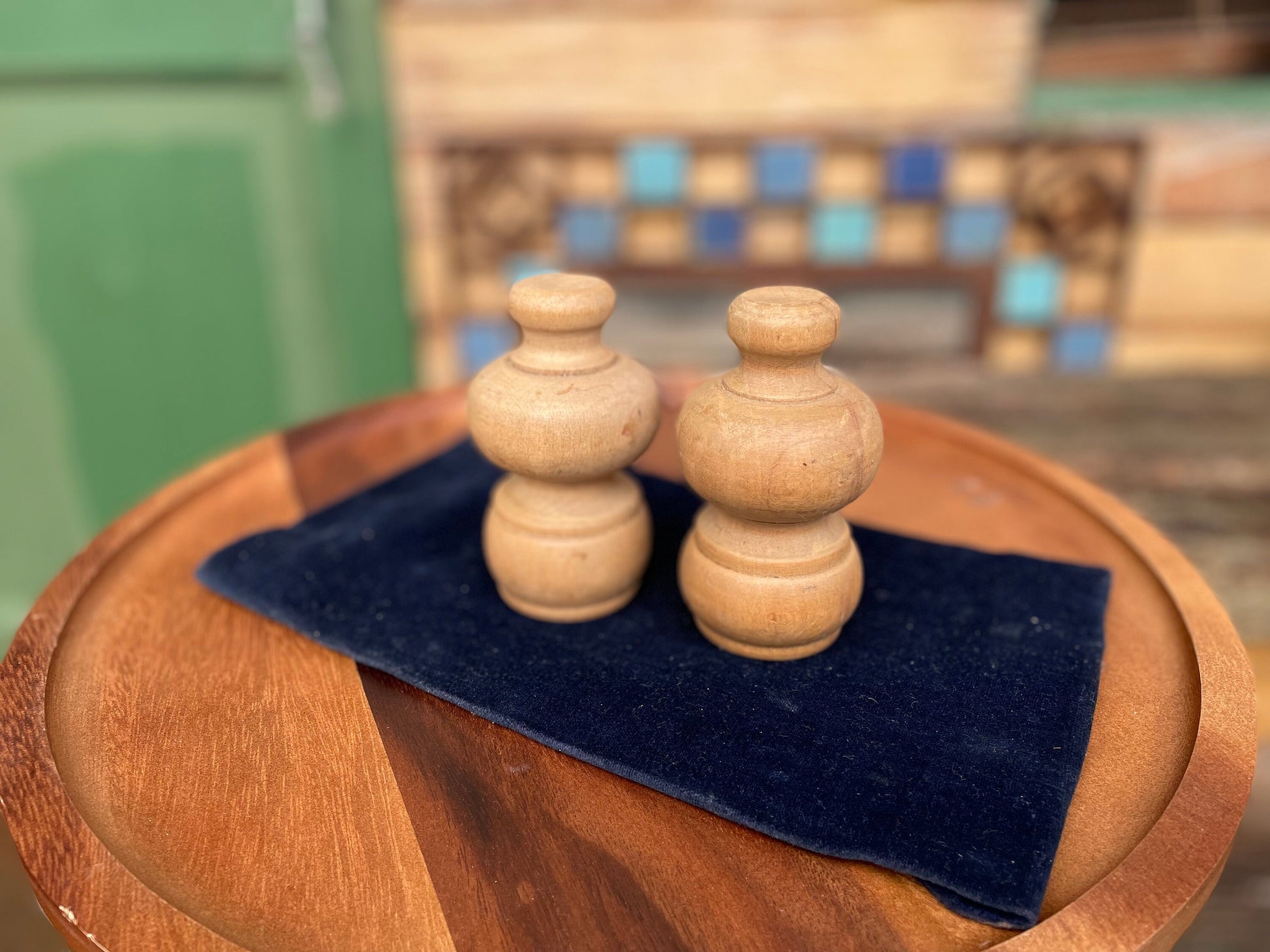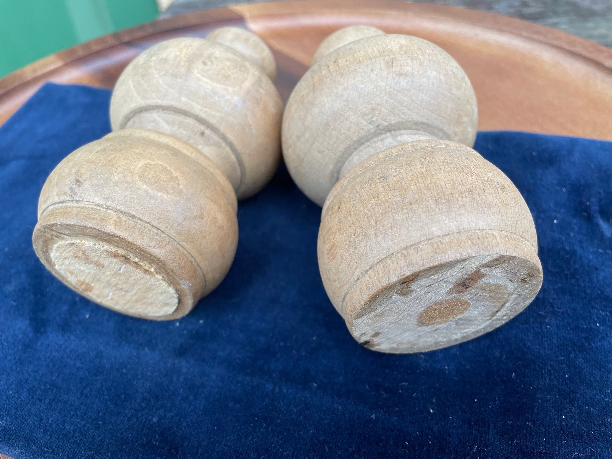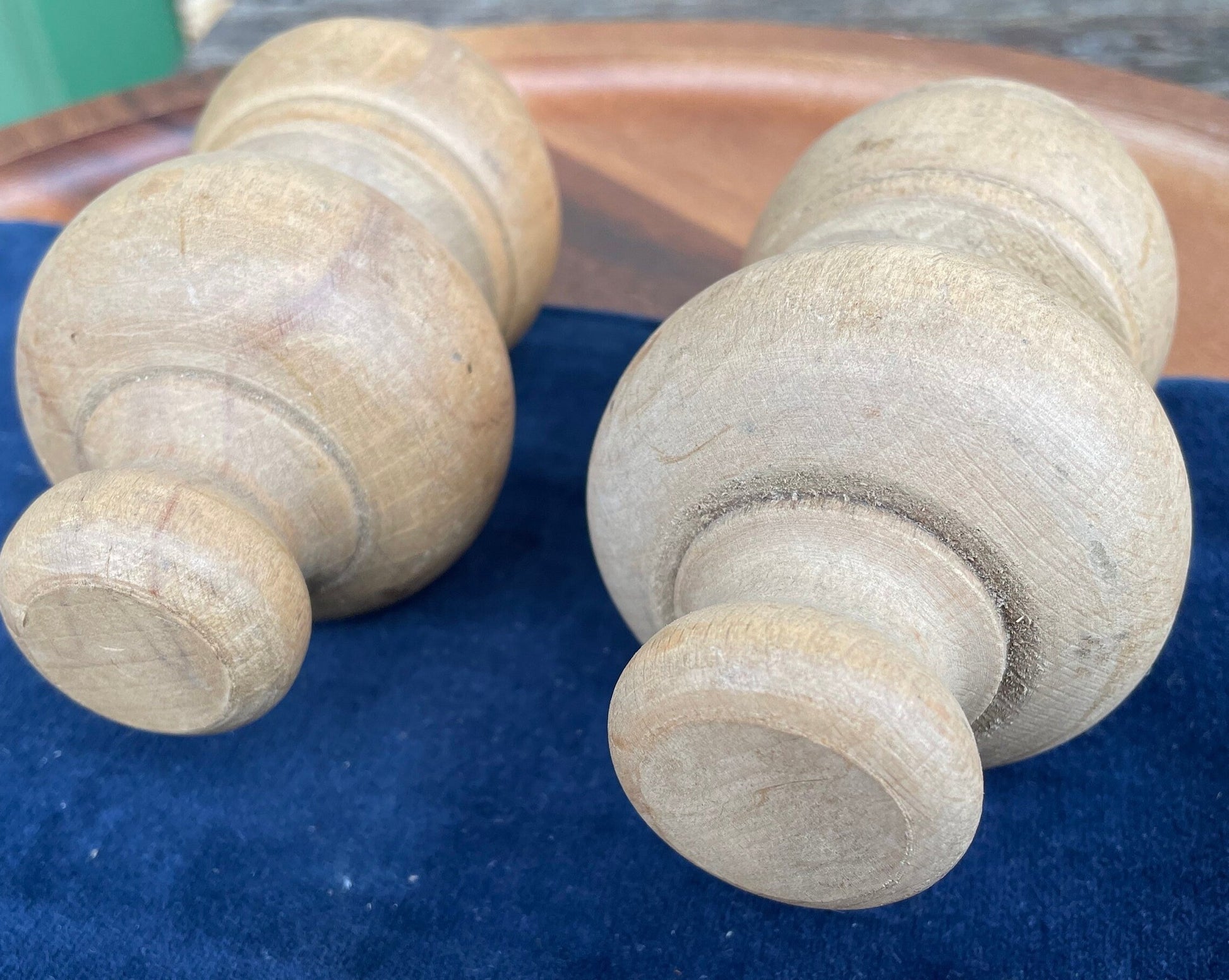 A Pair of Hand Turned Beech Curtain Rail Finials 11cm Long