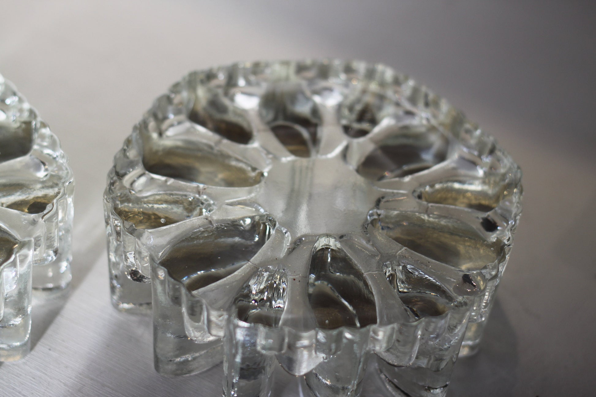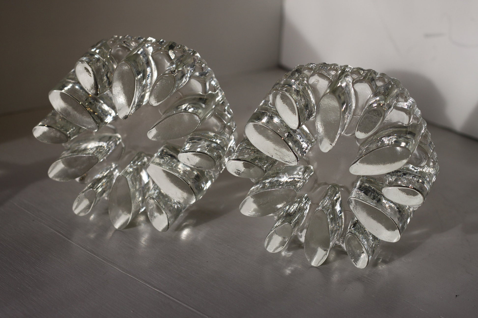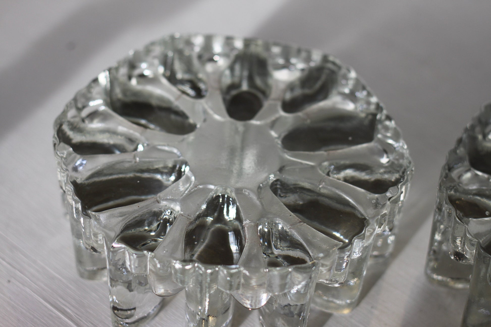 Here we have a pair of proper vintage, 70's German La Vida clear glass candle holders/ pot walmers 15.5cm in diameter