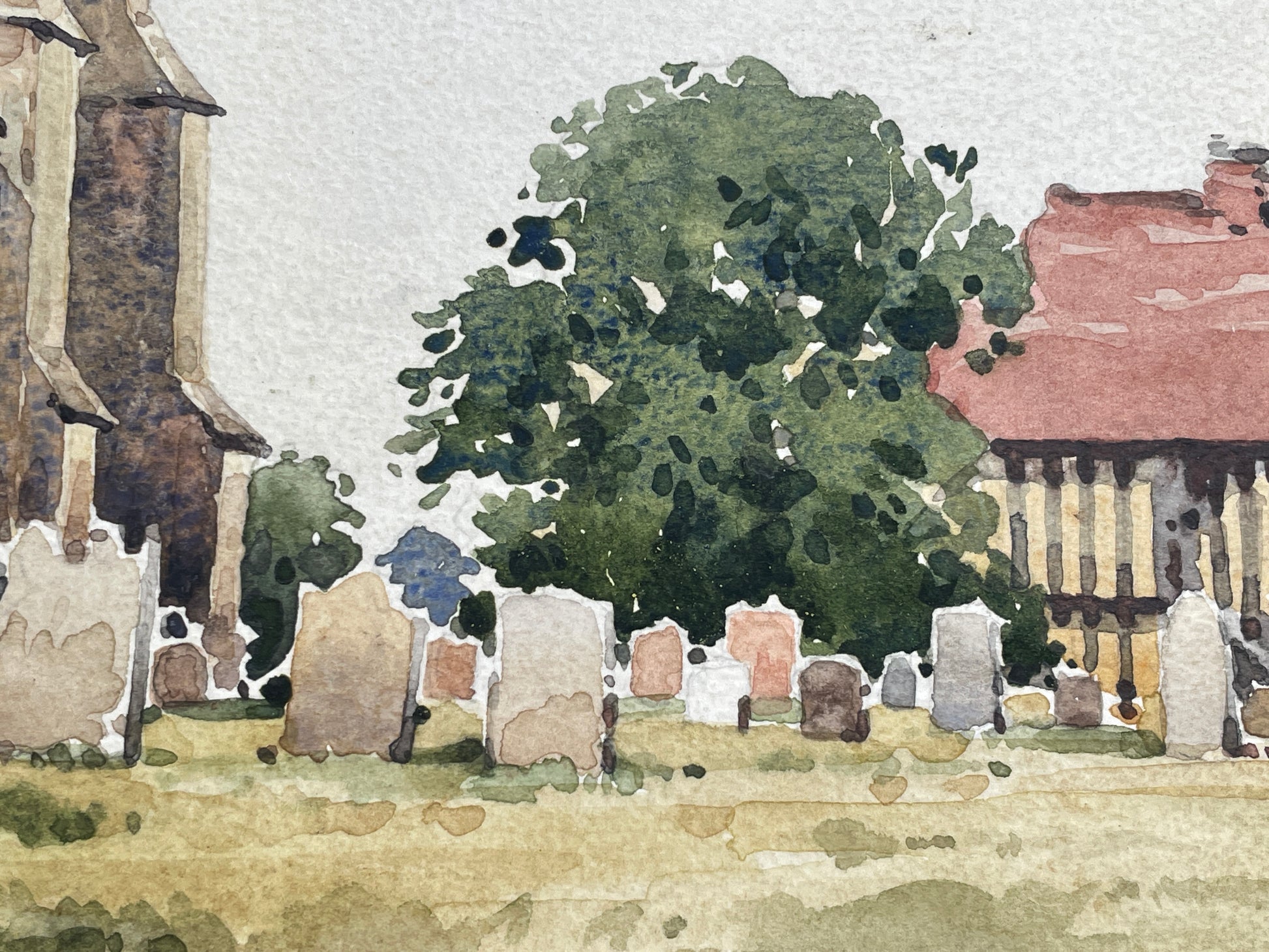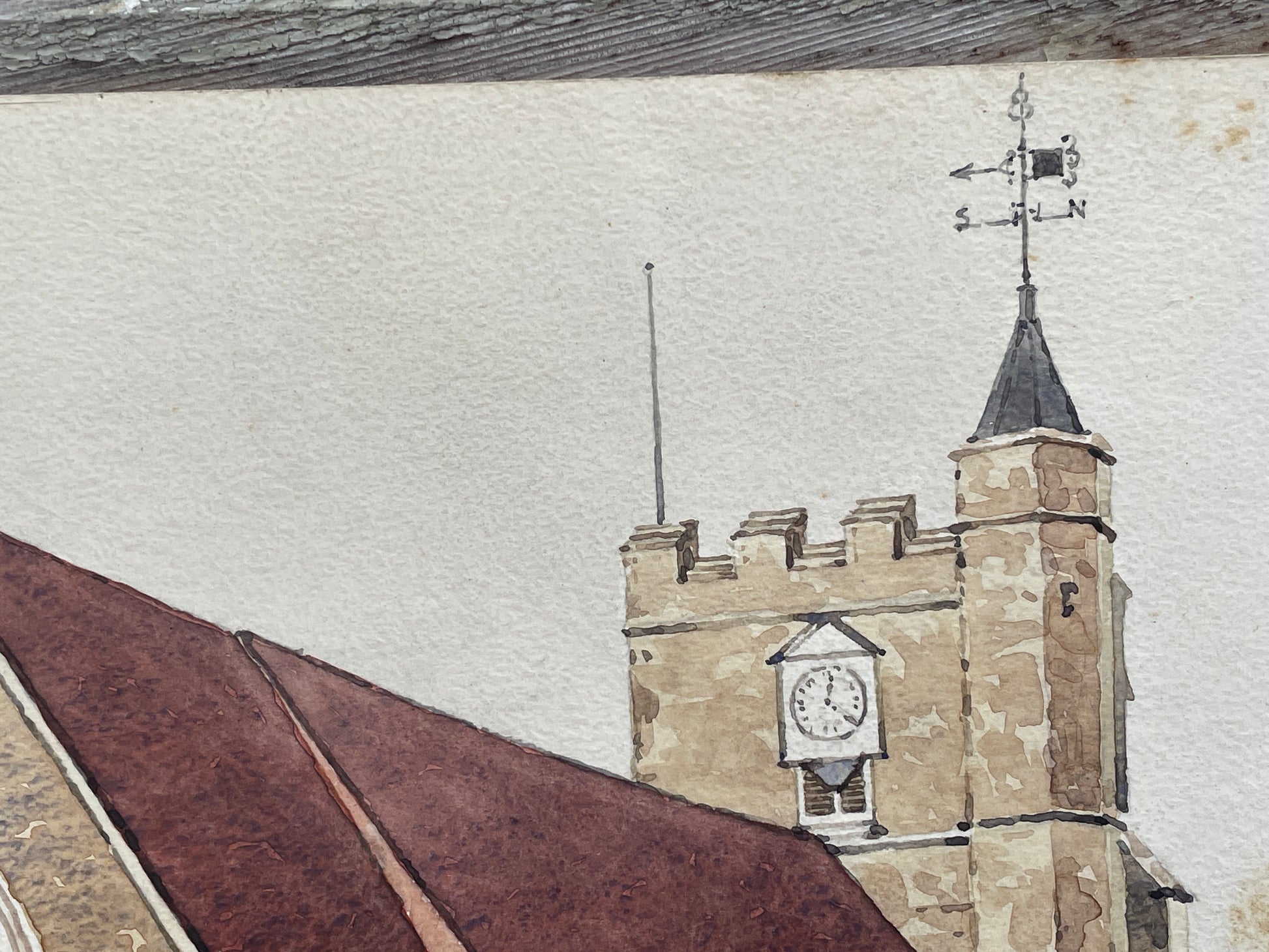 A signed original watercolour of St Peter and St Paul parish church by renowned London artist Herbert Ahier c1950'