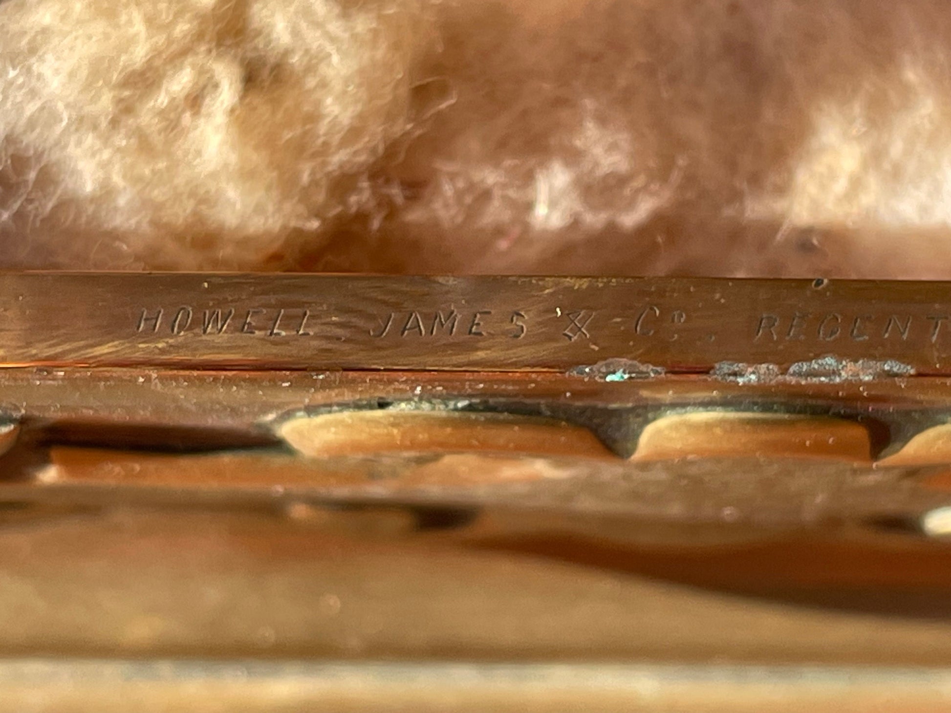 On the inside rim of the box there is an engraved text that reads 'Howell James & Co Regent St W' - Howell James & Company was a firm of jewellers and silversmiths based in Regent Street in London which operated between 1819 and 1911.