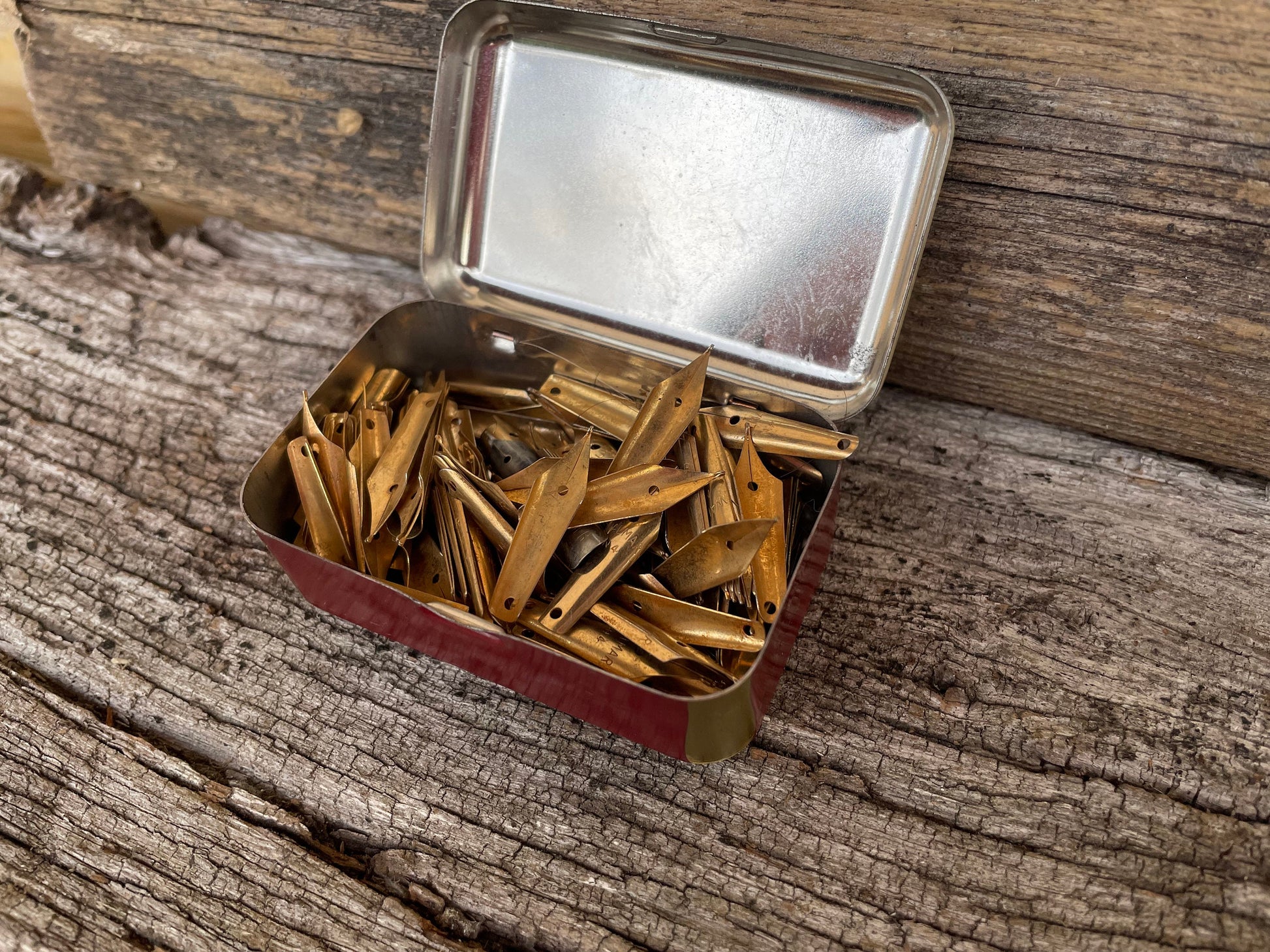Contains approx. 160 Walmar No.4 nibs and 16 No. Mitchells Italic left hand nibs