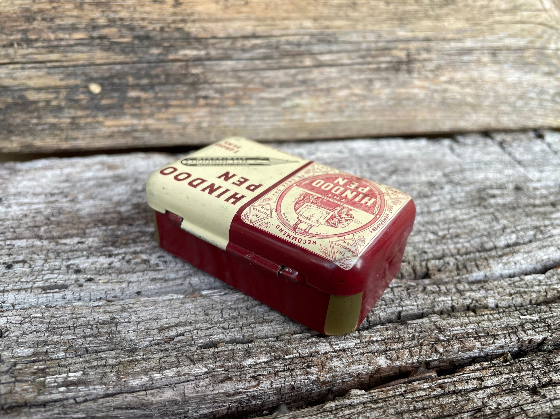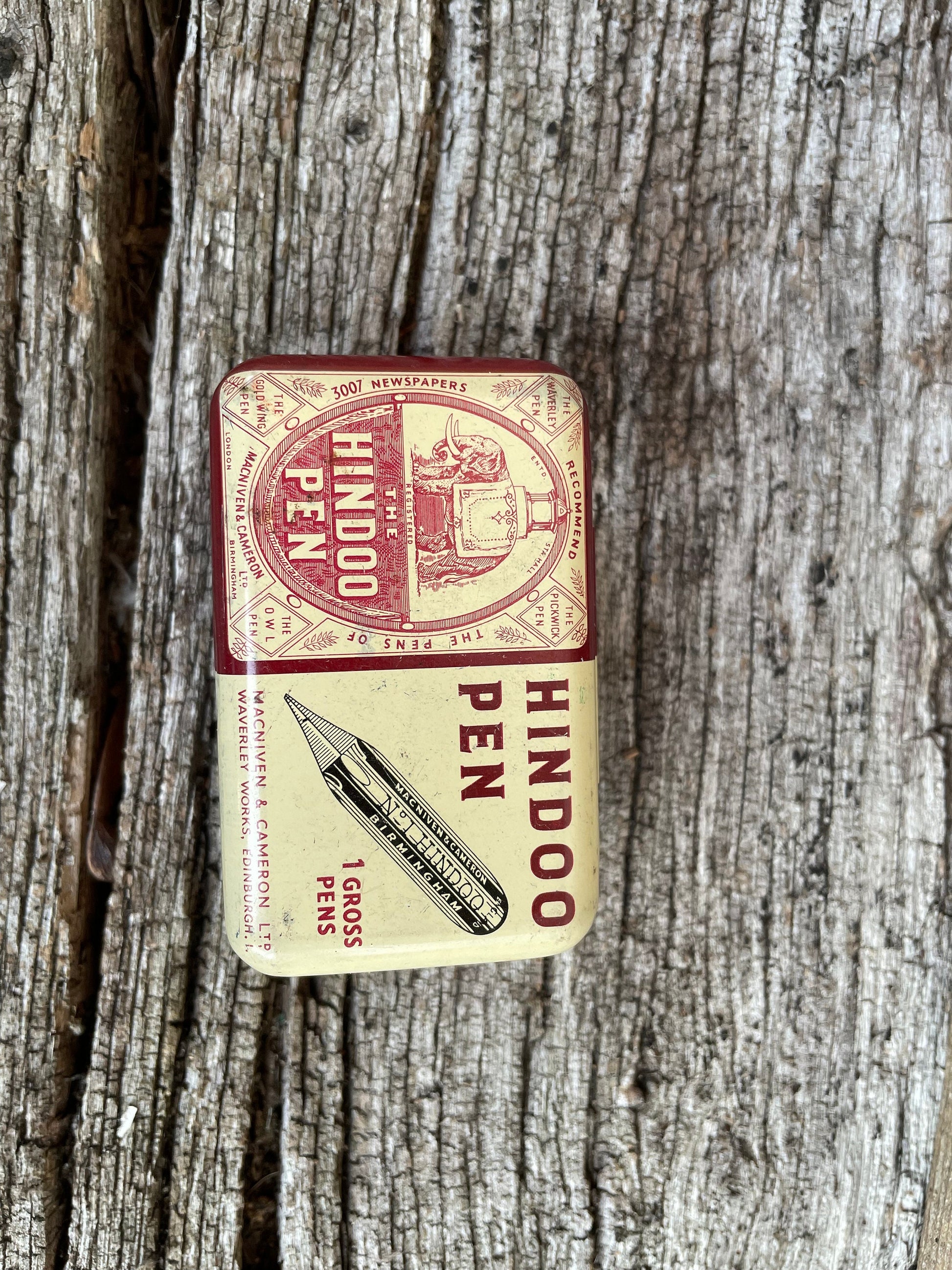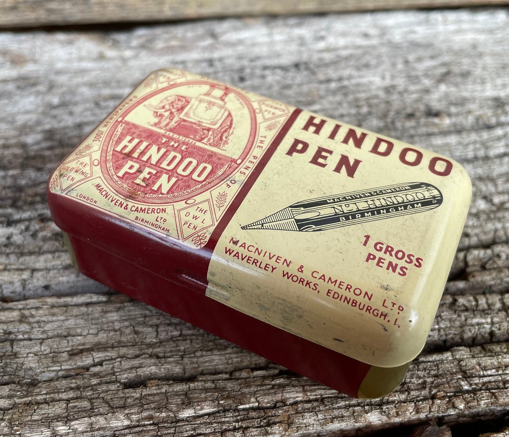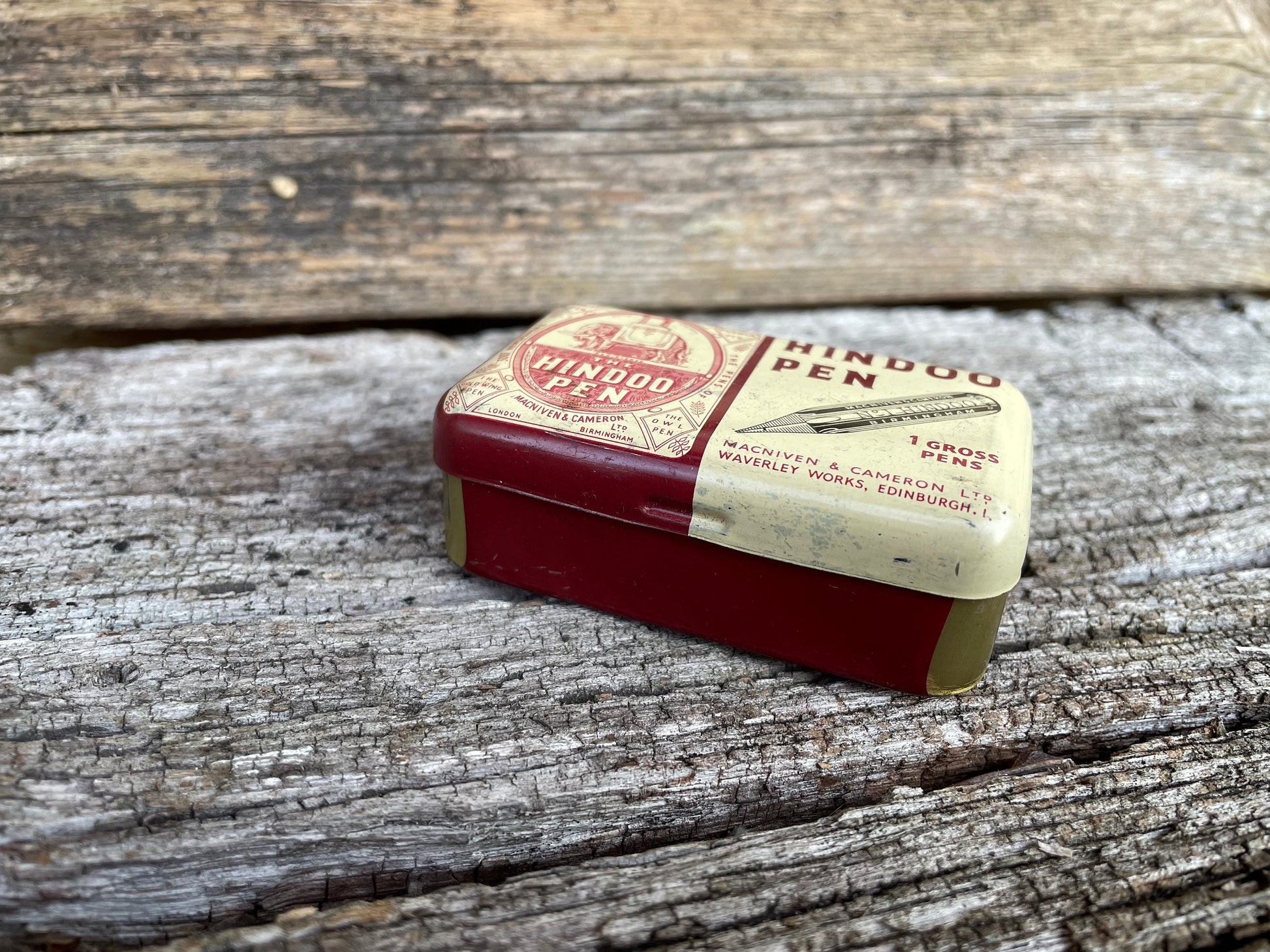 A Vintage Hindoo Pen Nibs Tin Box by Macniven and Cameron Ltd With Walmar and Mitchells LH Italic Nibs