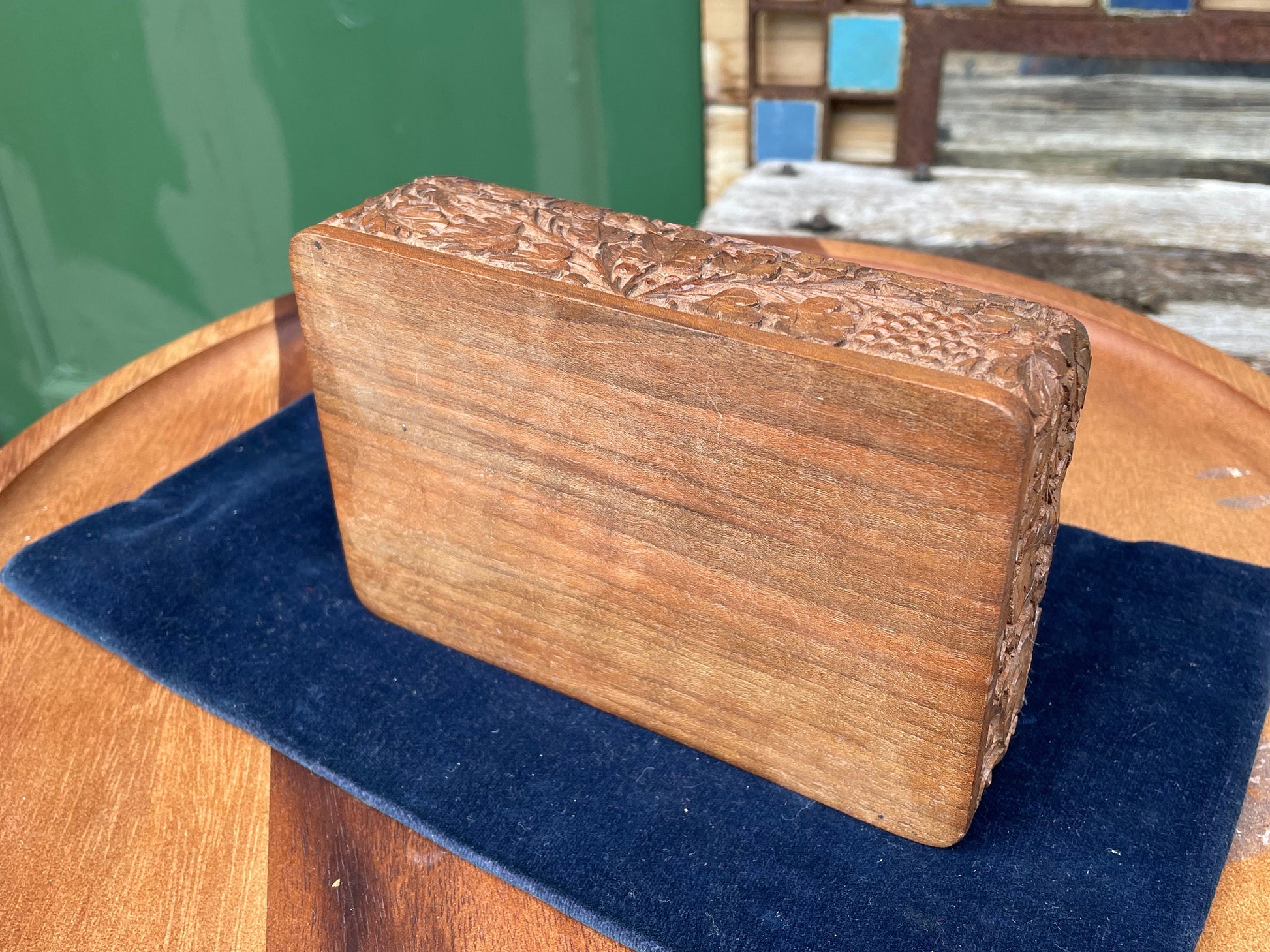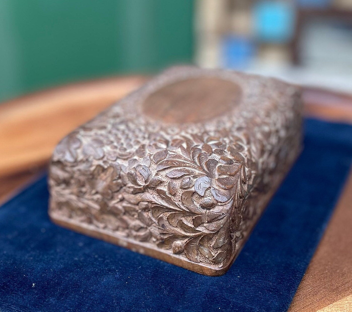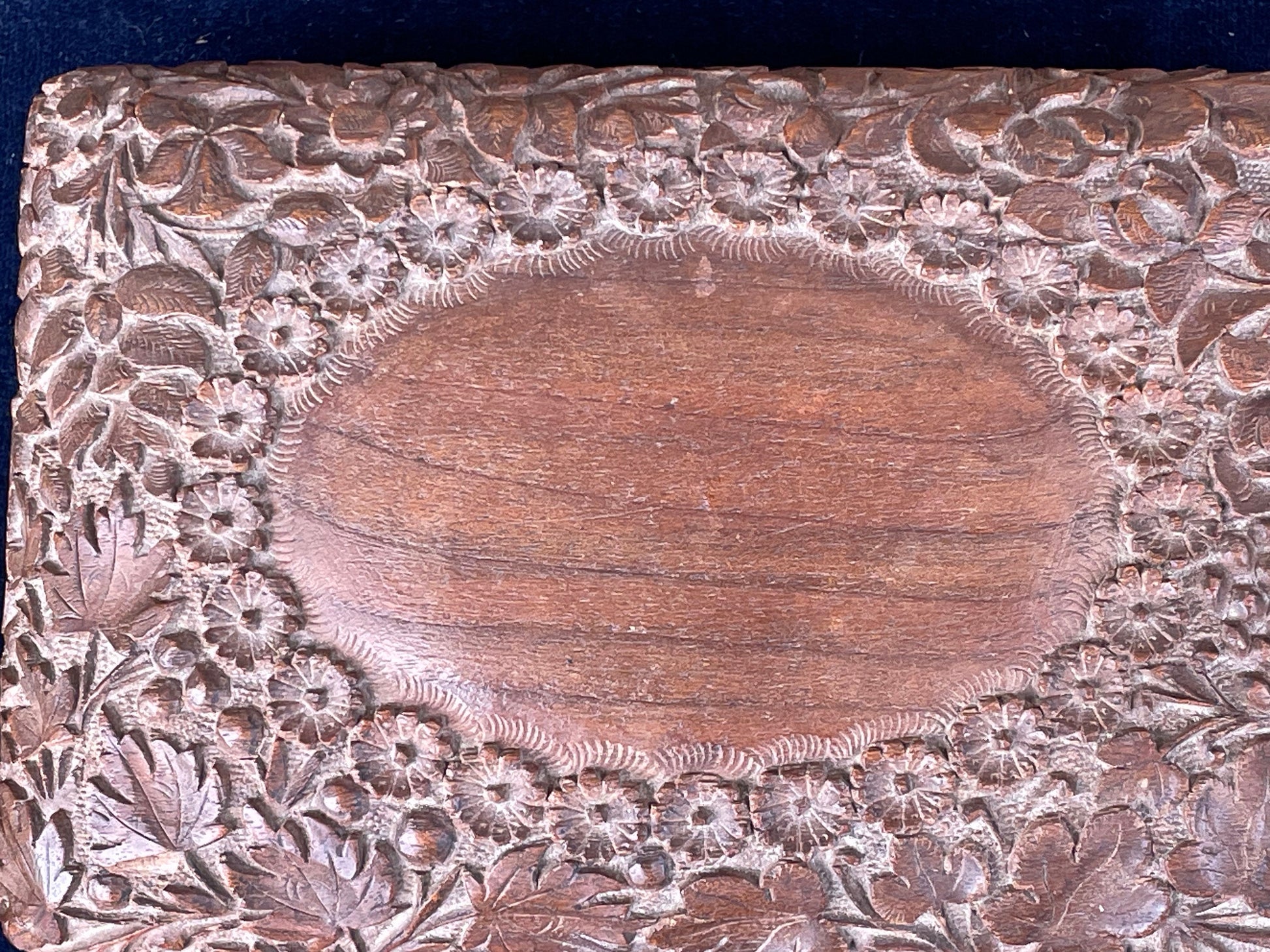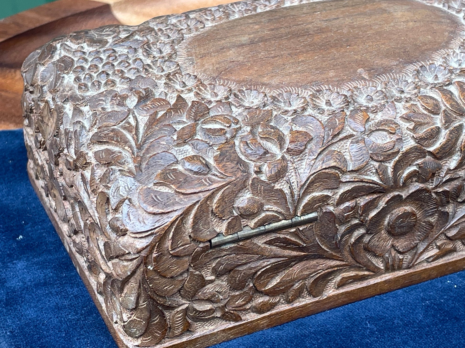 This beautiful box looks to be Indian, in wonderful condition - I just hope I was able to get across in the images the quality of the floral and foliage carving on this box