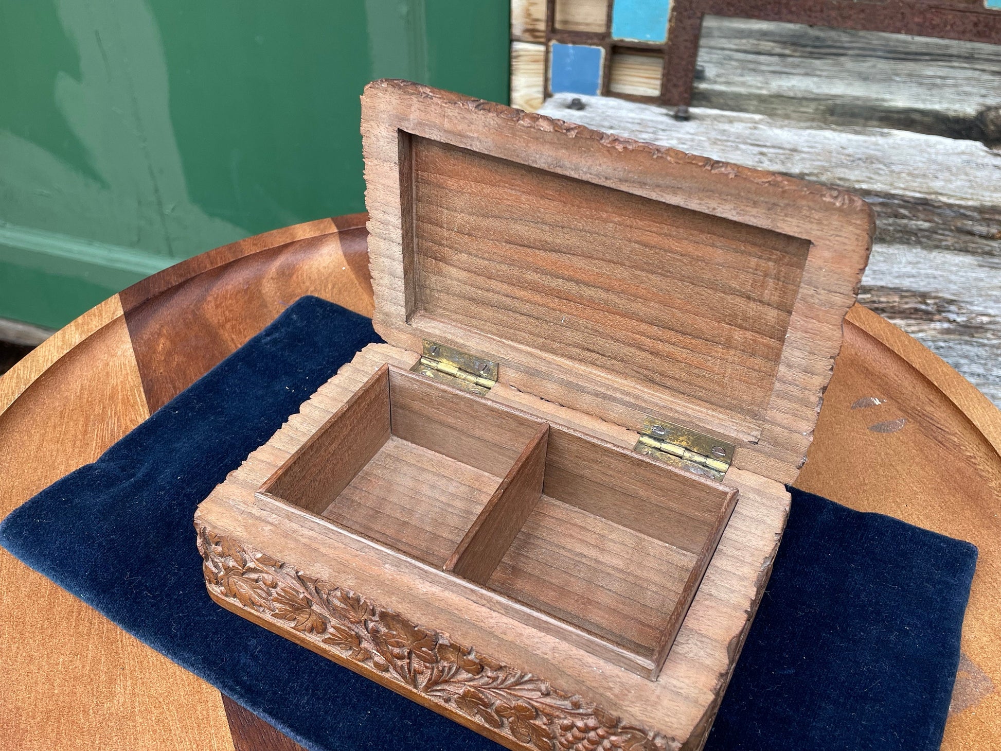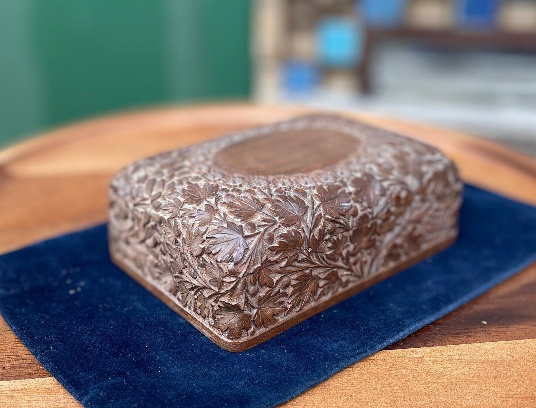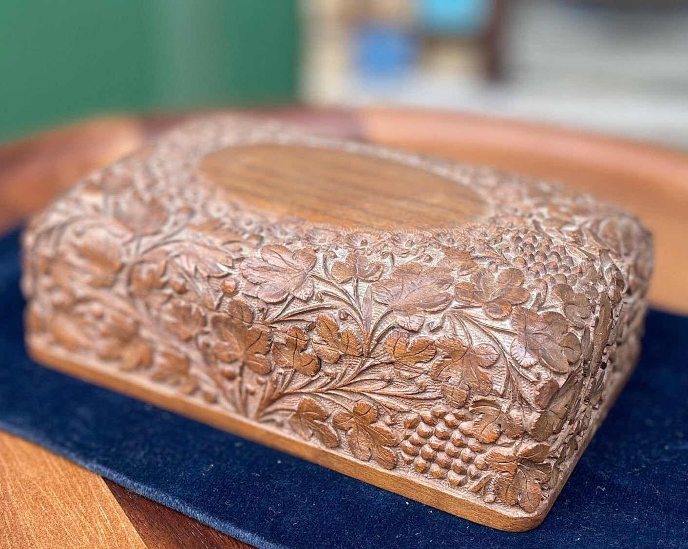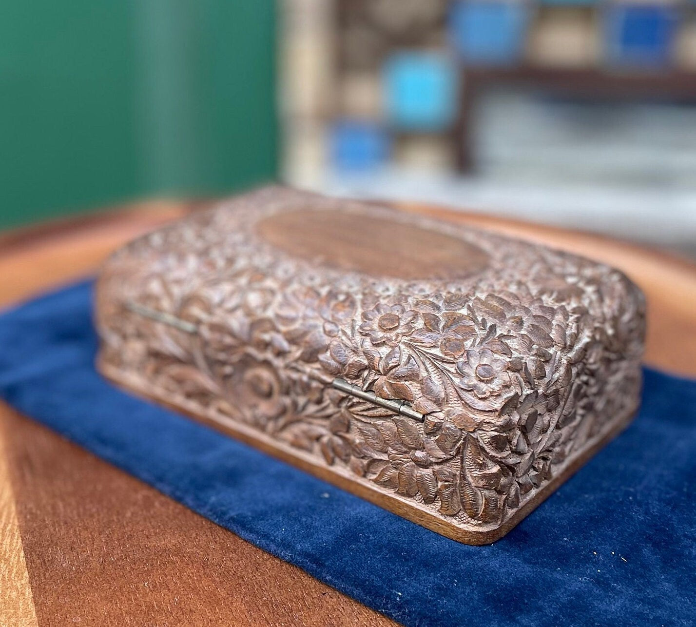 This beautiful box looks to be Indian, in wonderful condition - I just hope I was able to get across in the images the quality of the floral and foliage carving on this box