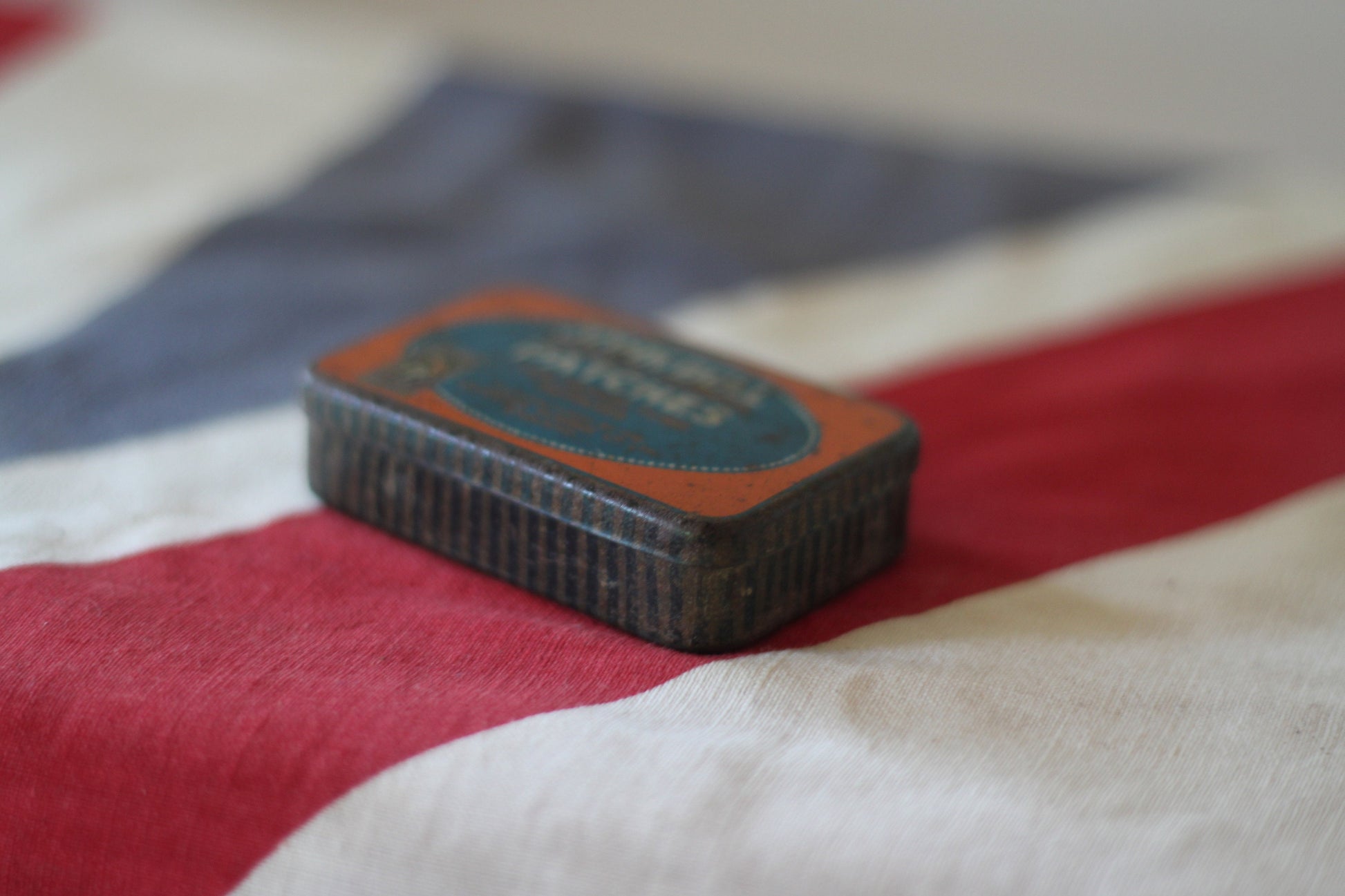 This tin is in good condition and an early example. Yes there are signs of ware as you can see from the images but the hinges works well and the advertising has great colour and is legible
