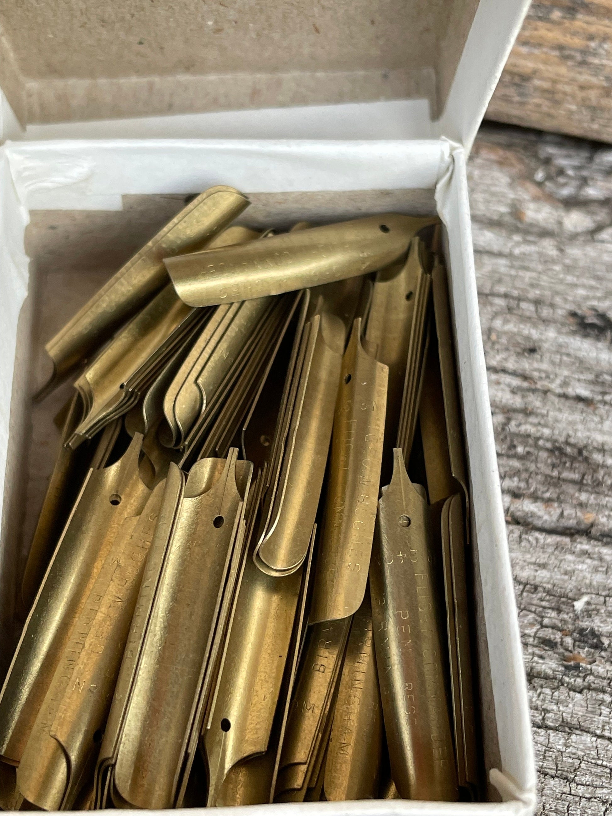 Here we have a vintage opened box of Flight Commander Pen nibs by Geo W. Hughes - No. 1240 M approx. 80 nibs