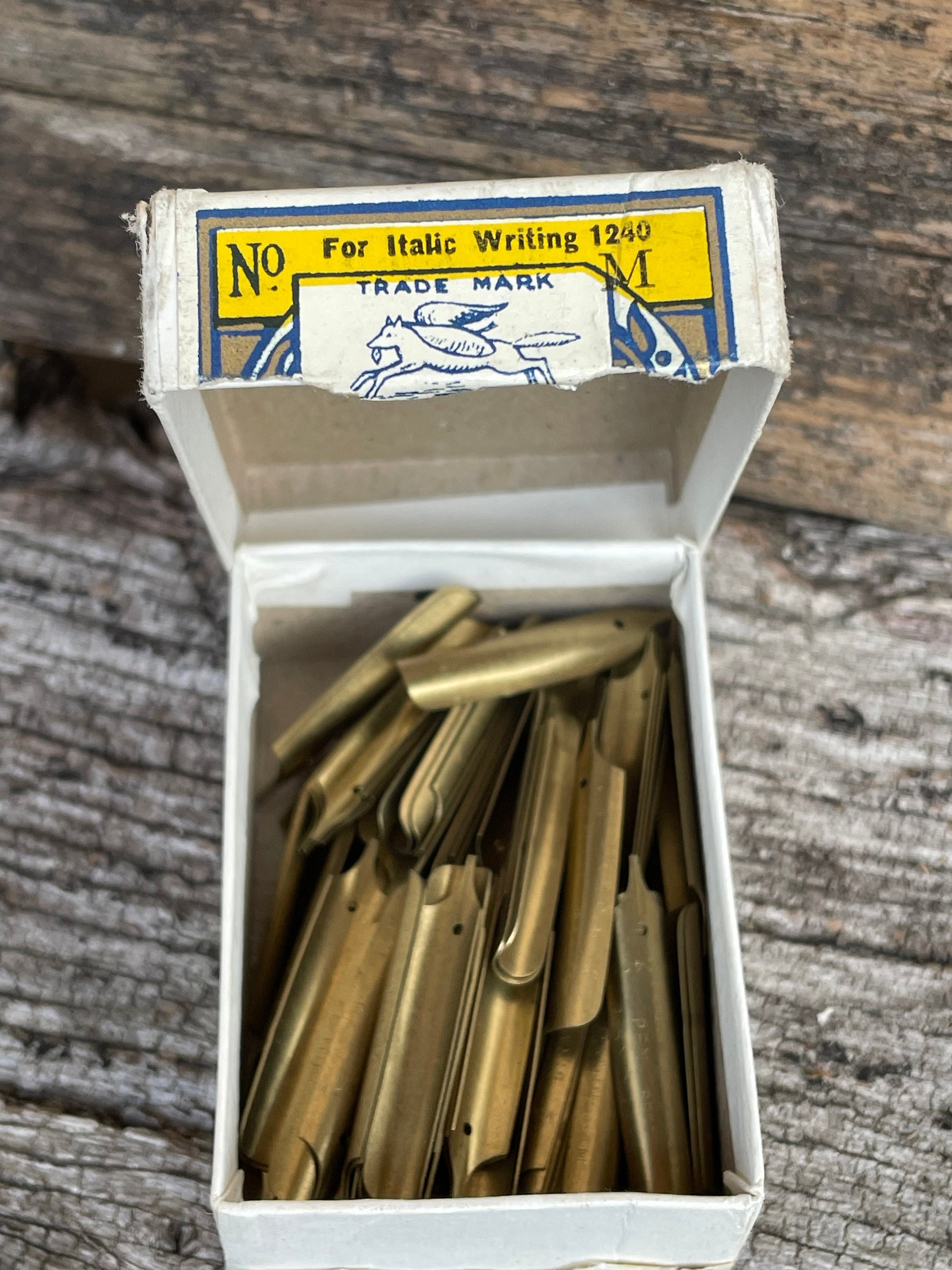 The box is opened, they are marked as No. 1240 Medium nibs