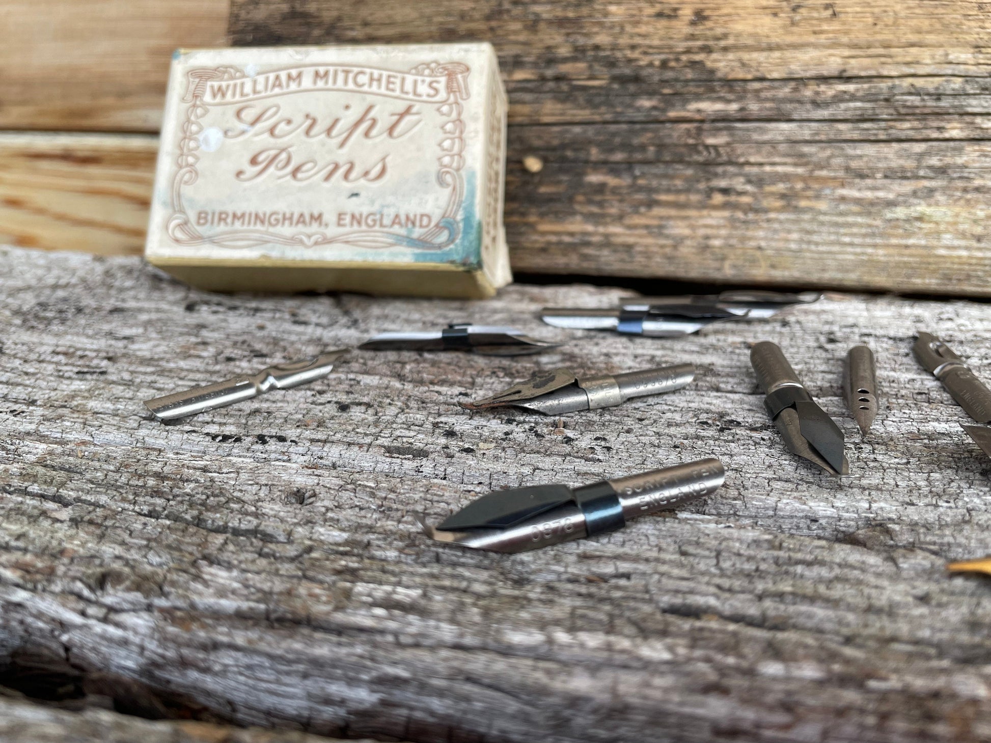 A Vintage Script Pens Box Full of Various Nibs - Script, Left Hand, Shellfish, Lino Cutter, Decro, Shakespeare Nibs etc