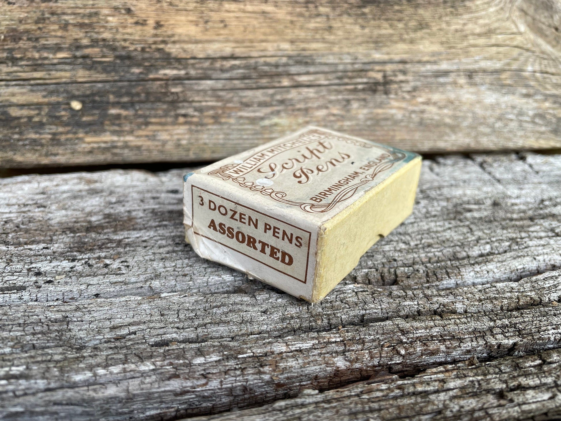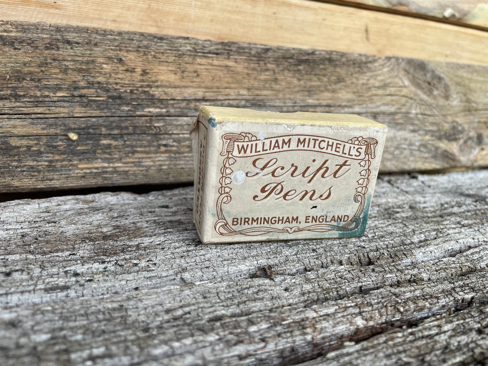 Here we have a vintage Script pens box full of various nibs - script, left hand, Shellfish, lino cutter, Decro, Shakespeare nibs etc