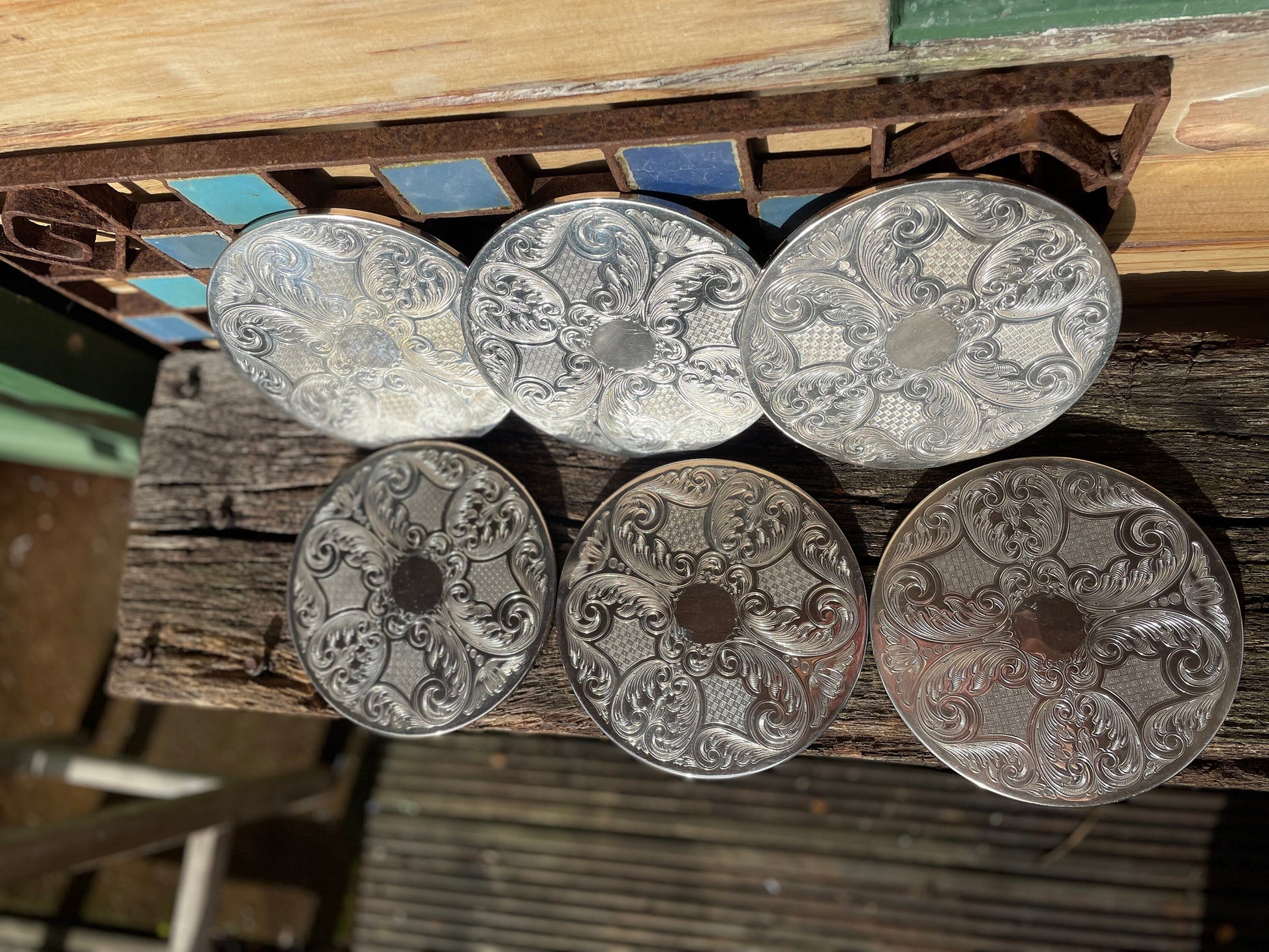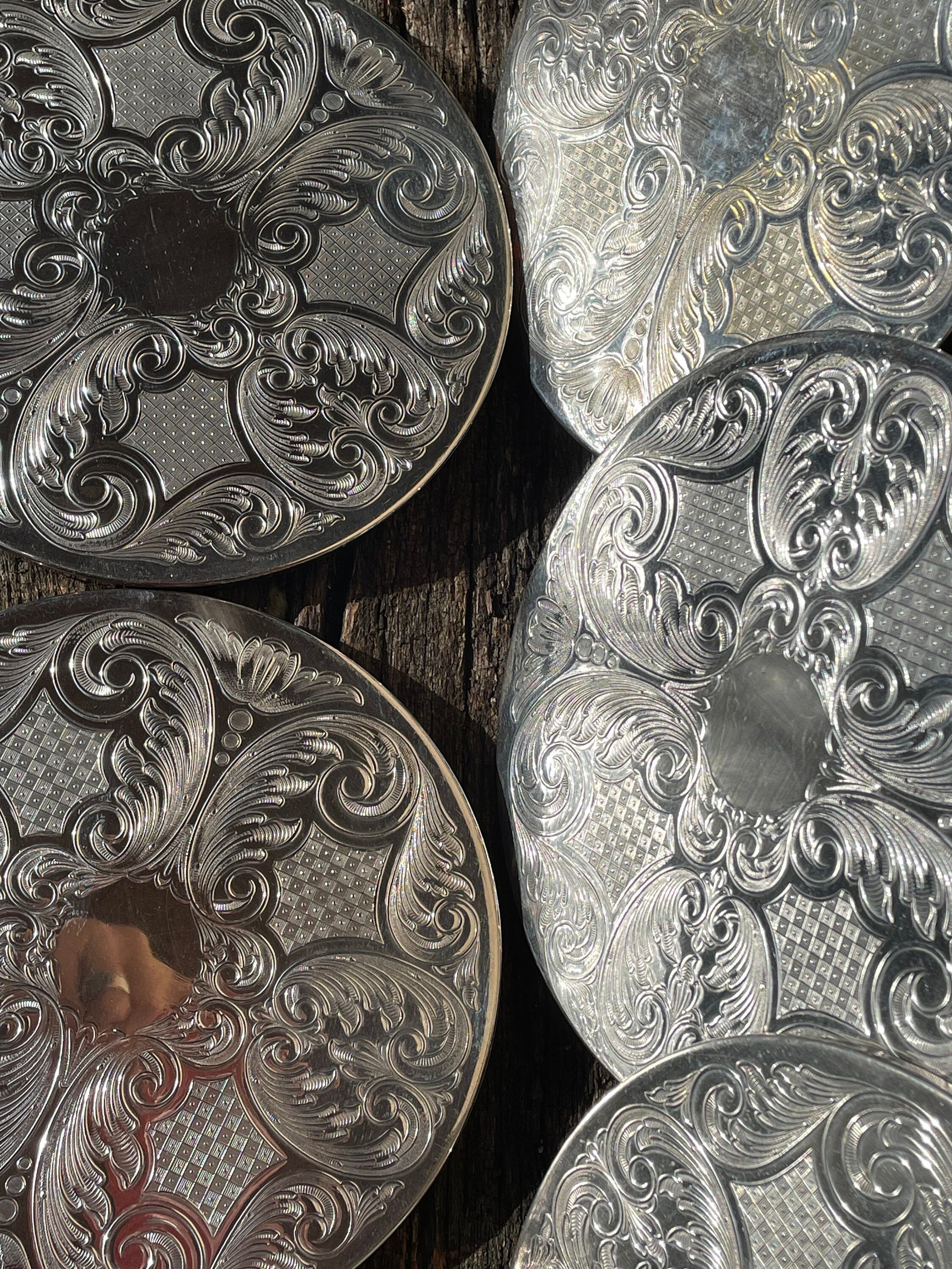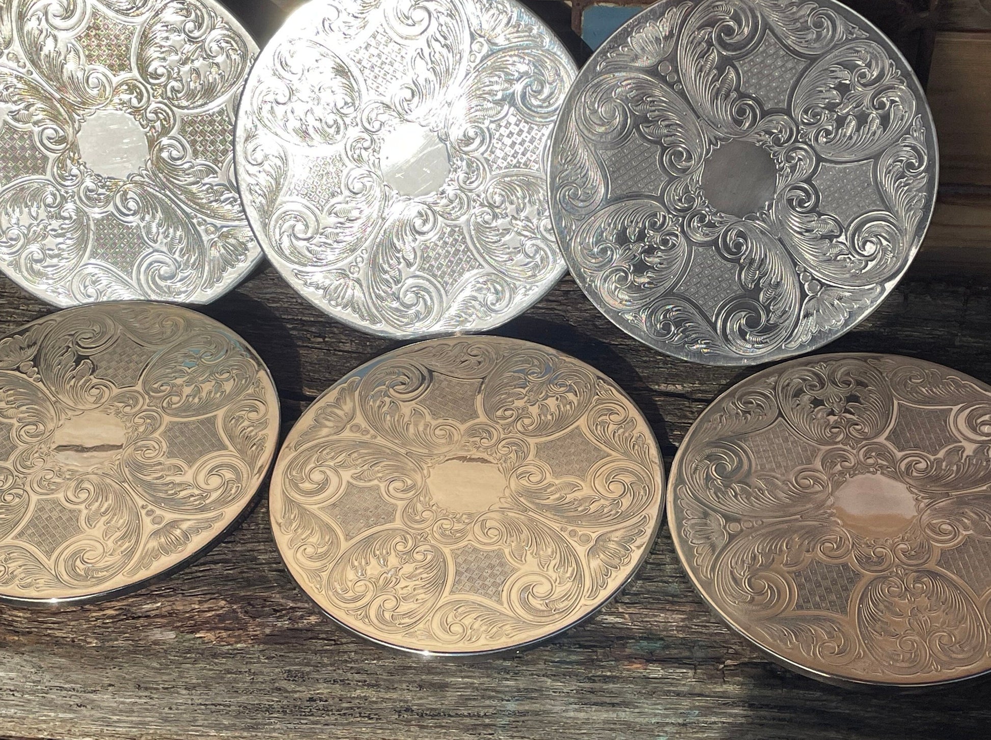 Here we have a vintage set of six English silver plated table place mats 16.5cm diameter