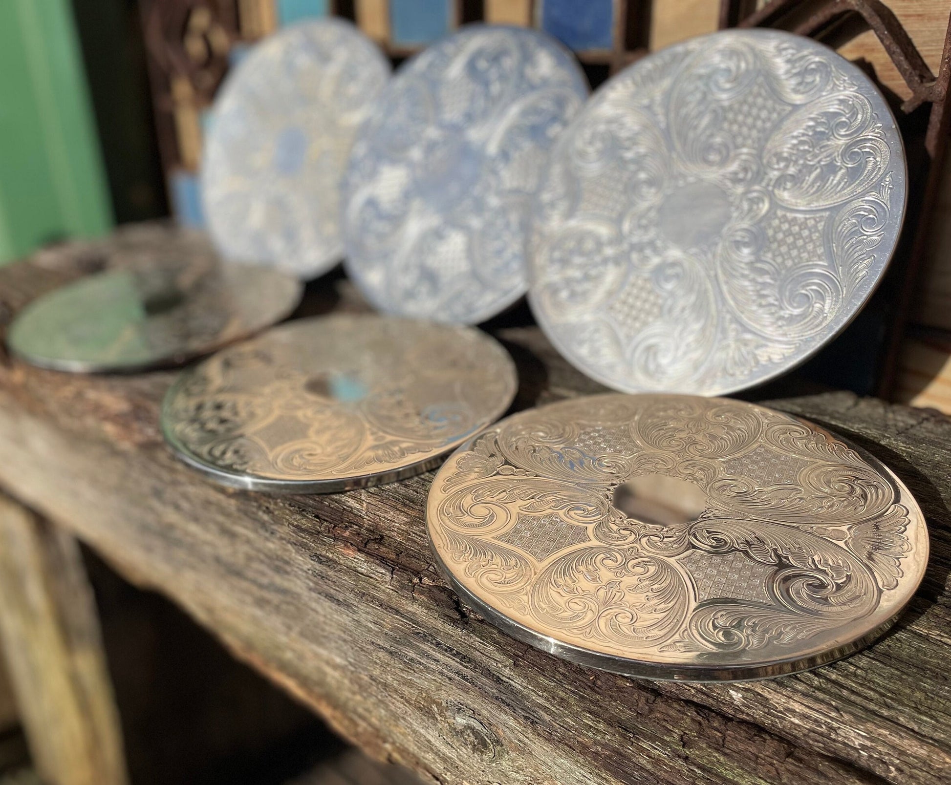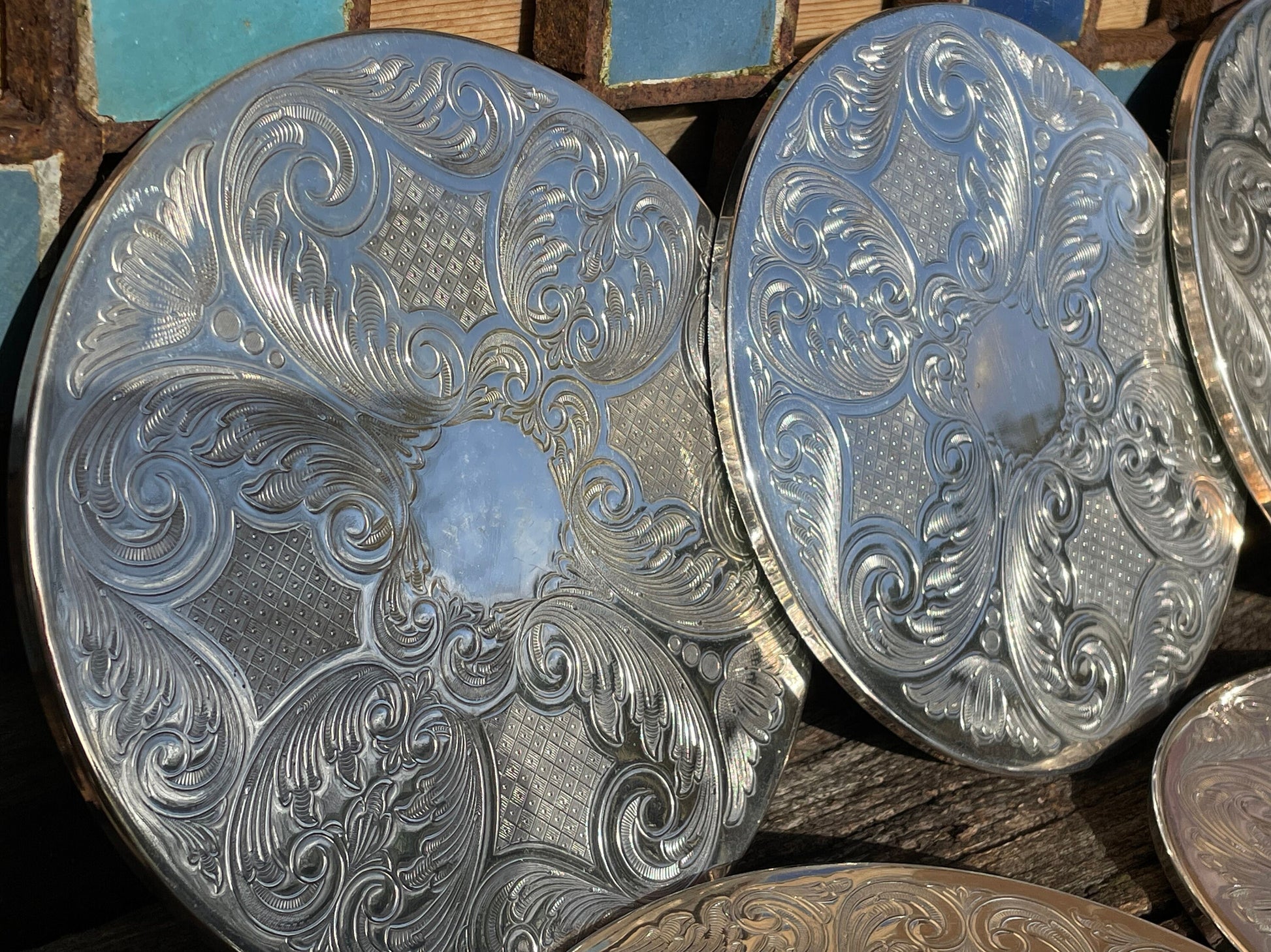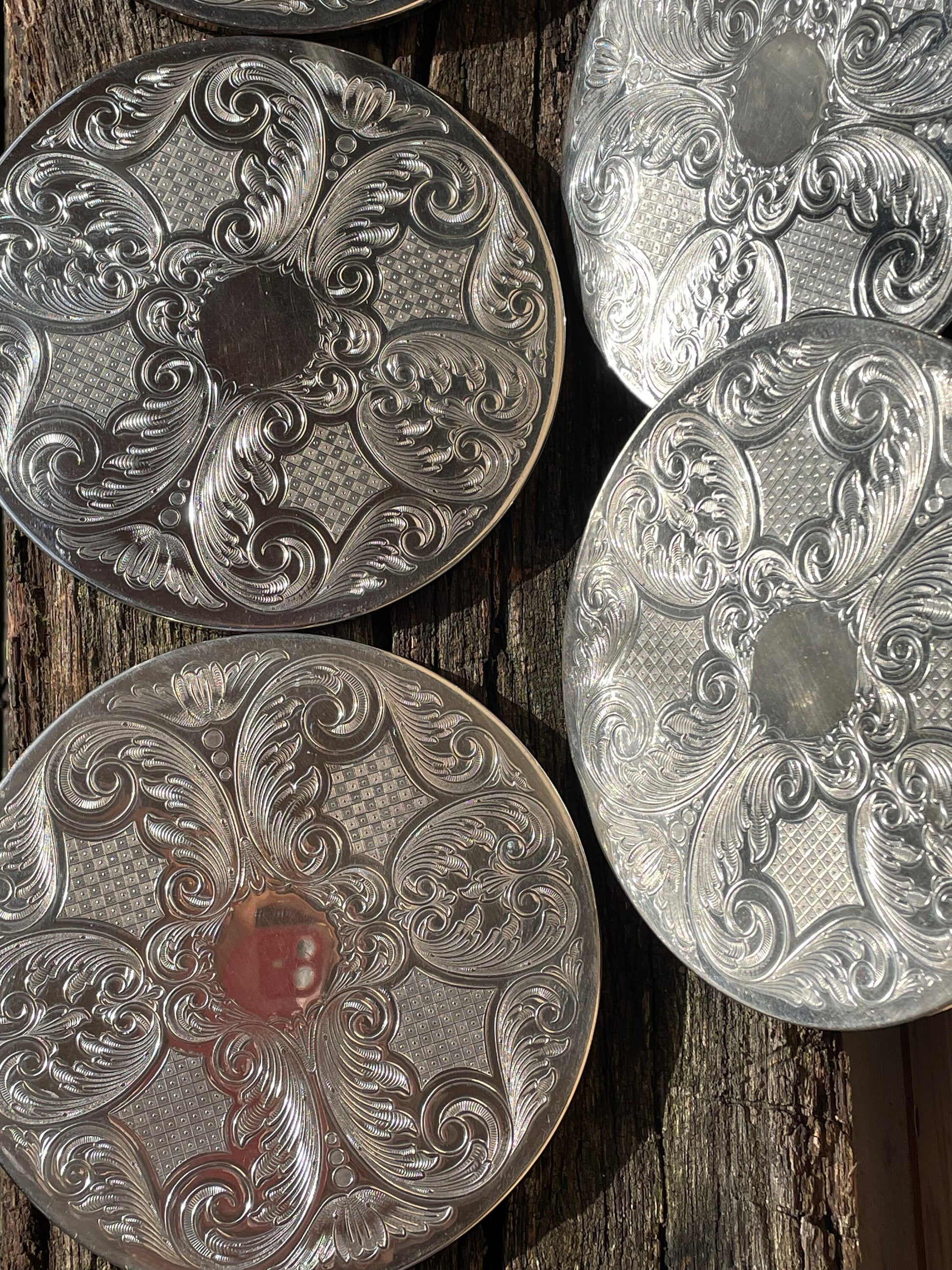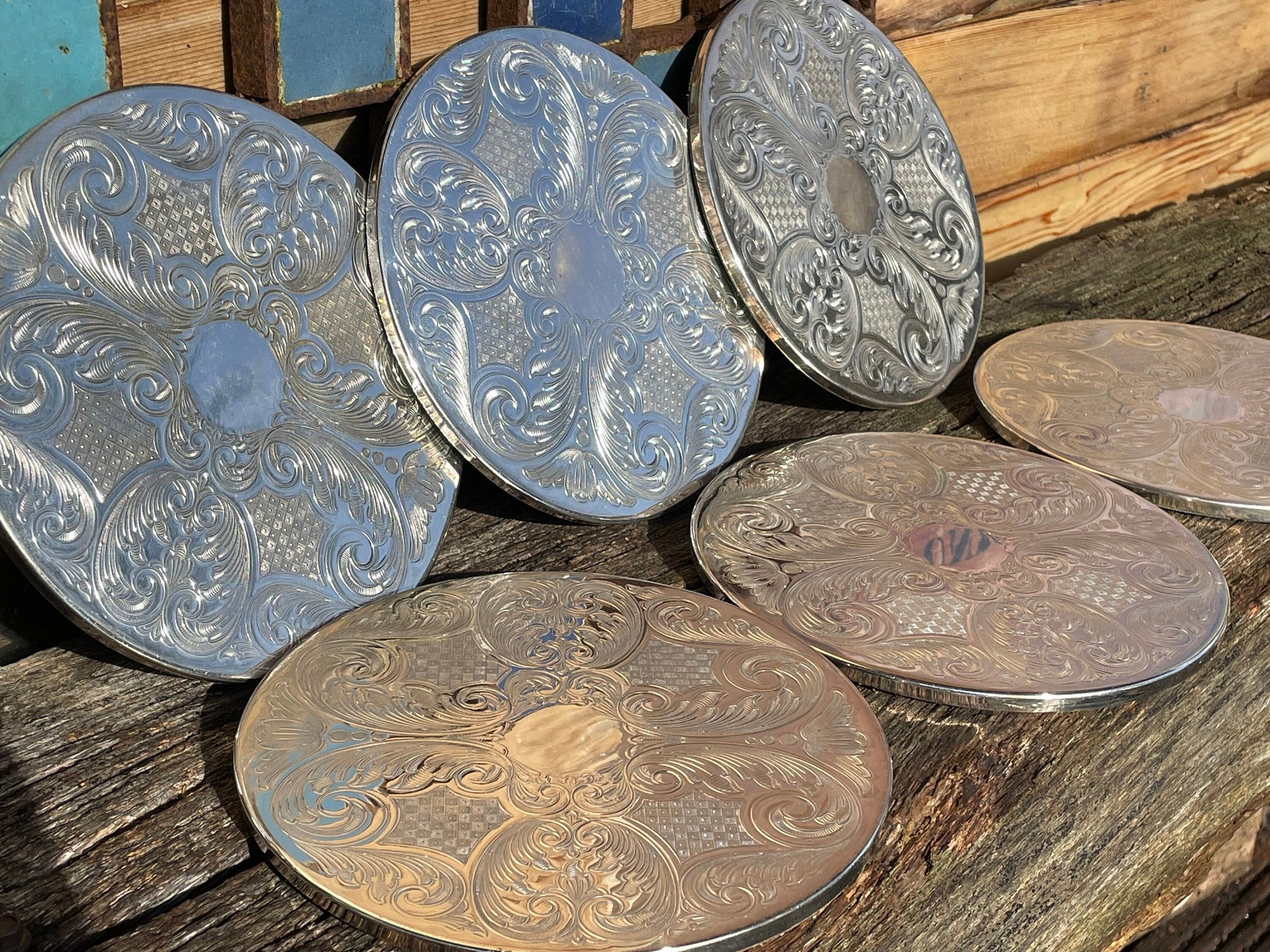 Here we have a vintage set of six English silver plated table place mats 16.5cm diameter