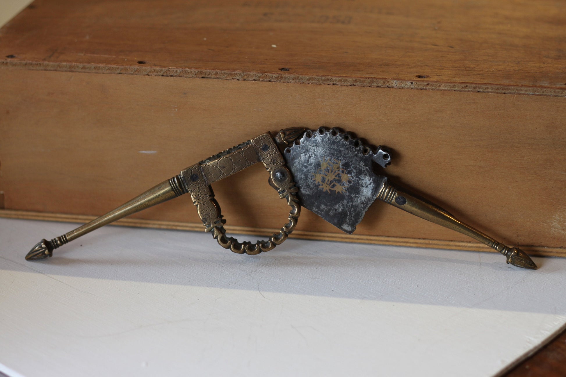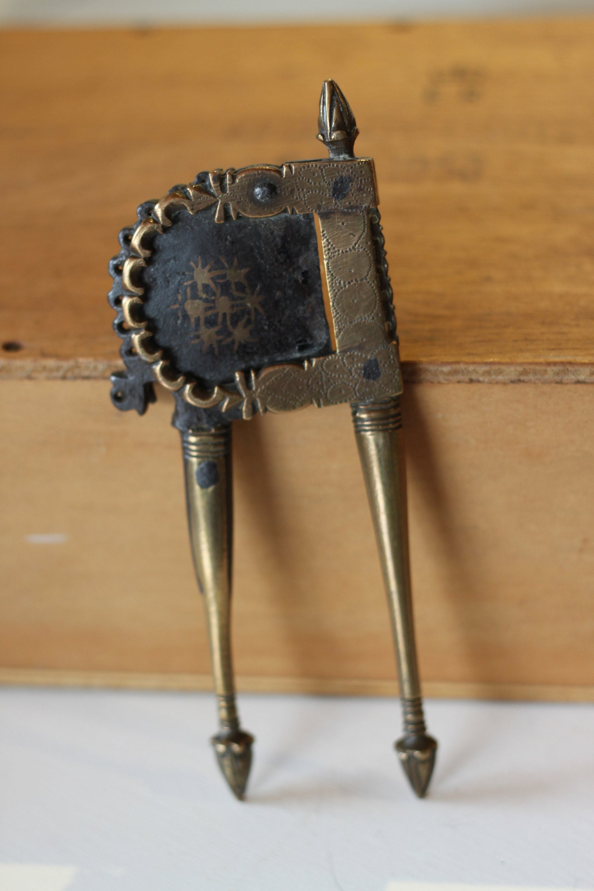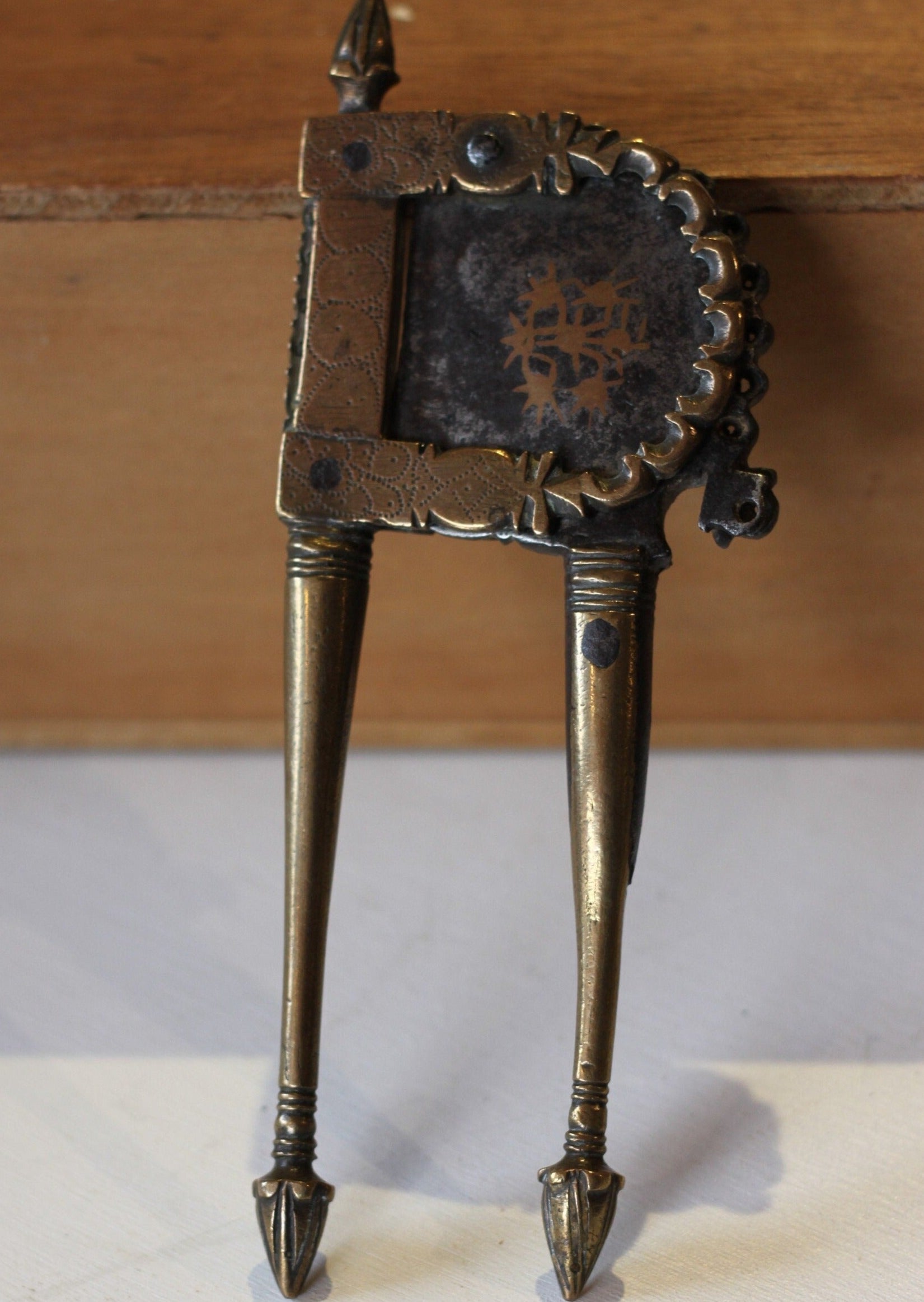 Here we have an antique brass betel nut cutter 18cm