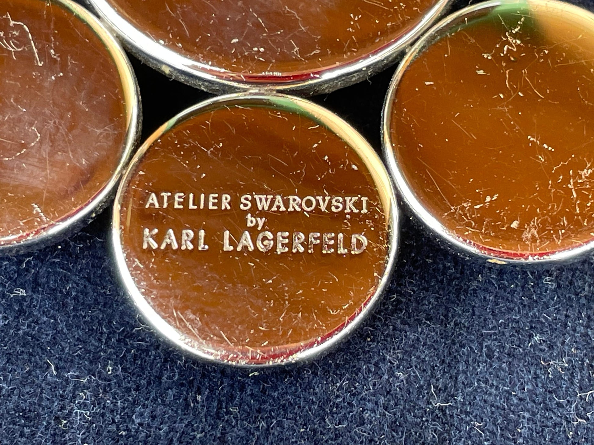 This rare and collectible design captures Karl Lagerfeld’s couture styling combined with Swarovski’s brilliance, making it ideal for both fashion-forward wear and as a collector’s investment piece.