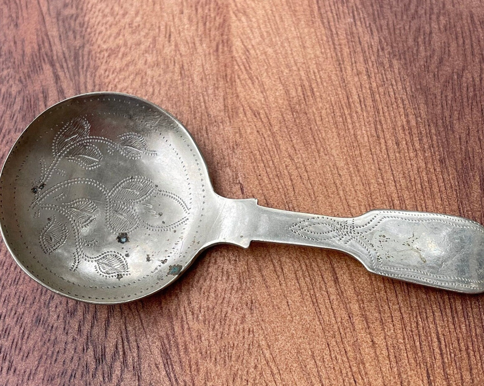 The spoon is engraved with a floral design in the bowl and a lovely example of a spoon of this period (over 200 years old)