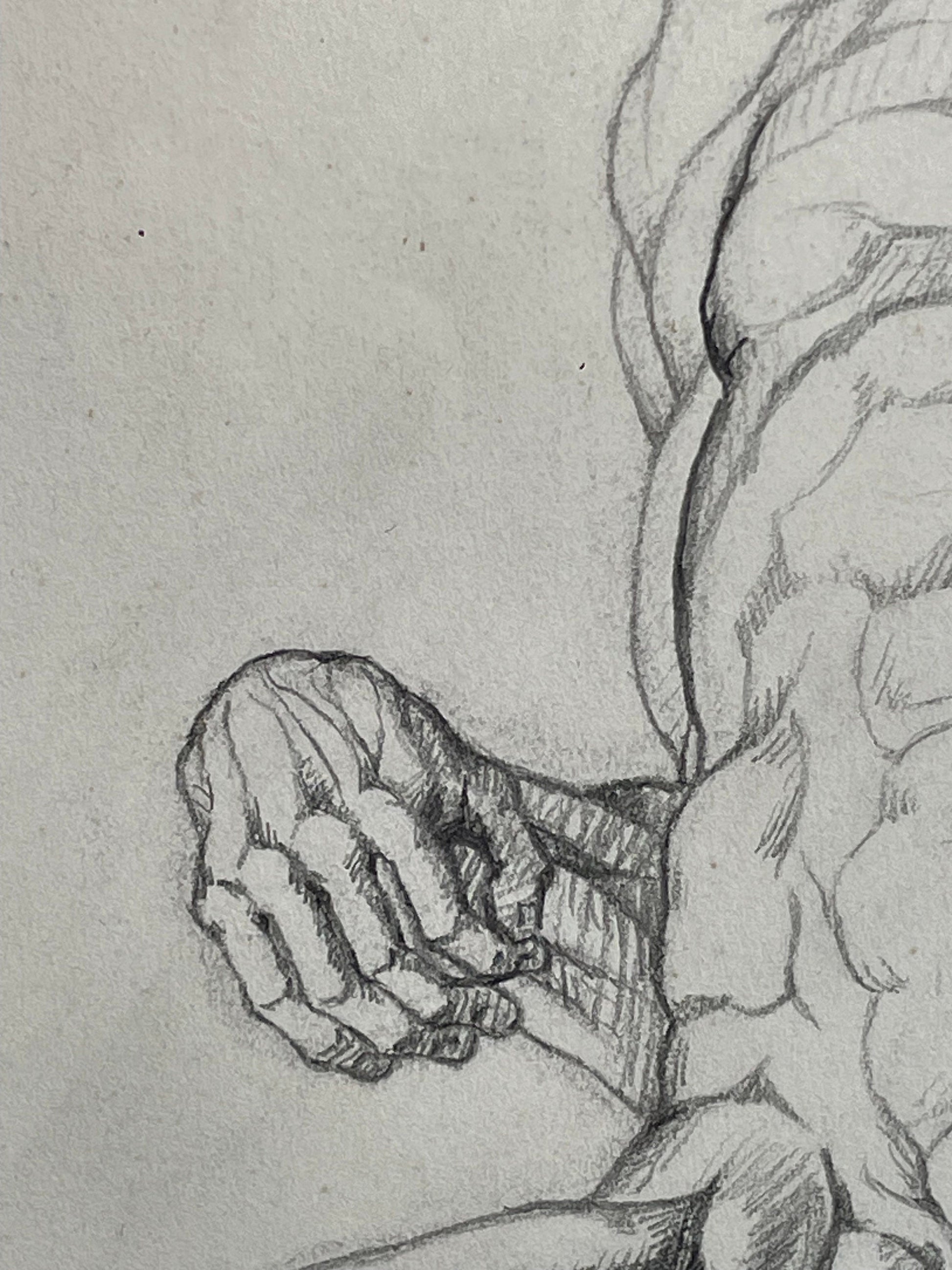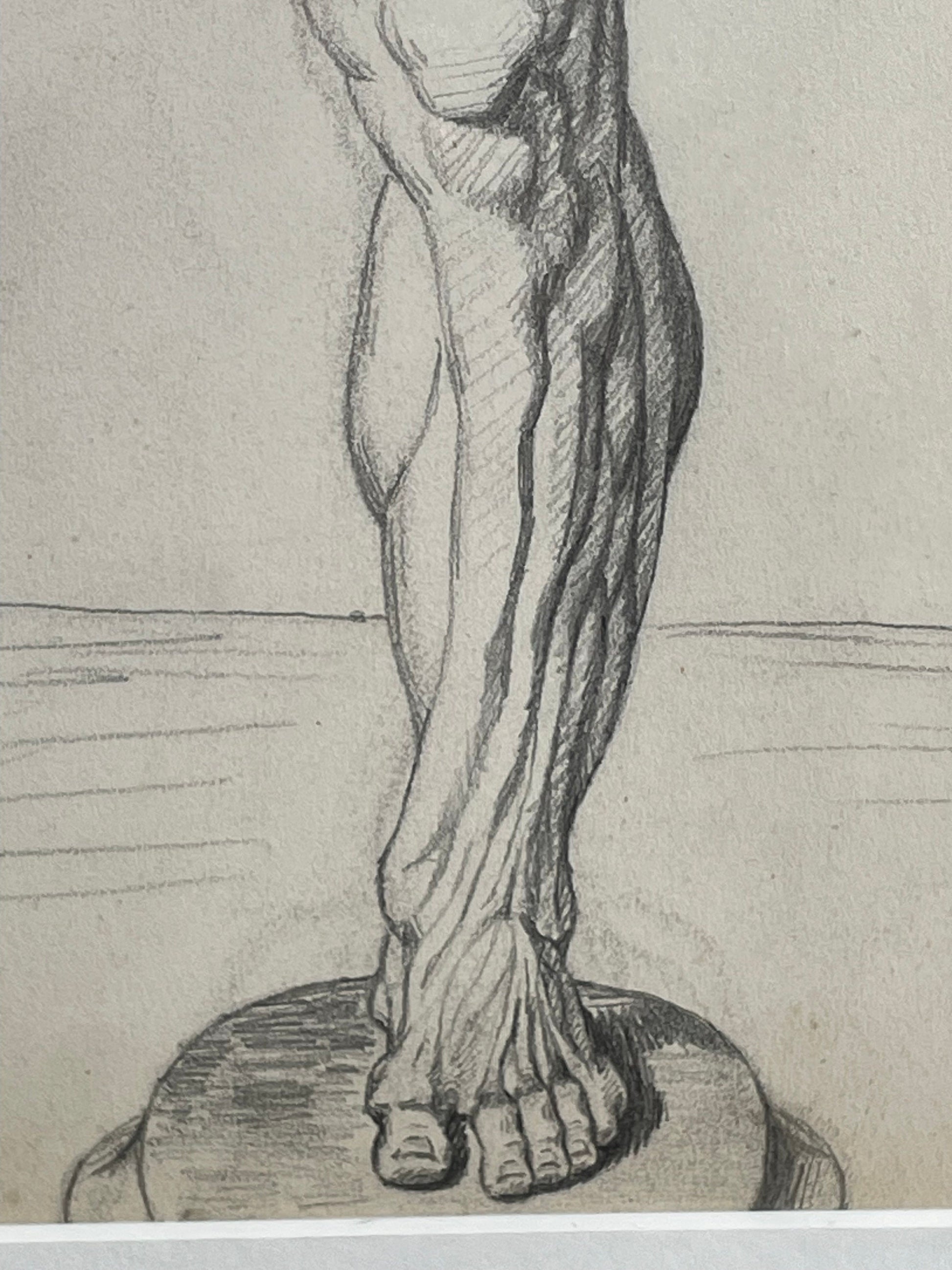 An original pencil on paper human musculature framed print, after Andreas Vesalius plate size 46 x 29cm
