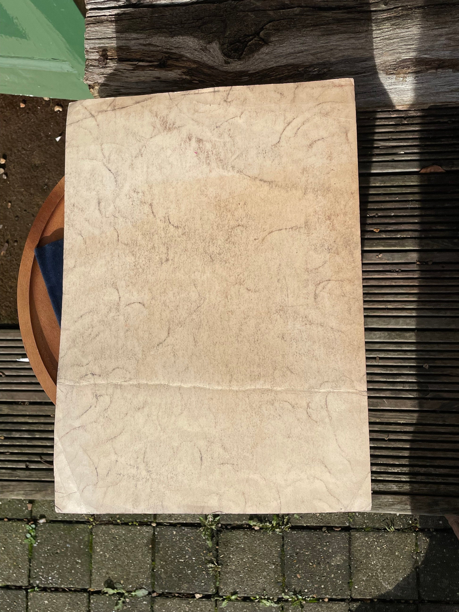 There are charcoal rub marks all over and there is a fold across the width of this image just above the hand