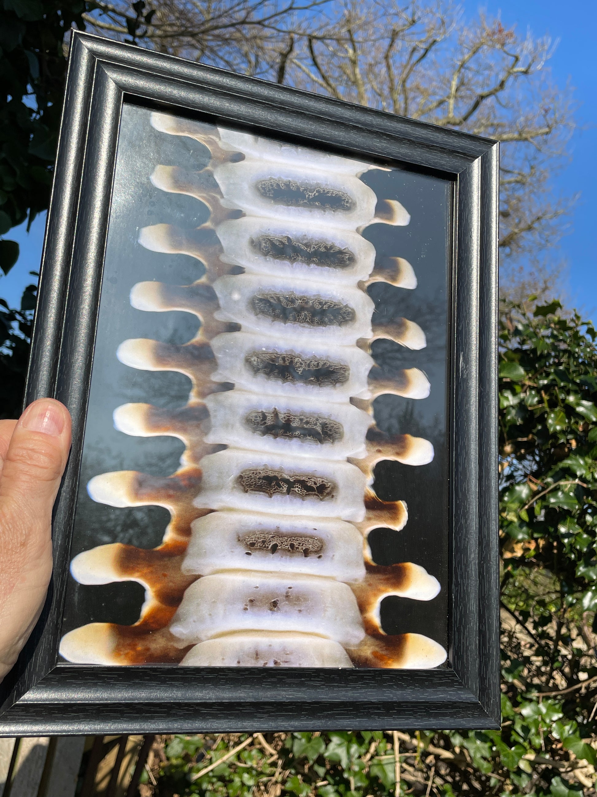 Anatomical prints of images of a spine from curios collector James Cranfield UK