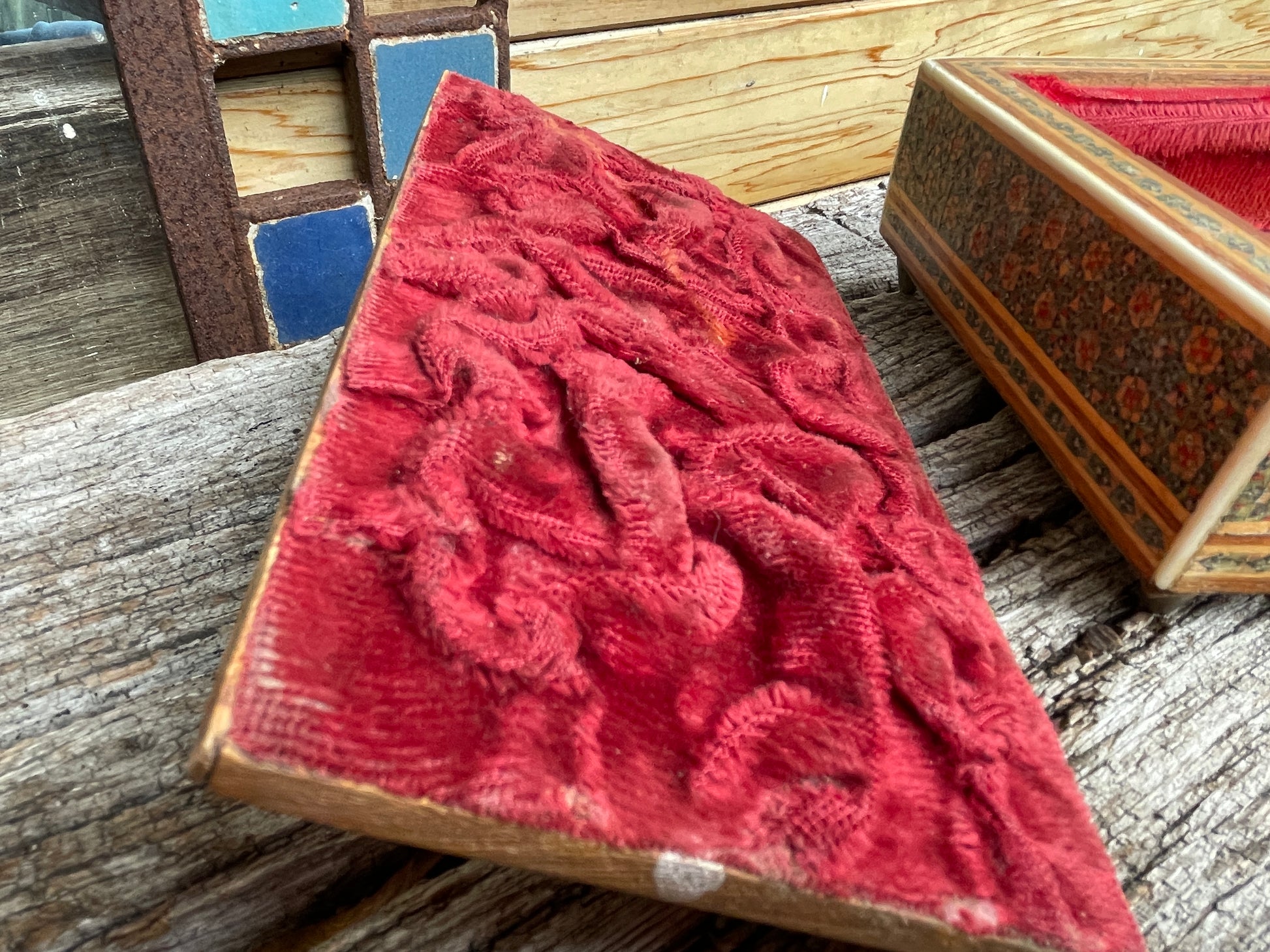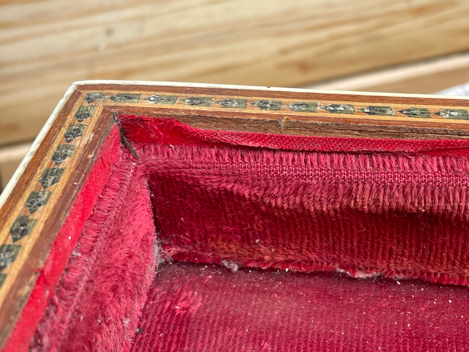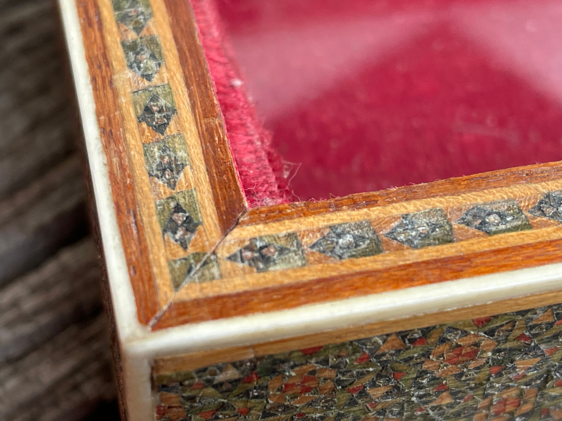 Anglo Indian Sadeli jewellery box 1920's with ruched velvet interior 17cm wide