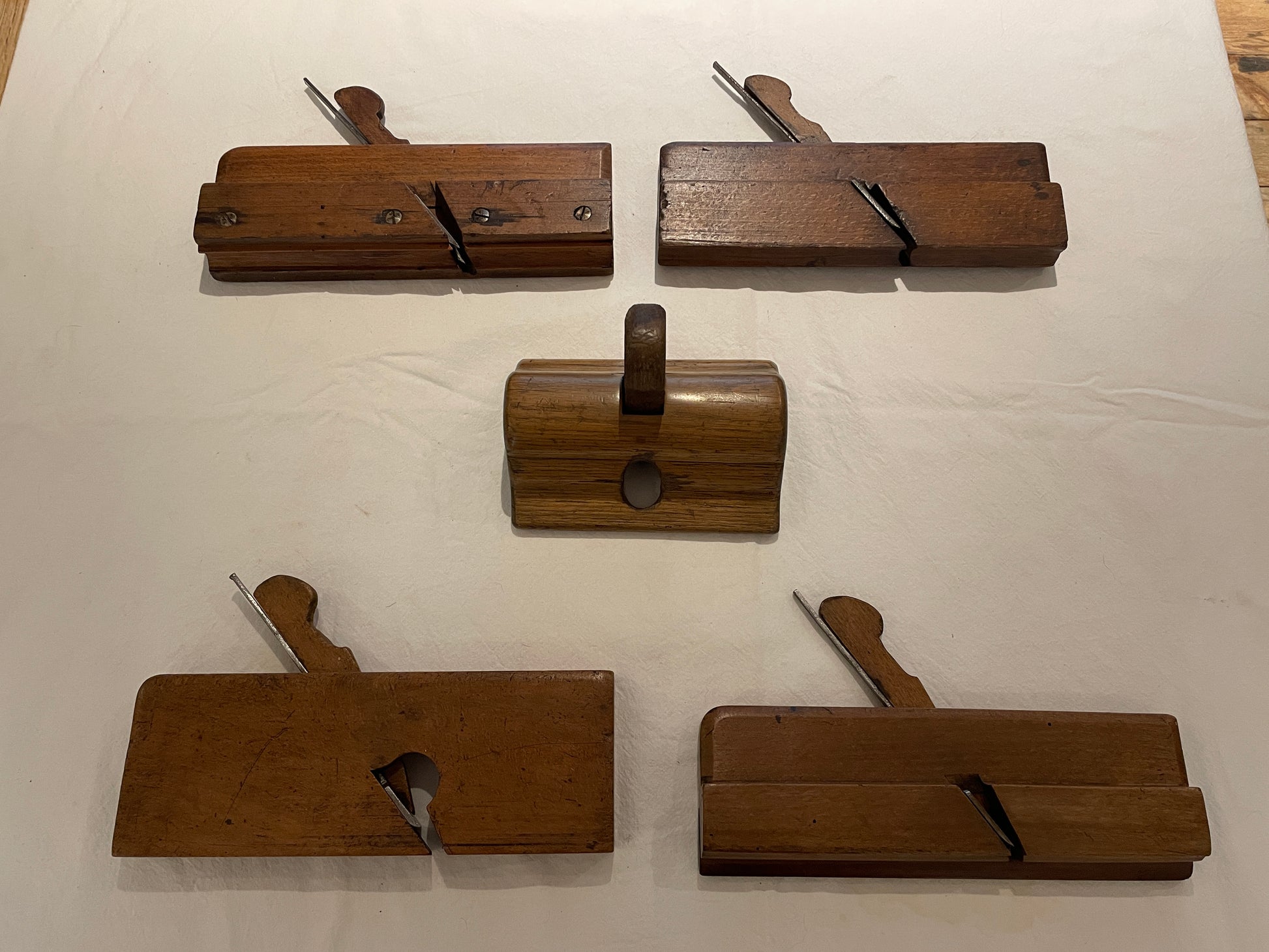 Antique British Wooden Moulding Planes – Set of Five Mixed Makers (c.19th Century)6