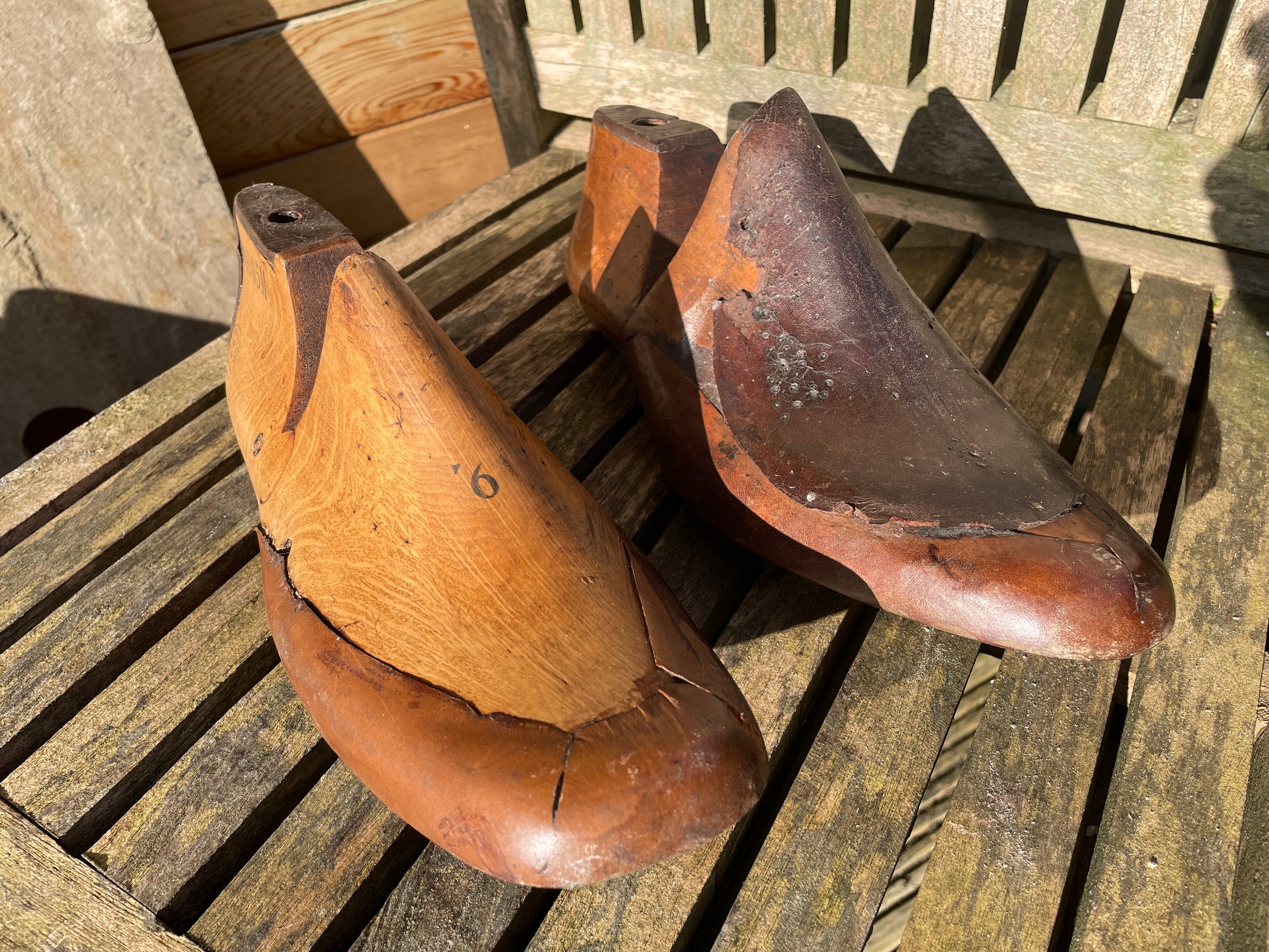 These are wooden forms used by a shoe maker to repeat make an identical leather shoe or boot.