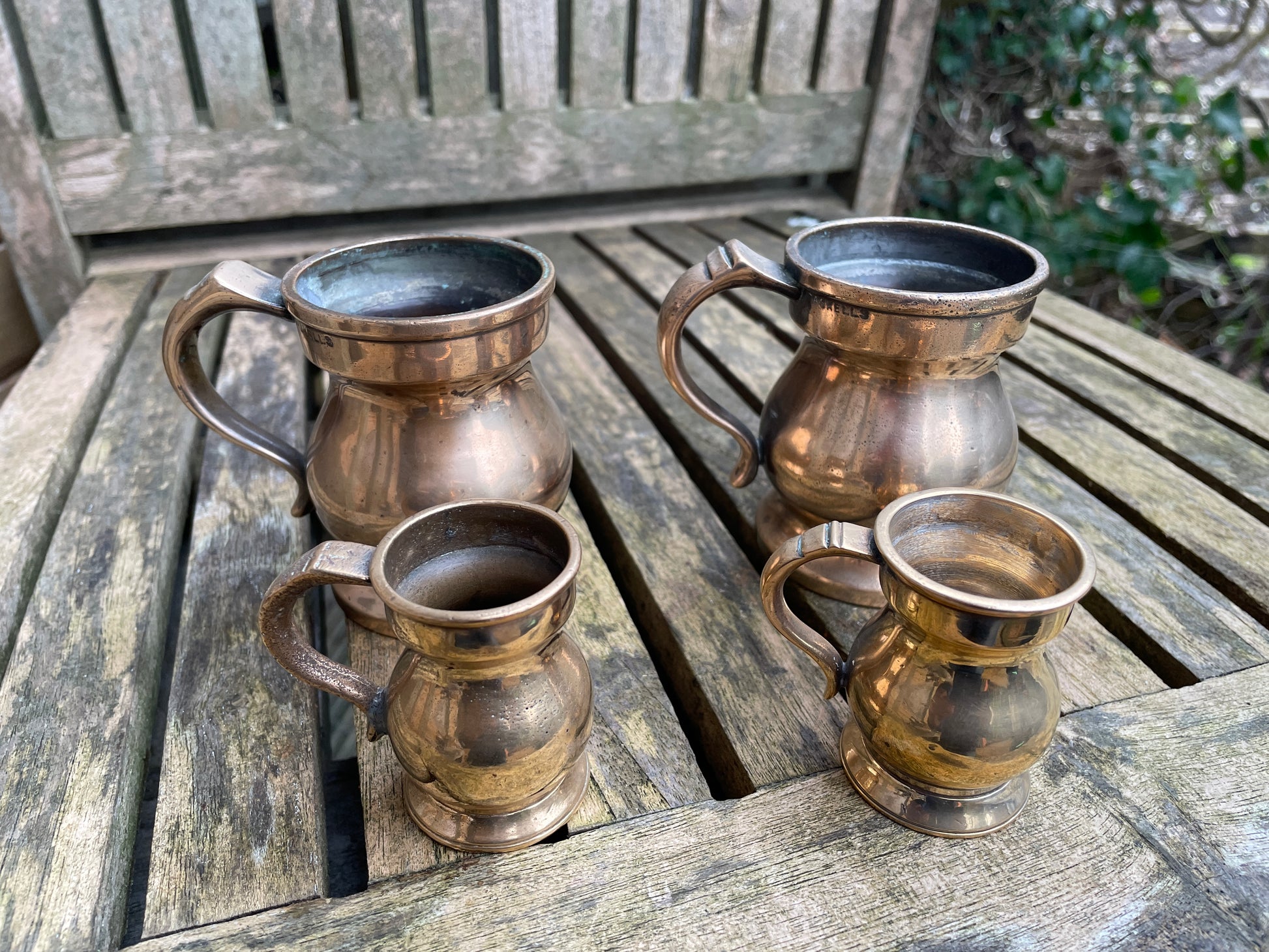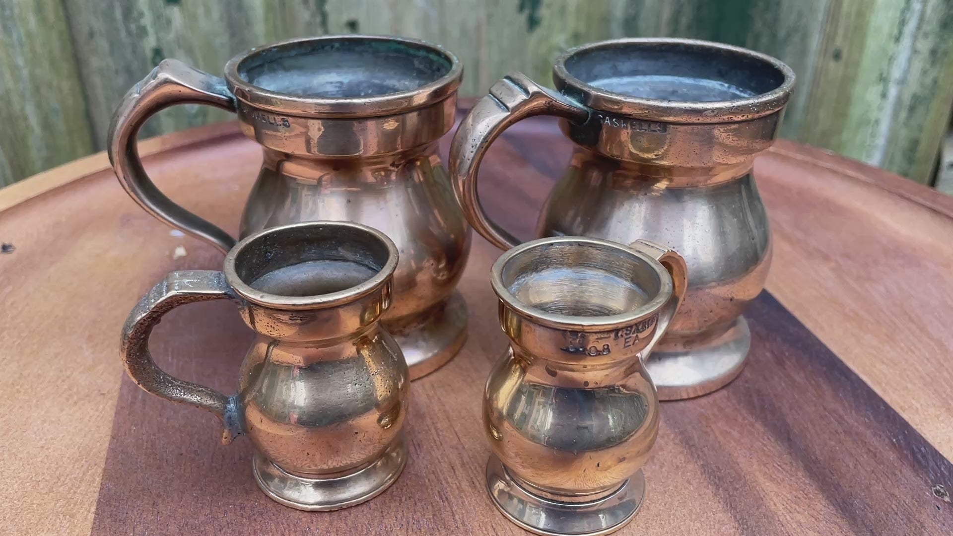 Two quarter pint/1 gill measures marked ER - copper brass - both Gaskells and 8cm tall