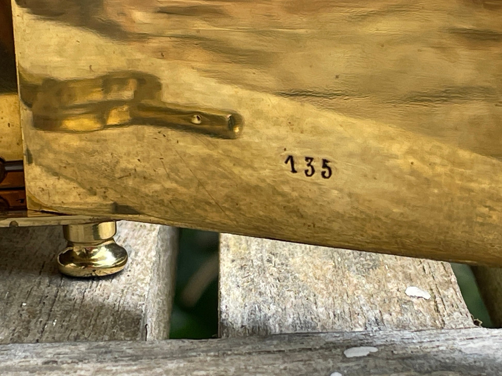 The case has a push button entry, original double ended key and front glass protector. Top swing handle, bevelled glass inspection to the top top view lovely movement