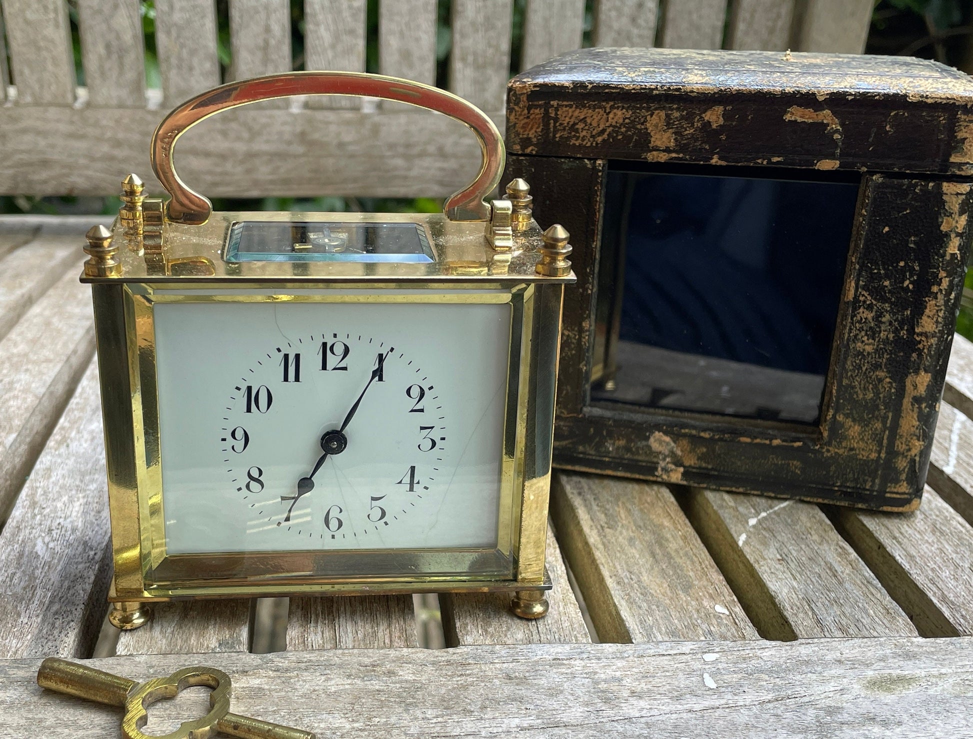 Antique French Carriage clock in original case with key - 1920's - 10cm tall