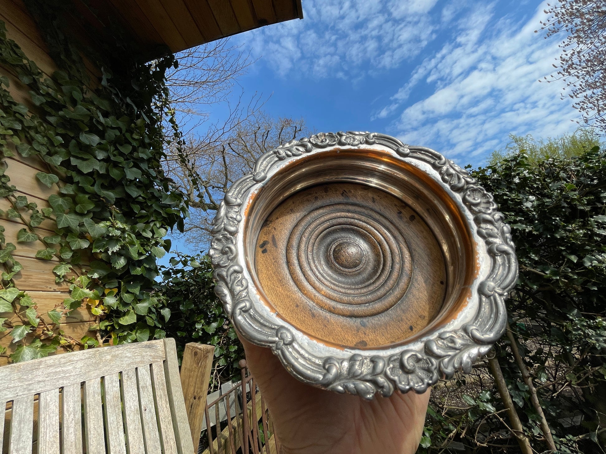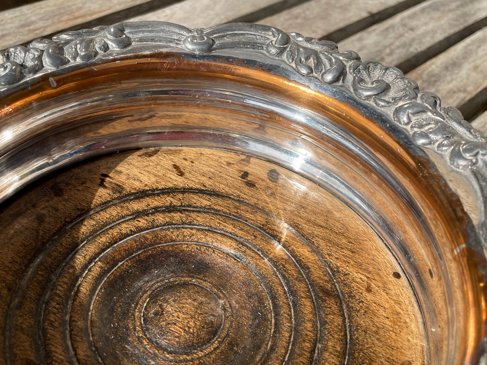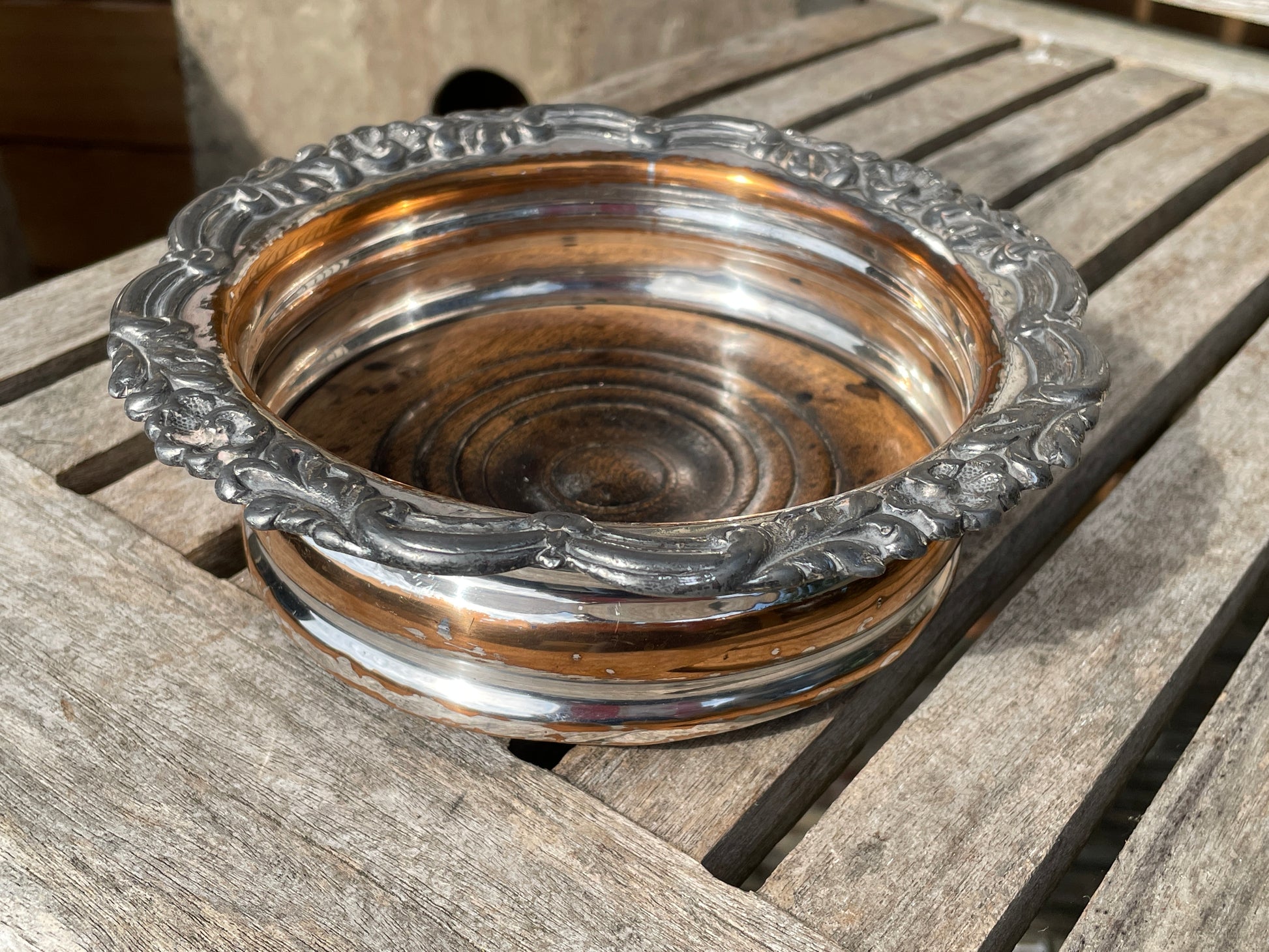 Antique Georgian Sheffield embossed silver Plate Decanter wine bottle Coaster c.1860
