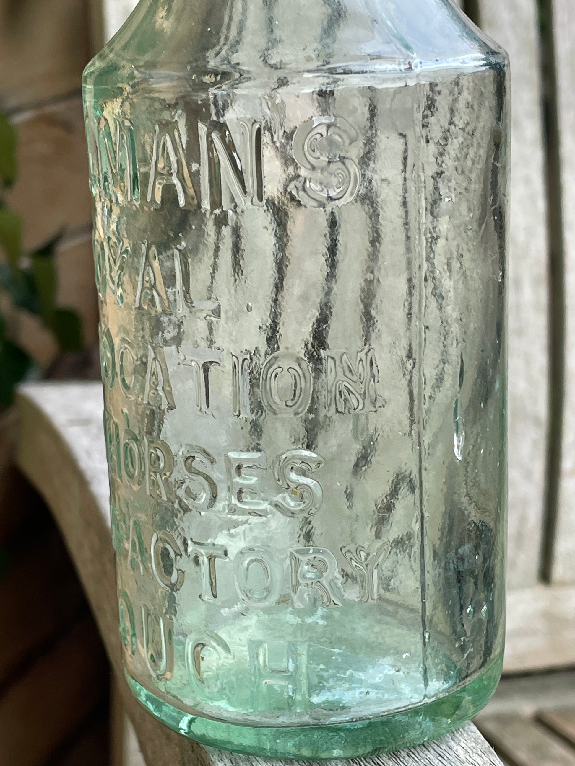 Antique glass bottle Elliman's Royal Embrocation for Horses Manufactory Slough
