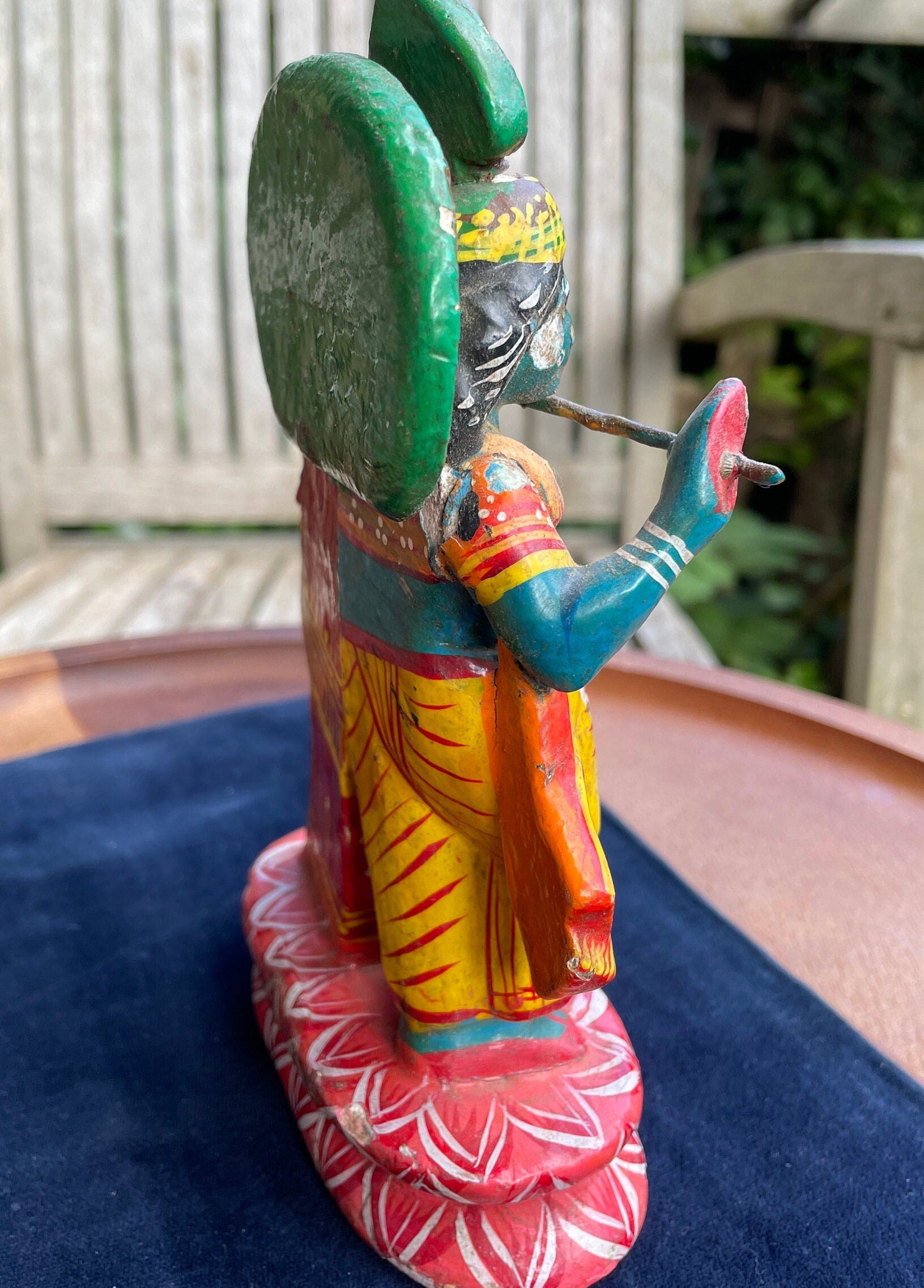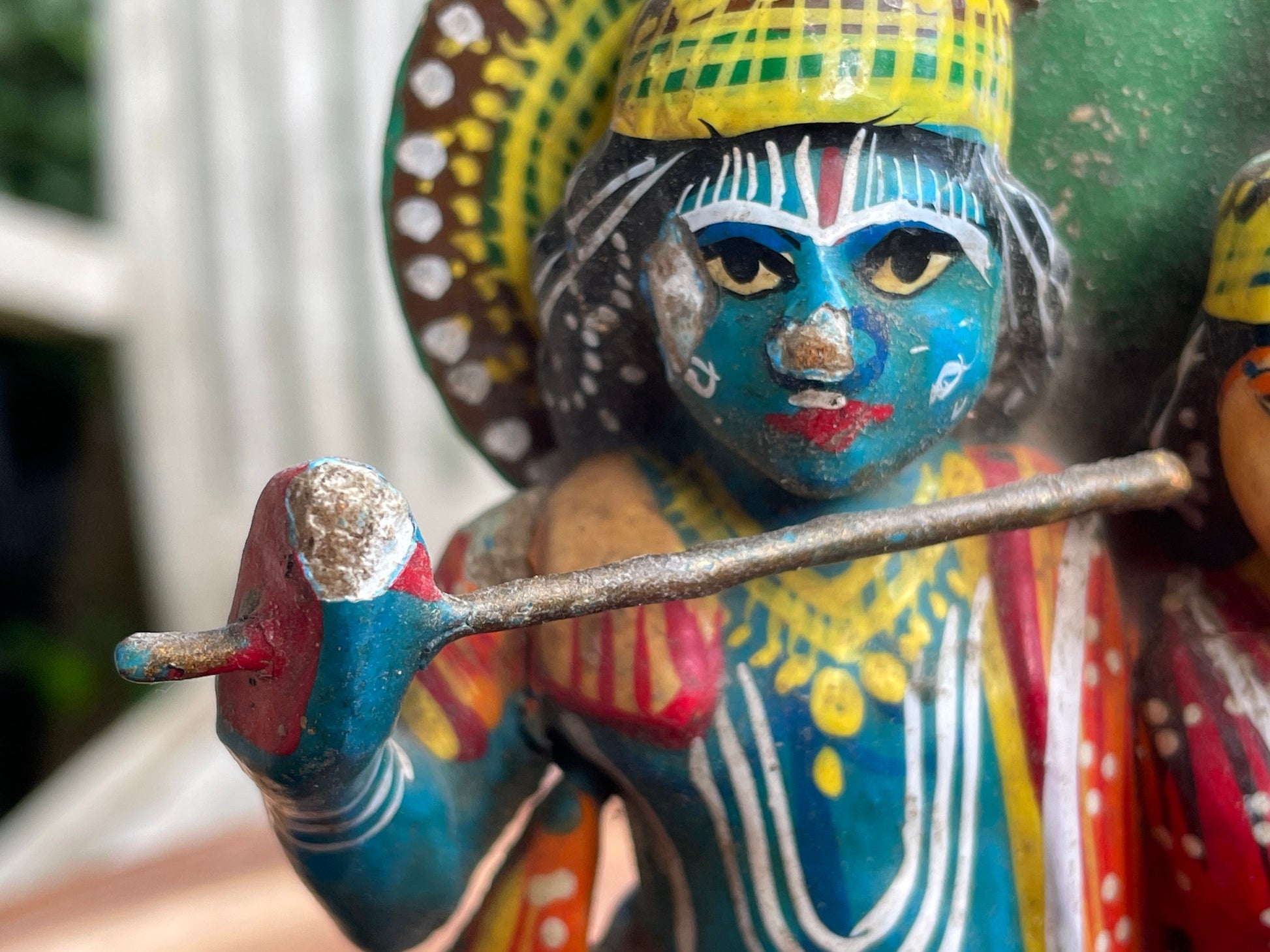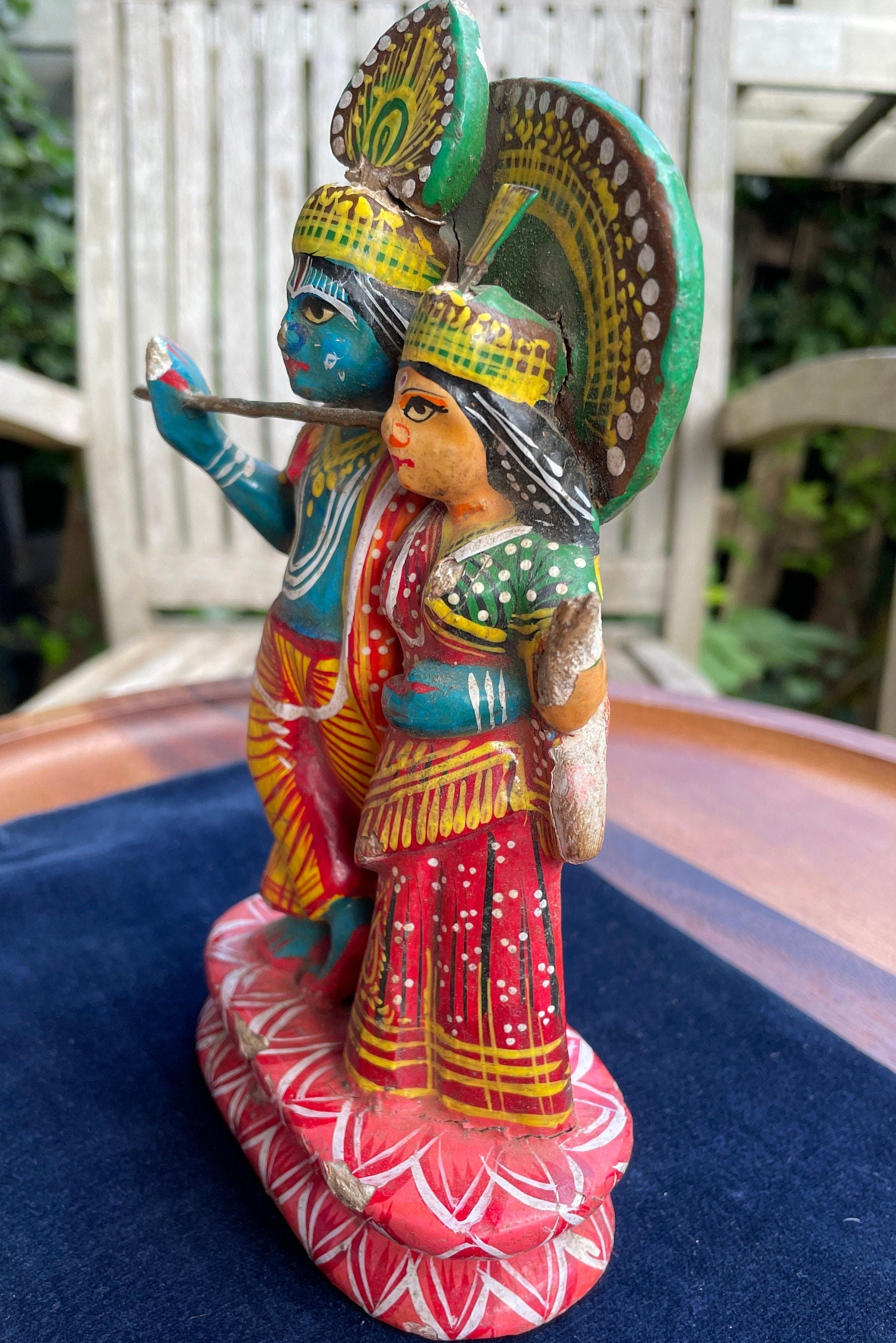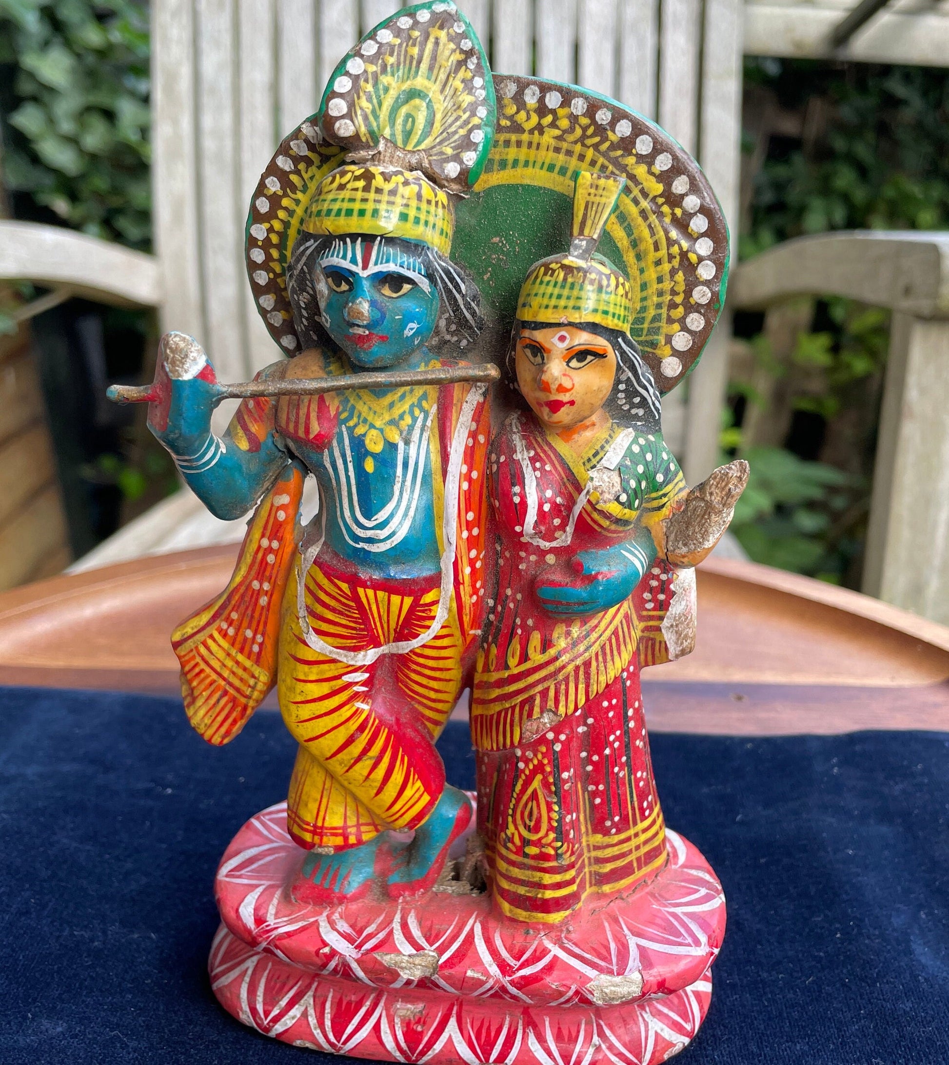 Antique Indian God Radha Krishna idol figurine hand painted 18cm tall