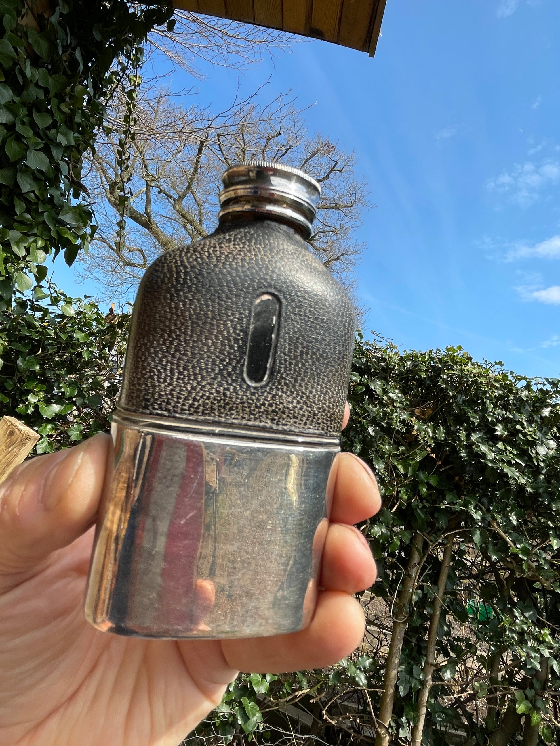 Vintage 1930s James Dixon & Sons Sheffield Hip Flask with EPBM Cup & Shagreen Wrap – Made in England Mark