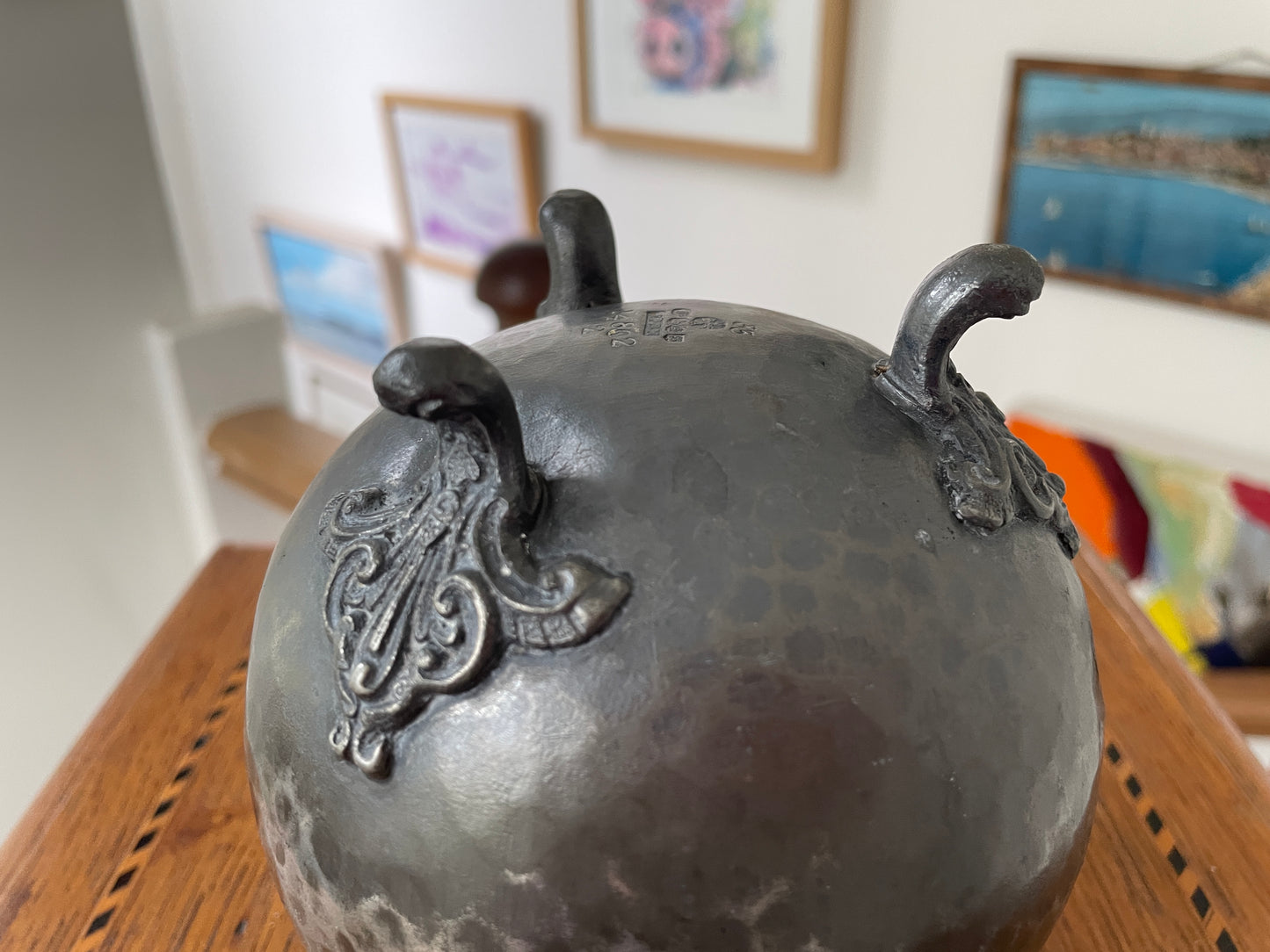 Standing approximately 12.5 cm tall, this elegant piece would originally have been used as a rose bowl, sugar bowl, or small decorative centrepiece. Its softly aged patina and craftsmanship make it a superb display item for lovers of Art Nouveau and Arts & Crafts design.