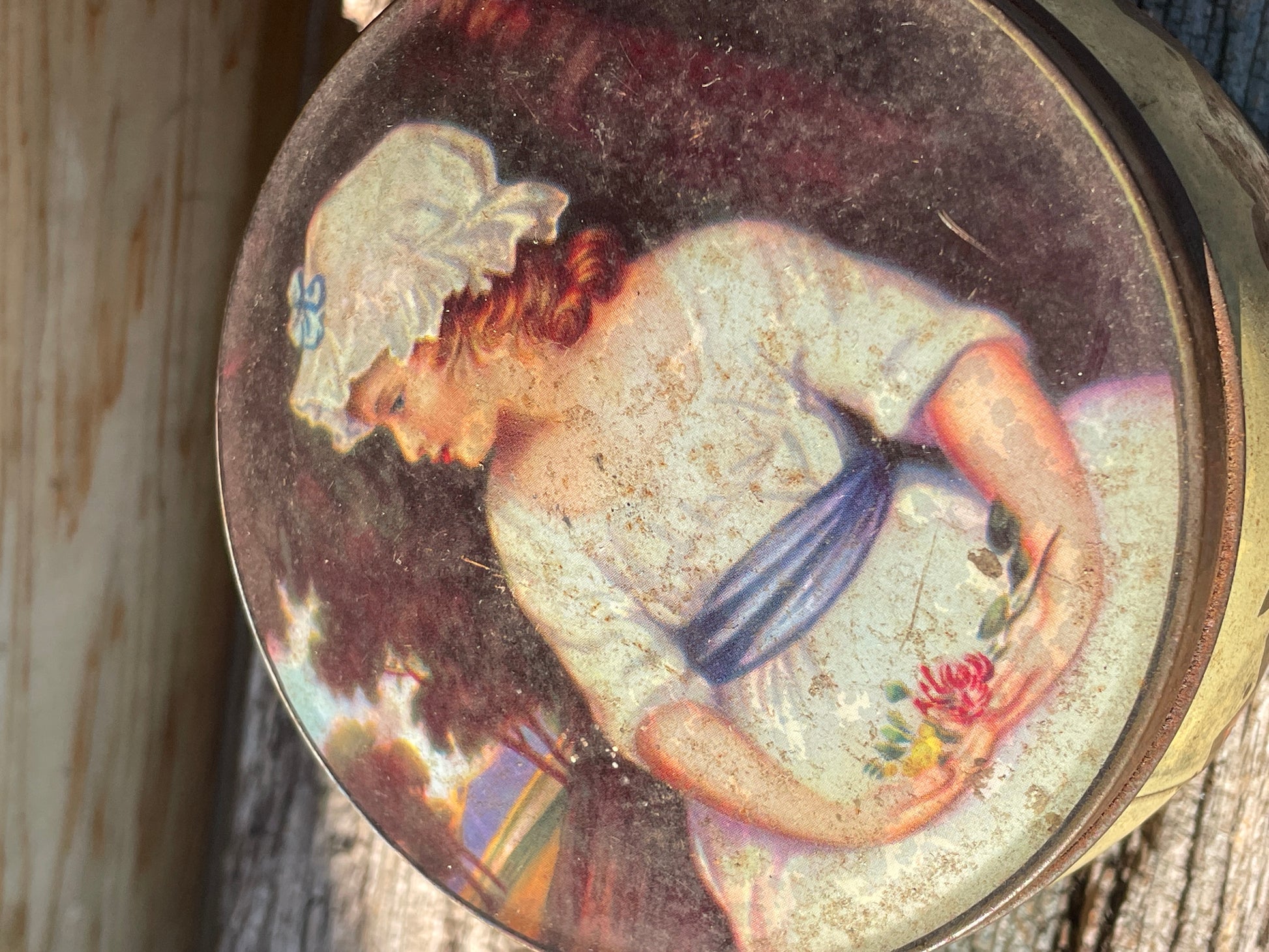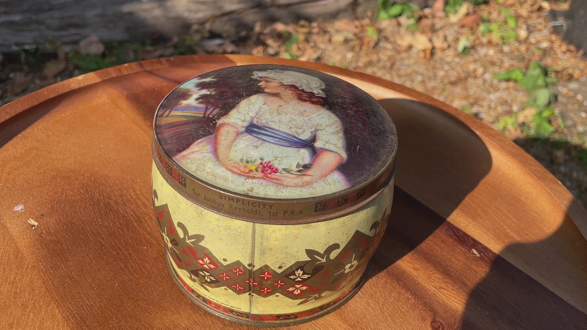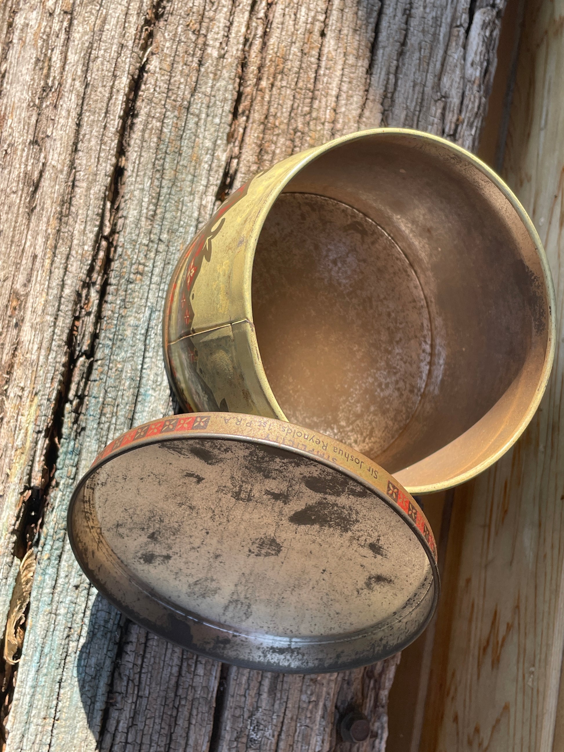 Sir Joshua Reynolds decorated Thorne's toffee tin 11cm diameter c1920's