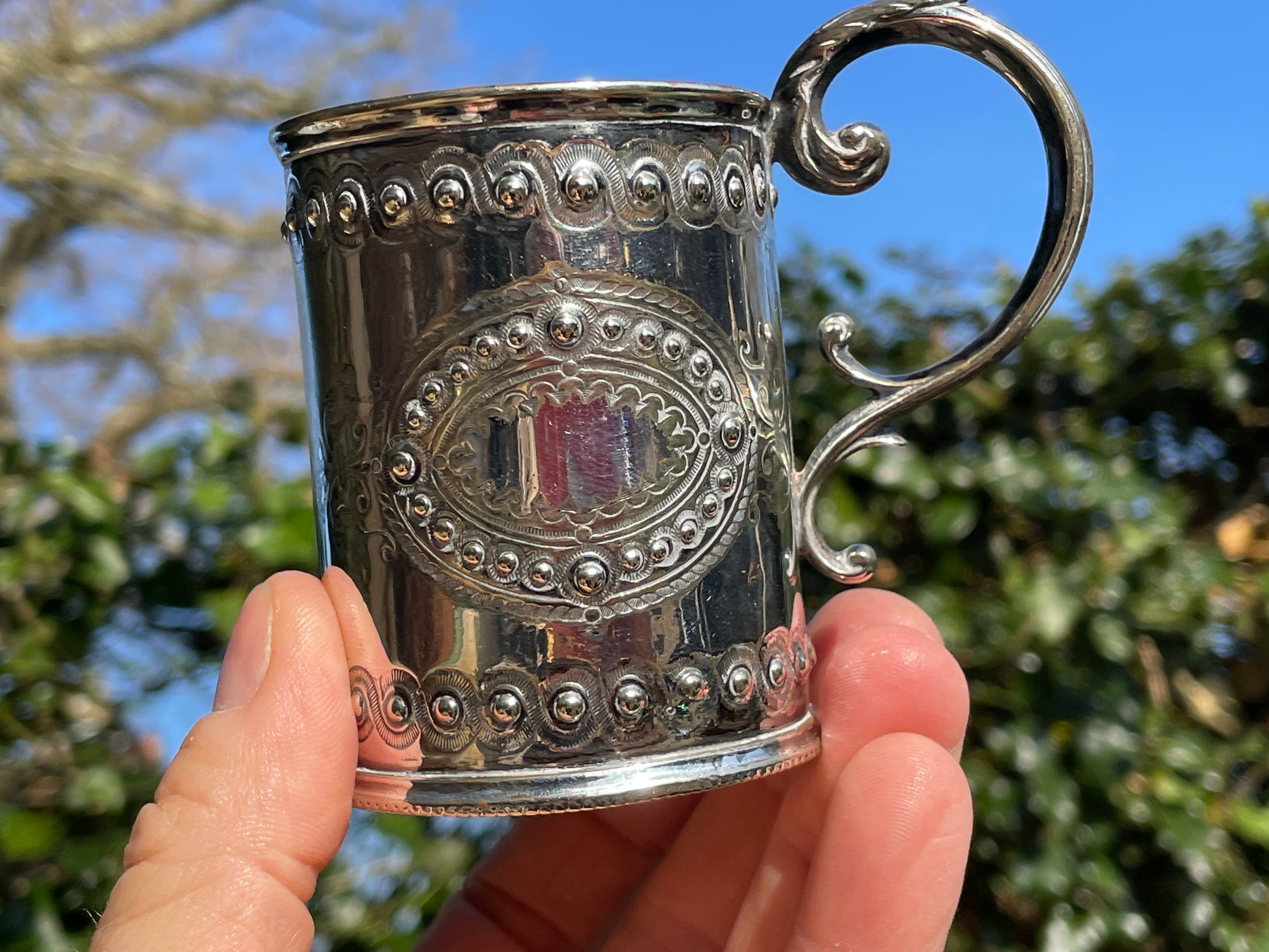 Antique Victorian 1860 Silver plated Tankard by William Hutton & sons - 9cm tall